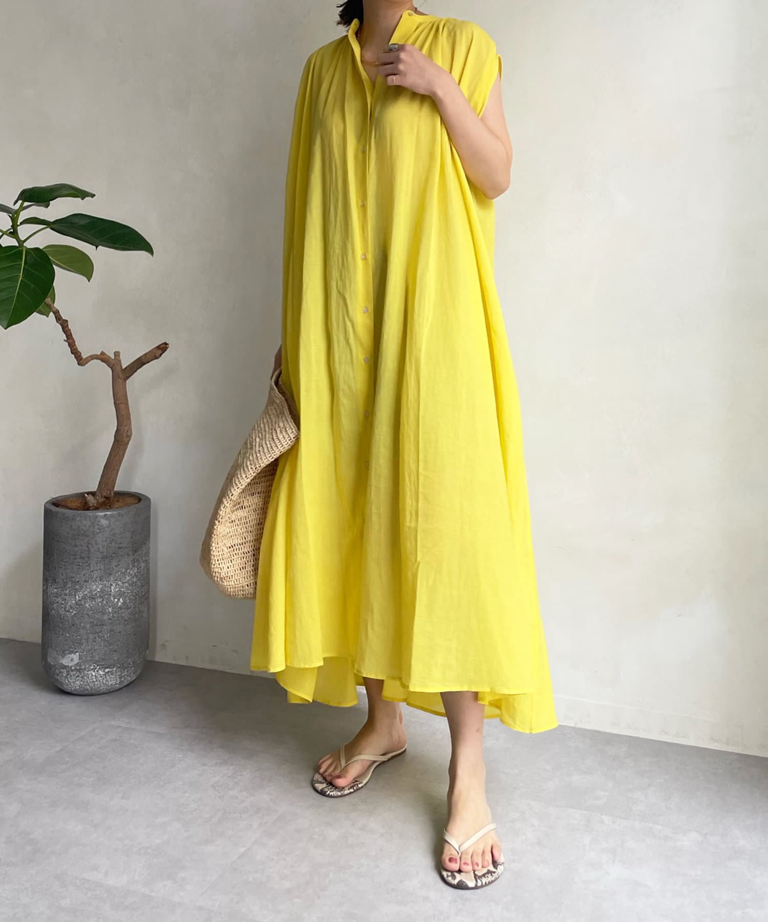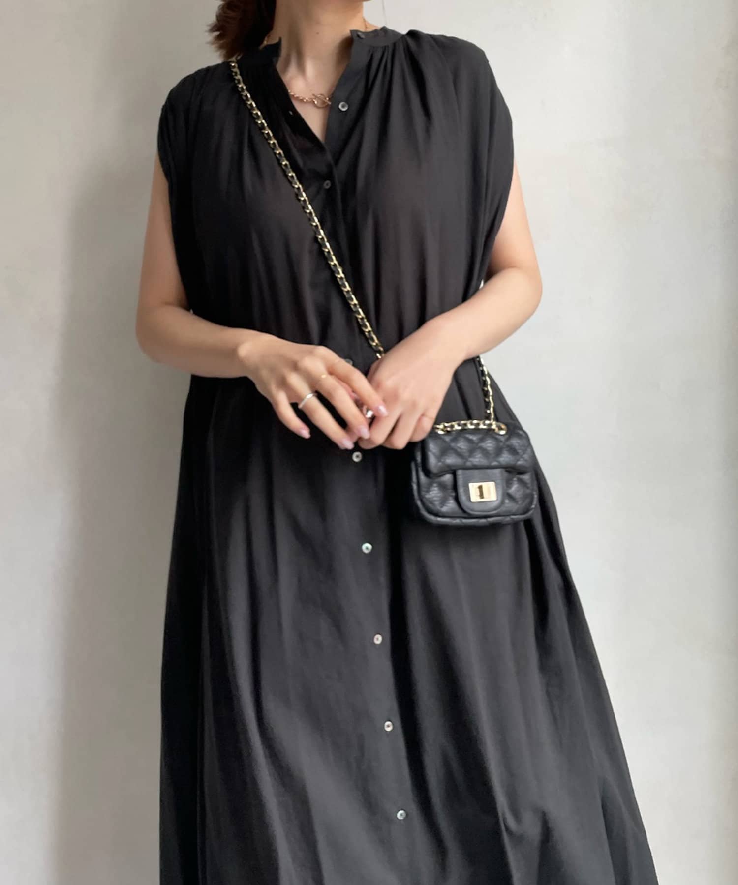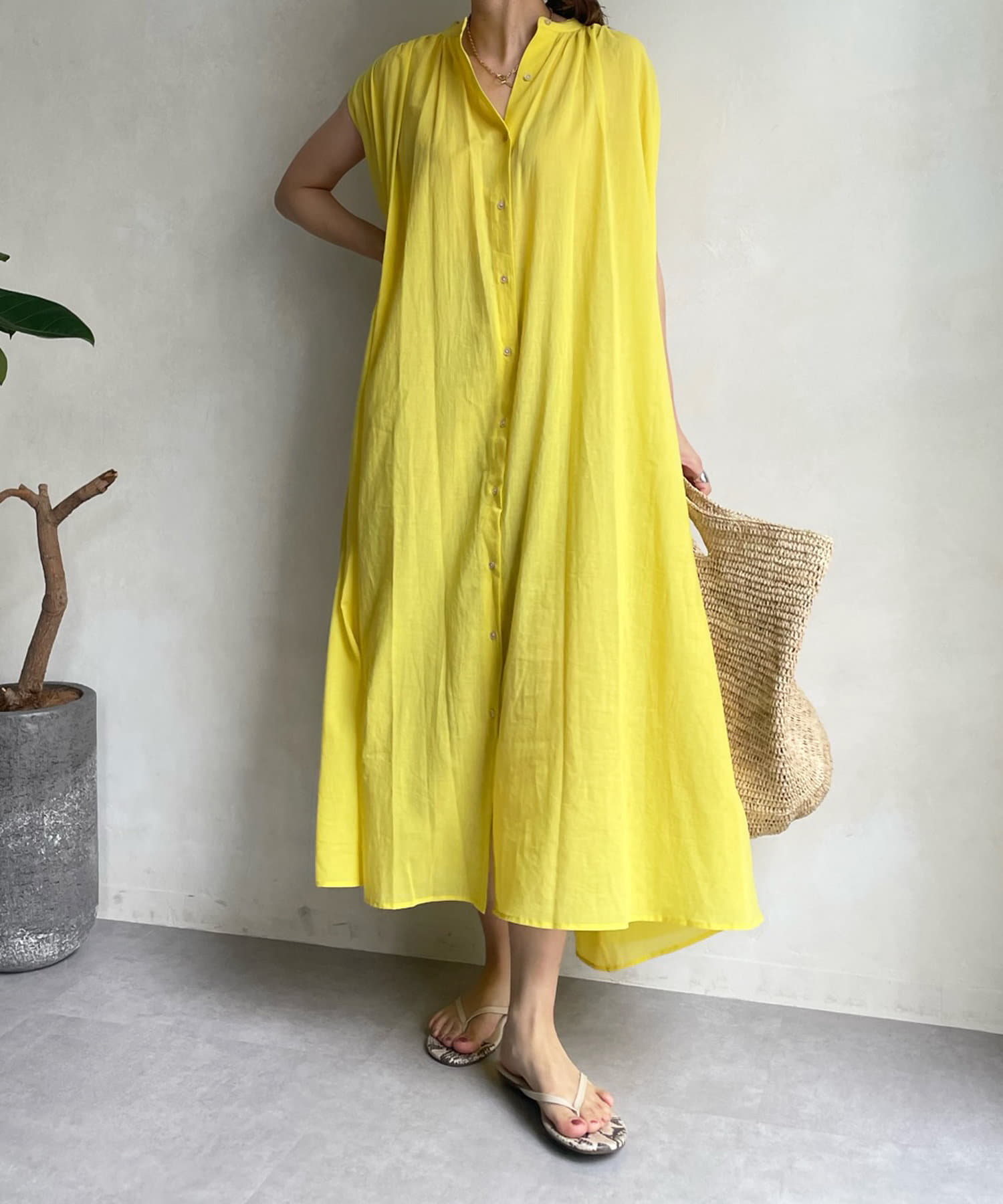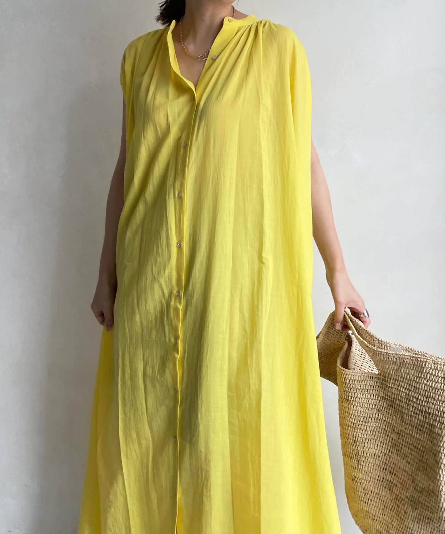 ワンピースとしてはもちろん、フロントボタンを開けて羽織るスタイリングも素敵です。
