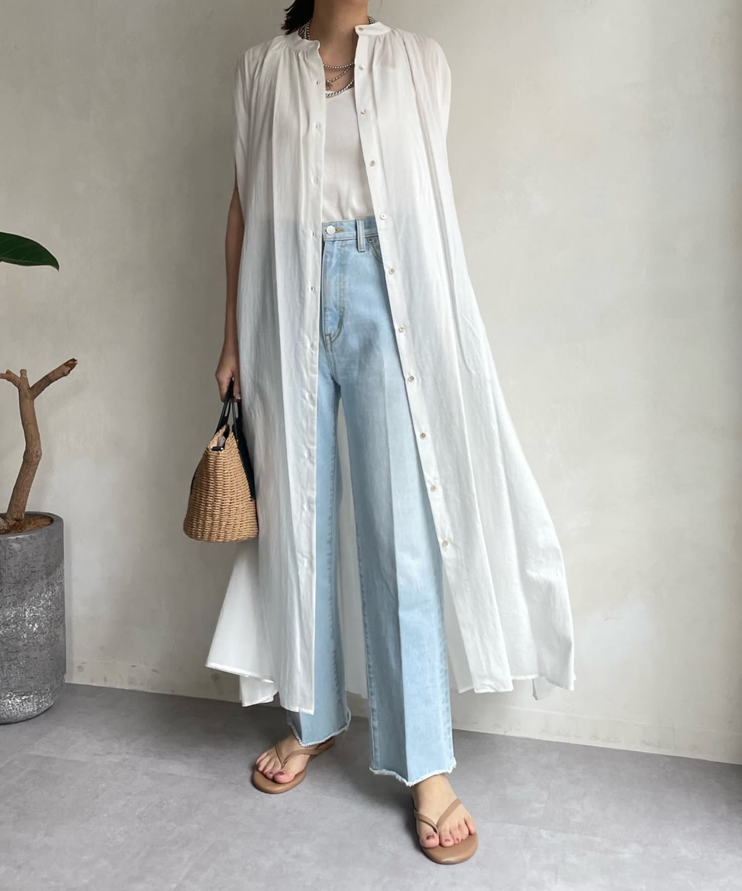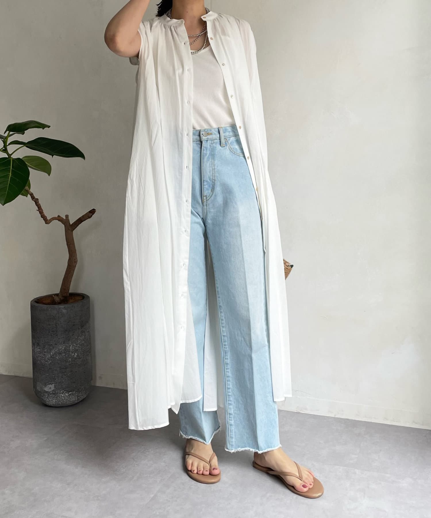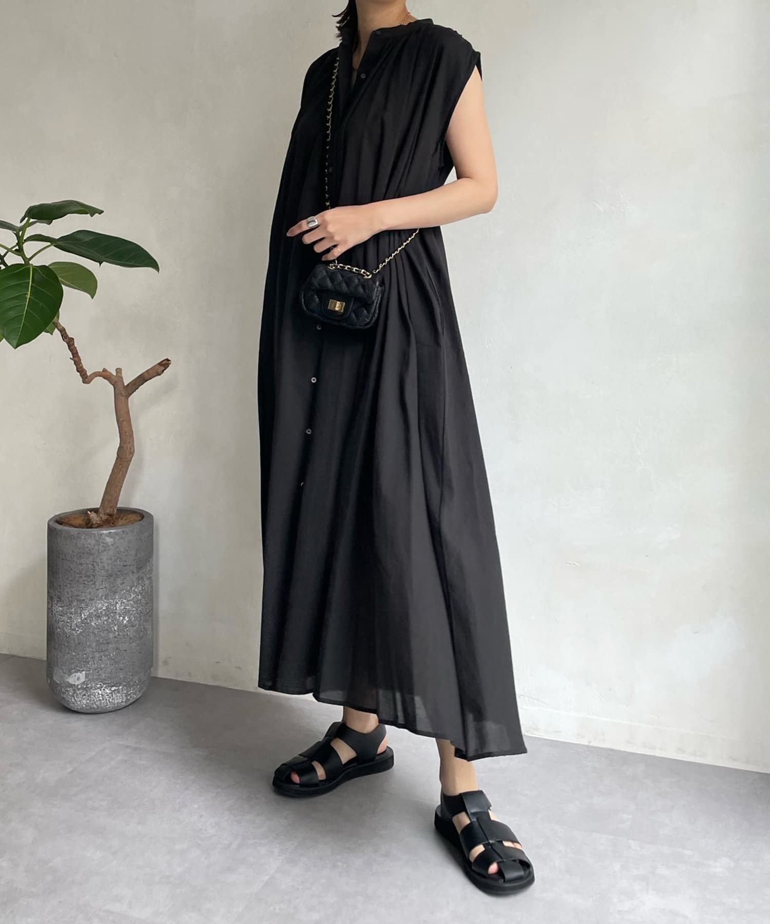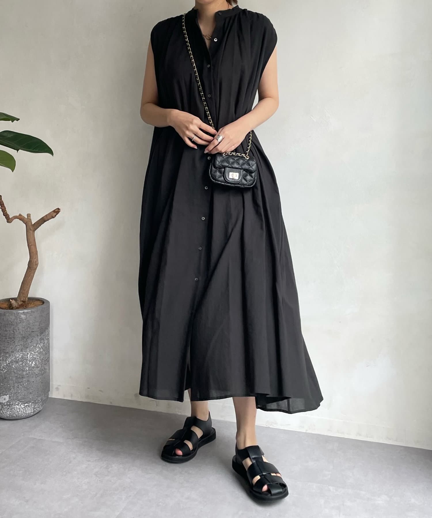 ワンピースとしてはもちろん、フロントボタンを開けて羽織るスタイリングも素敵です。
