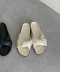 リボンのようにクロスしたデザインは、シンプルで気負わない1足に。