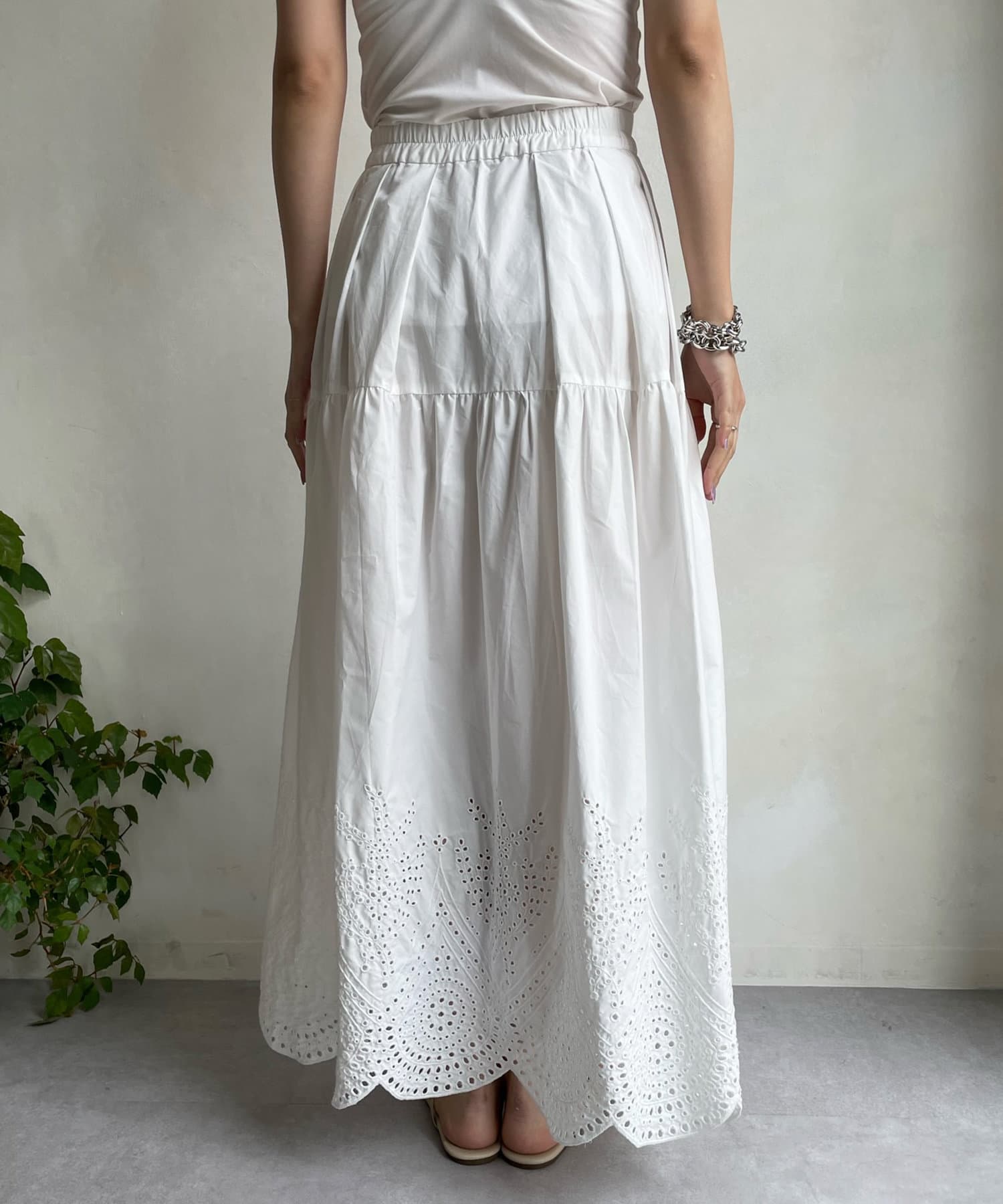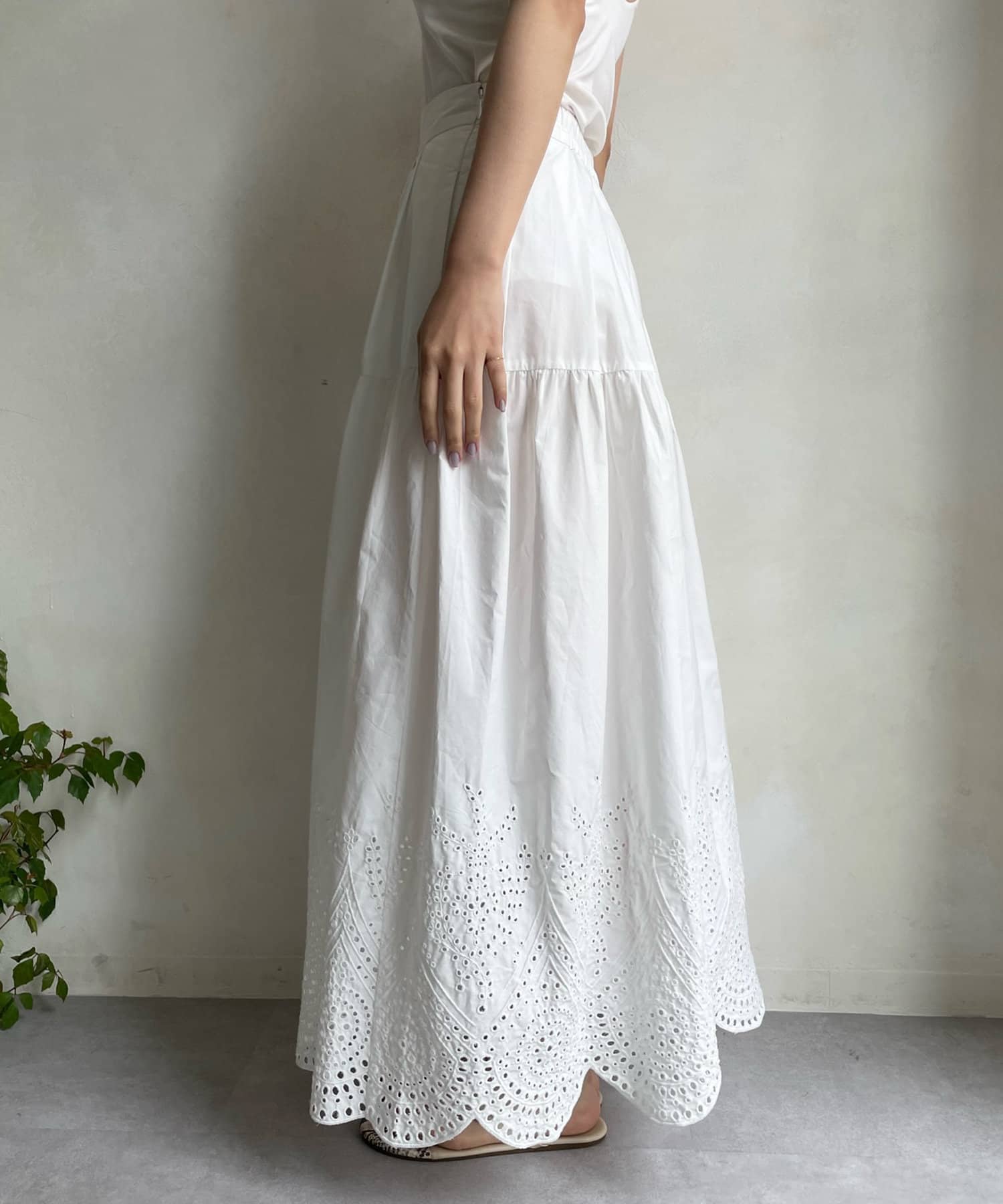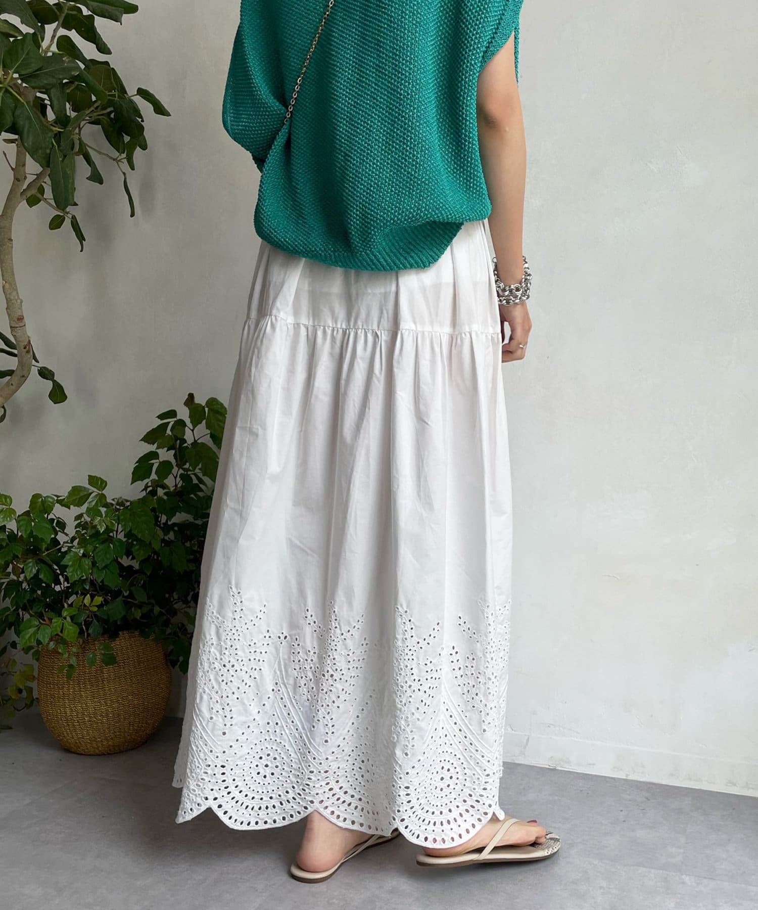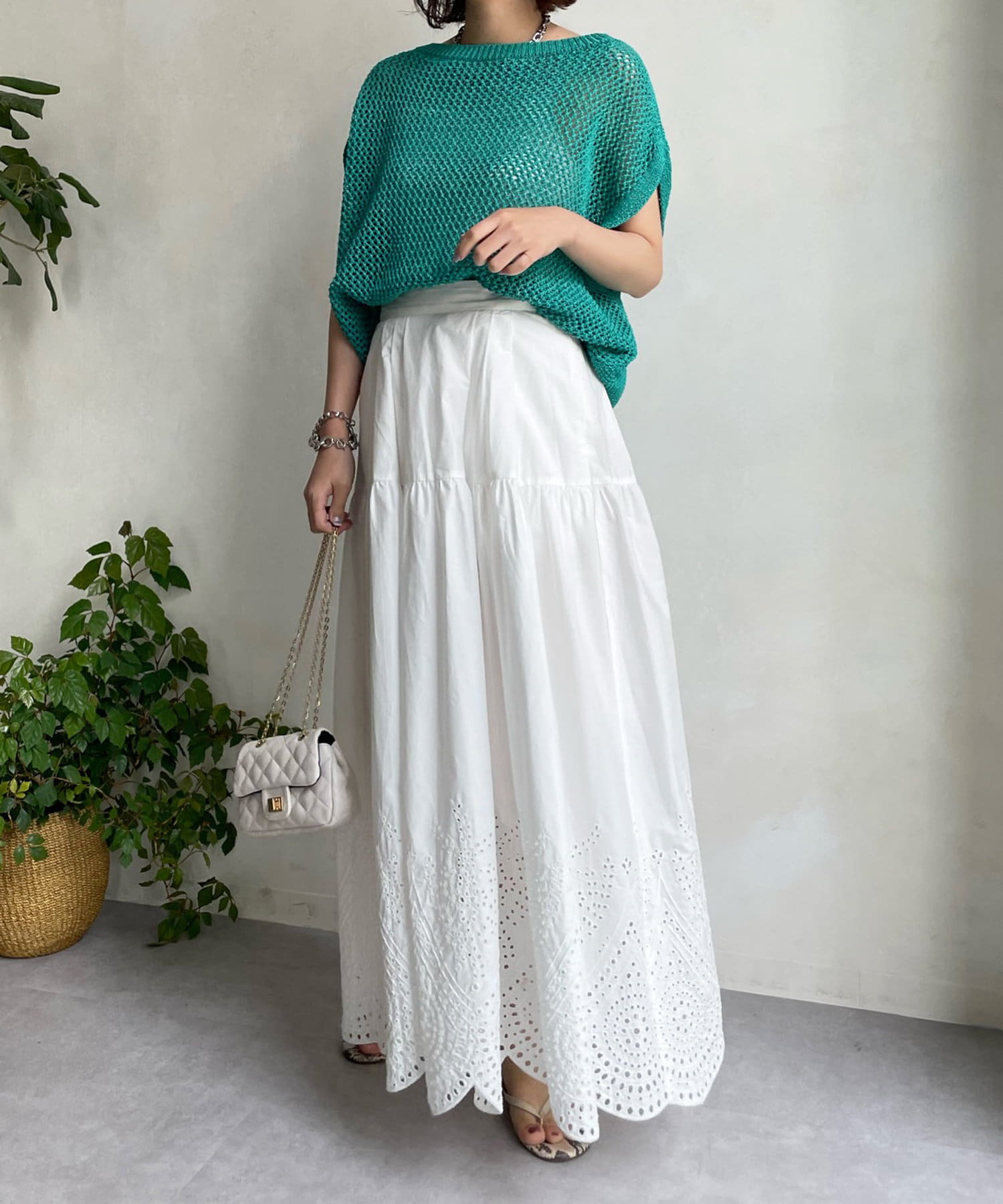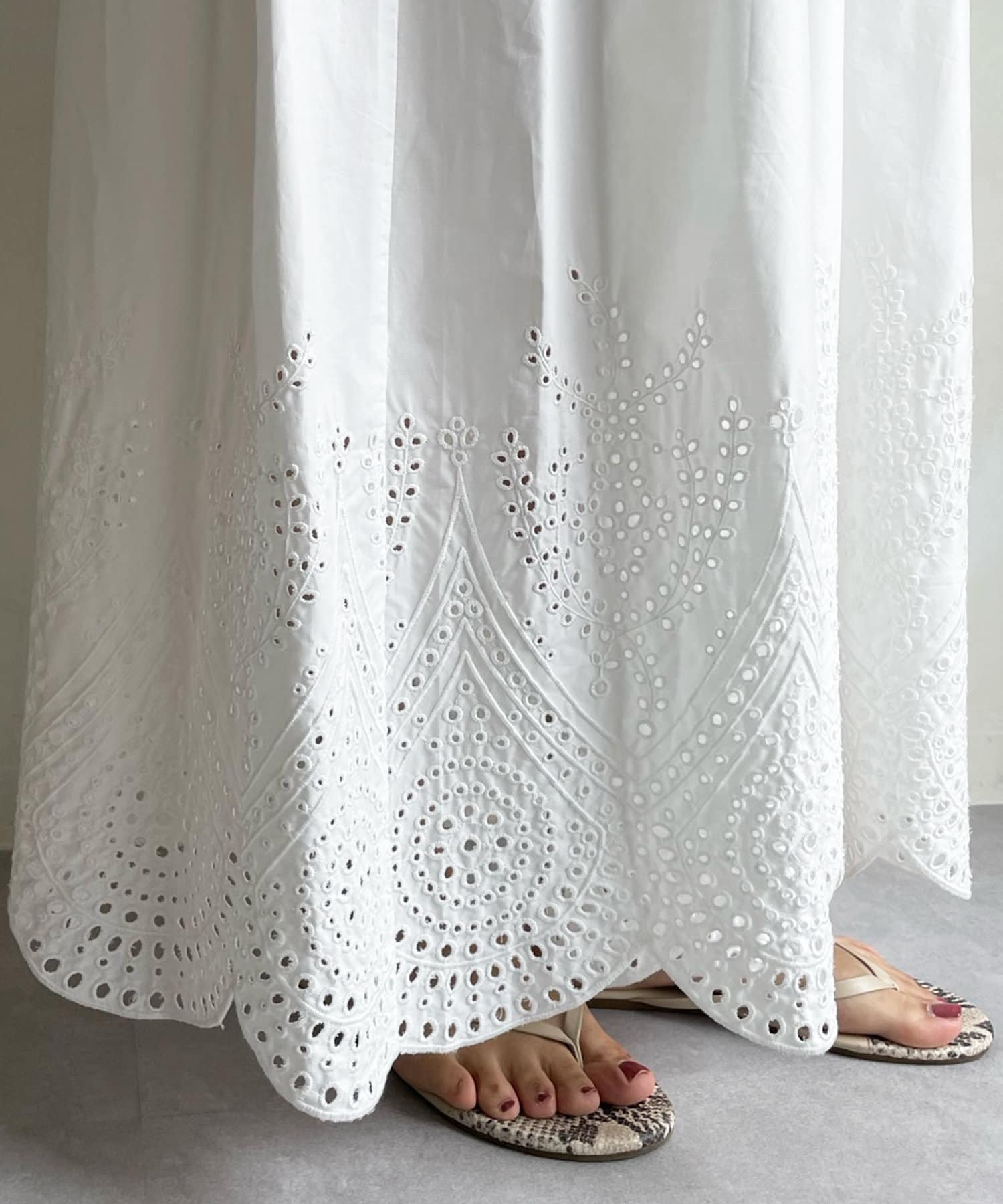 裾はスカラップにカットした刺繍レースのデザインで、シーズンムード漂う爽やかな印象をプラス。