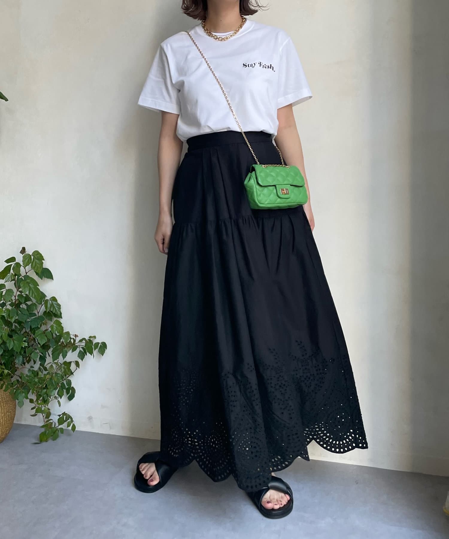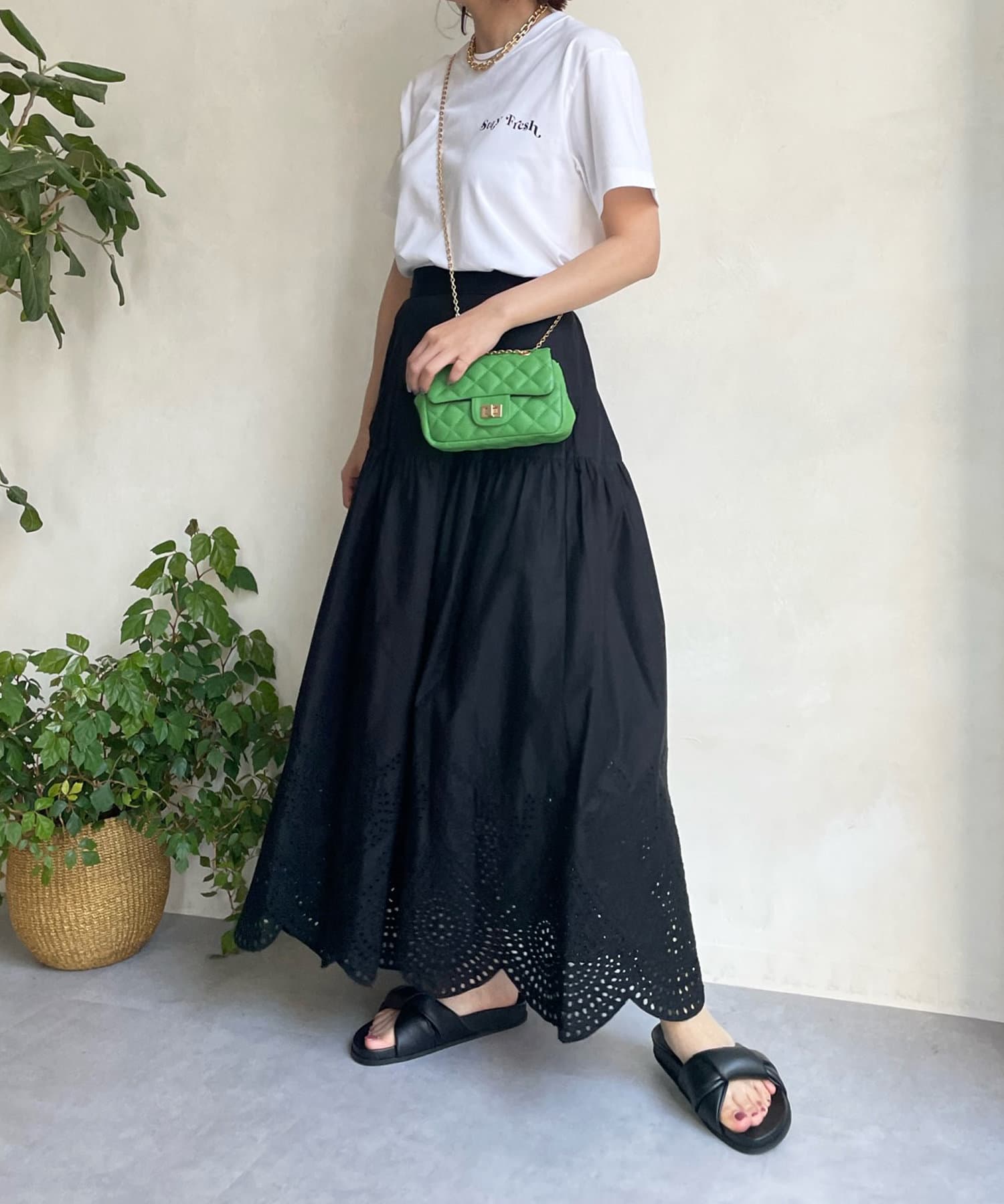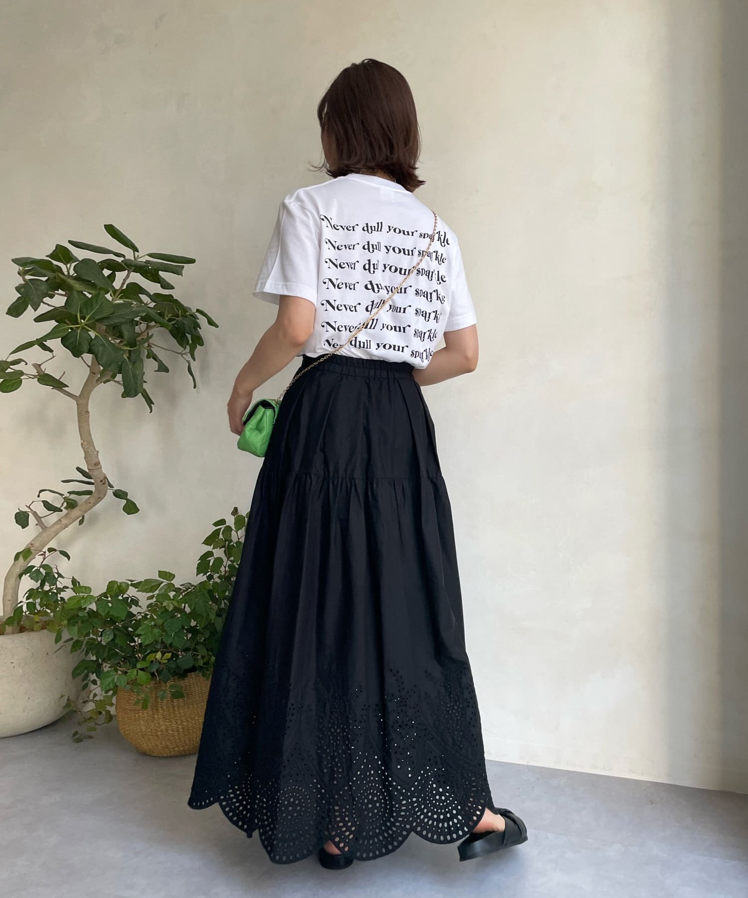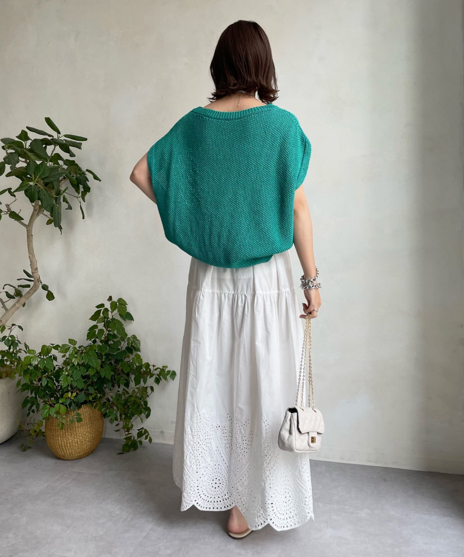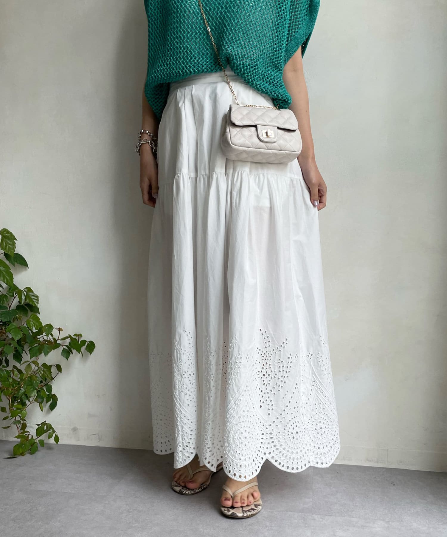 裾はスカラップにカットした刺繍レースのデザインで、シーズンムード漂う爽やかな印象をプラス。