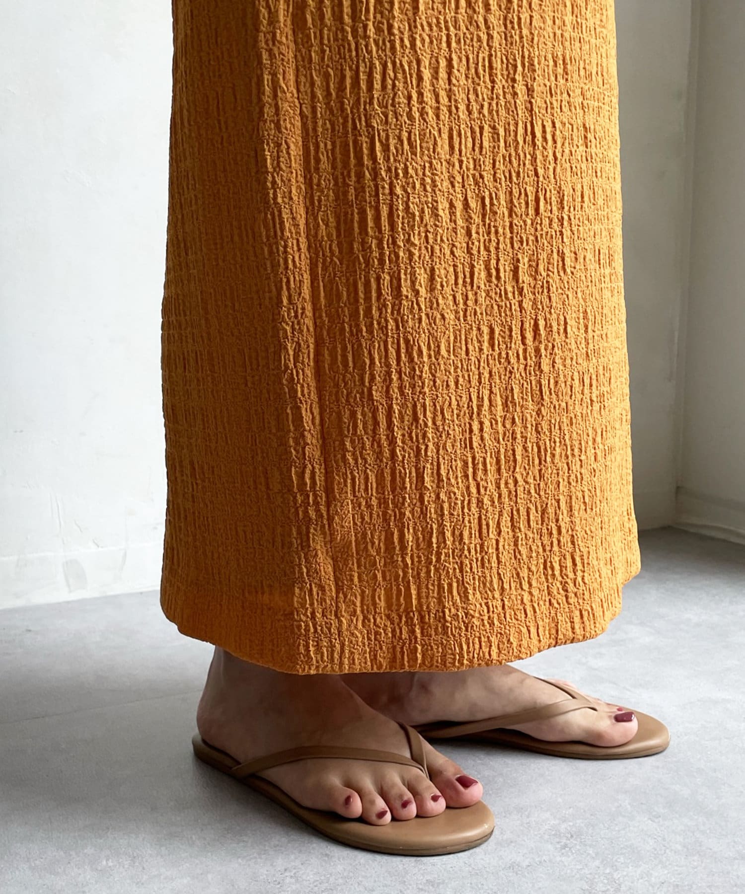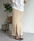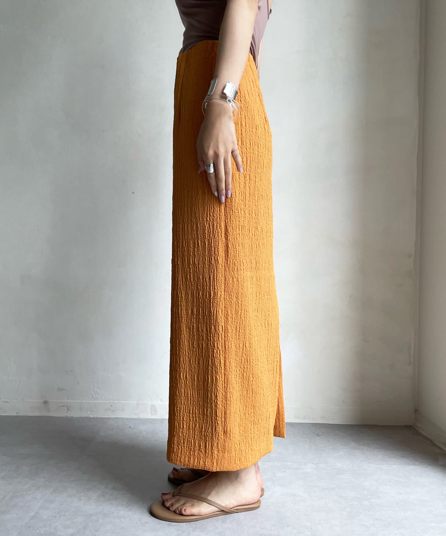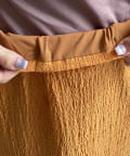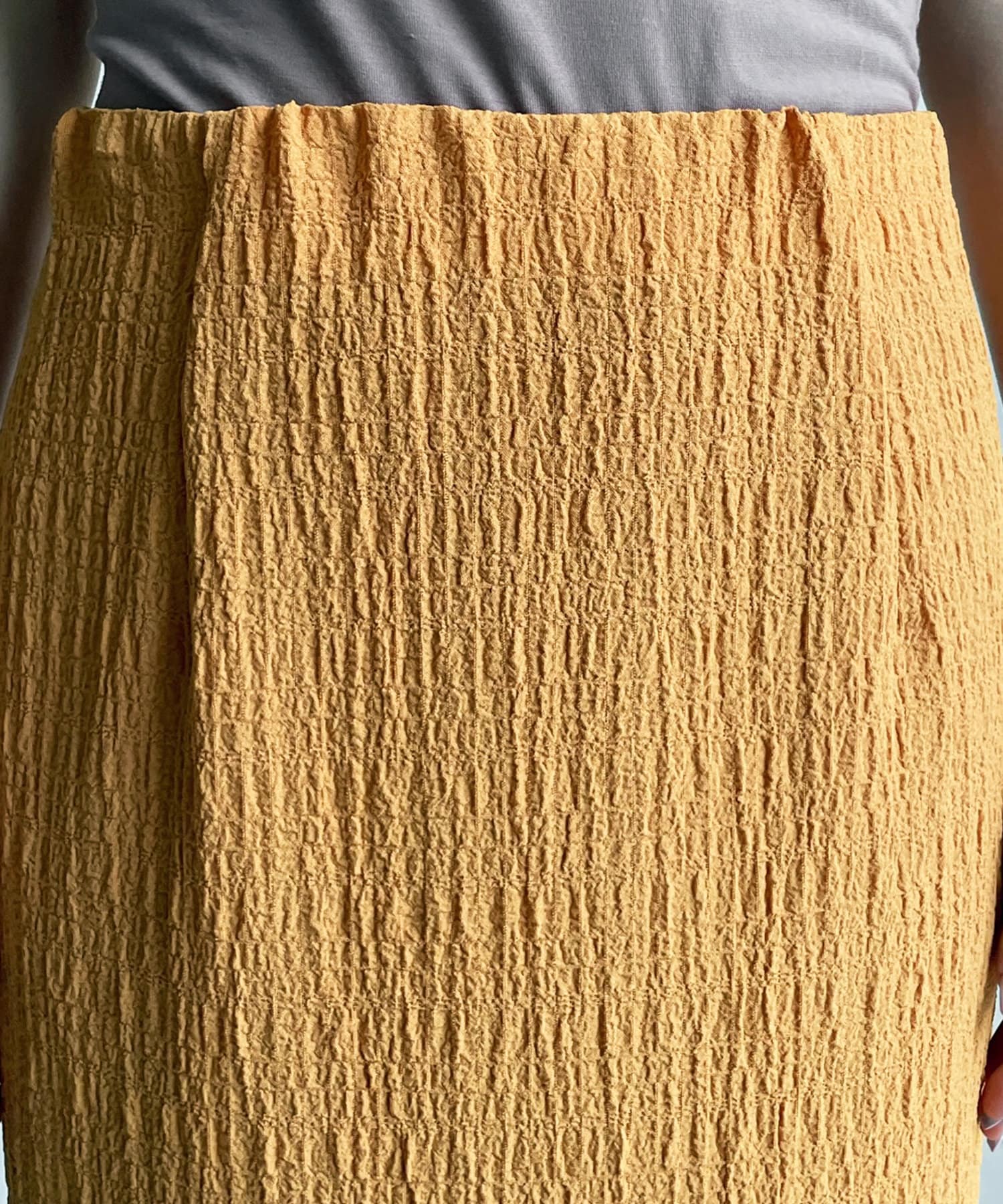 ウエストは内側にゴムを仕込むことで、インした際もすっきり見せしてくれるうれしいポイント。