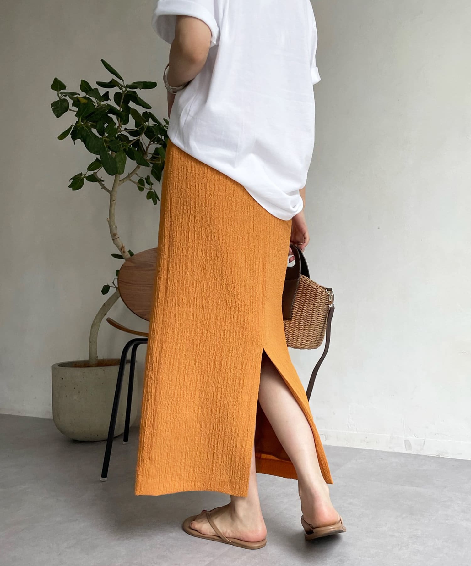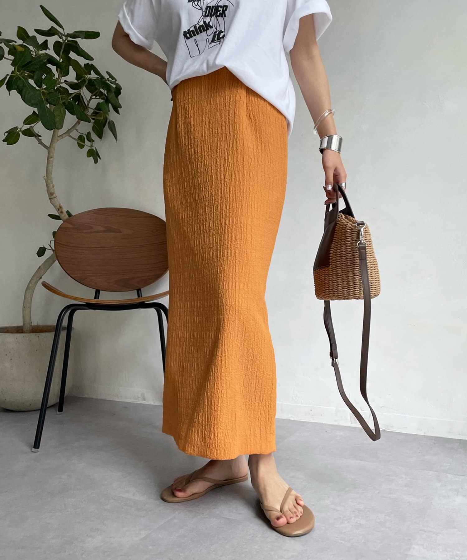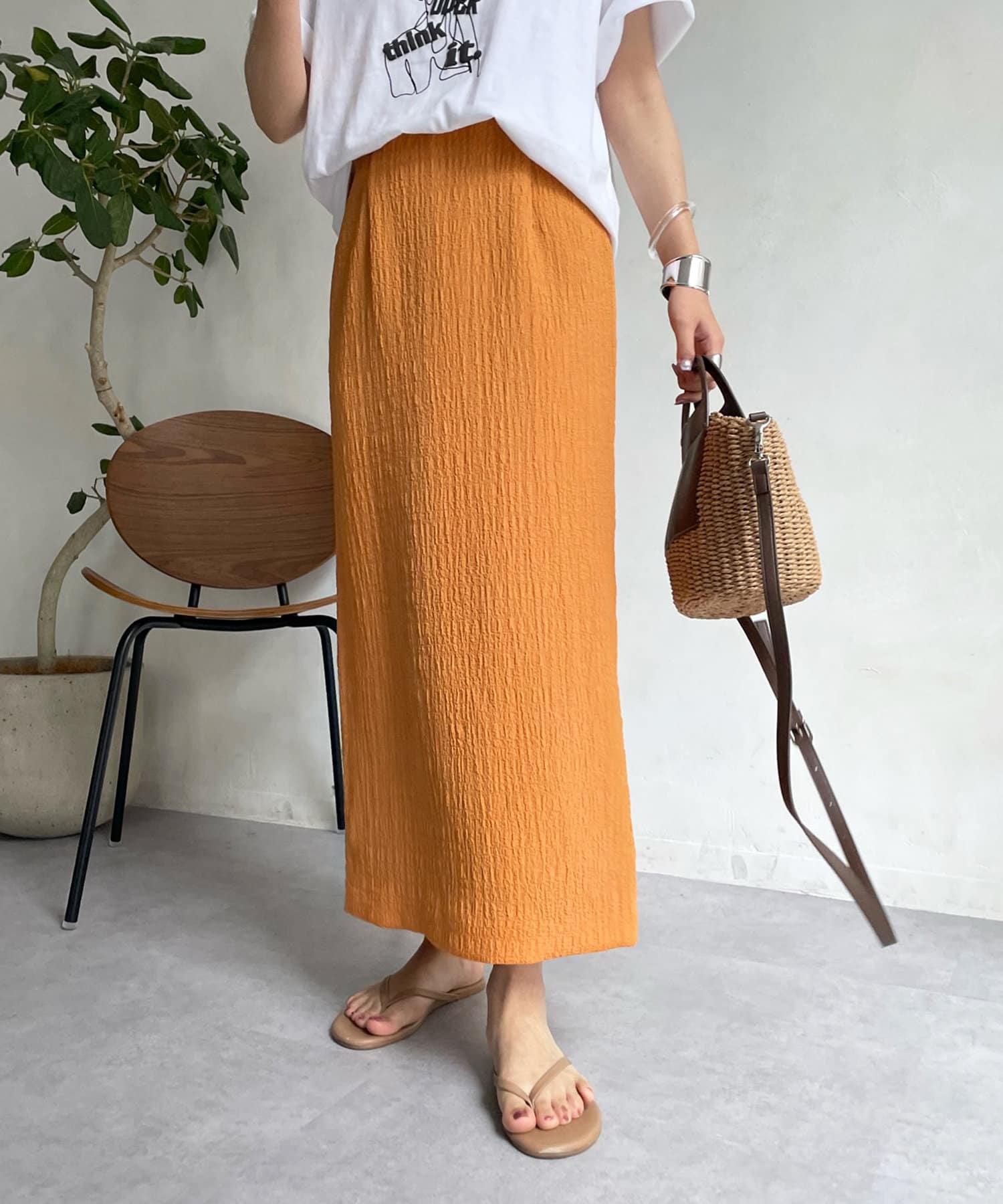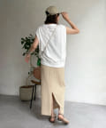 Tシャツとスタイリングしてもカジュアルになり過ぎずに、きれいめな印象を与えてくれます。