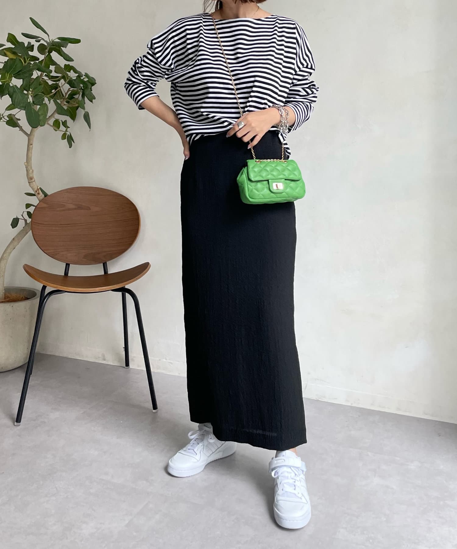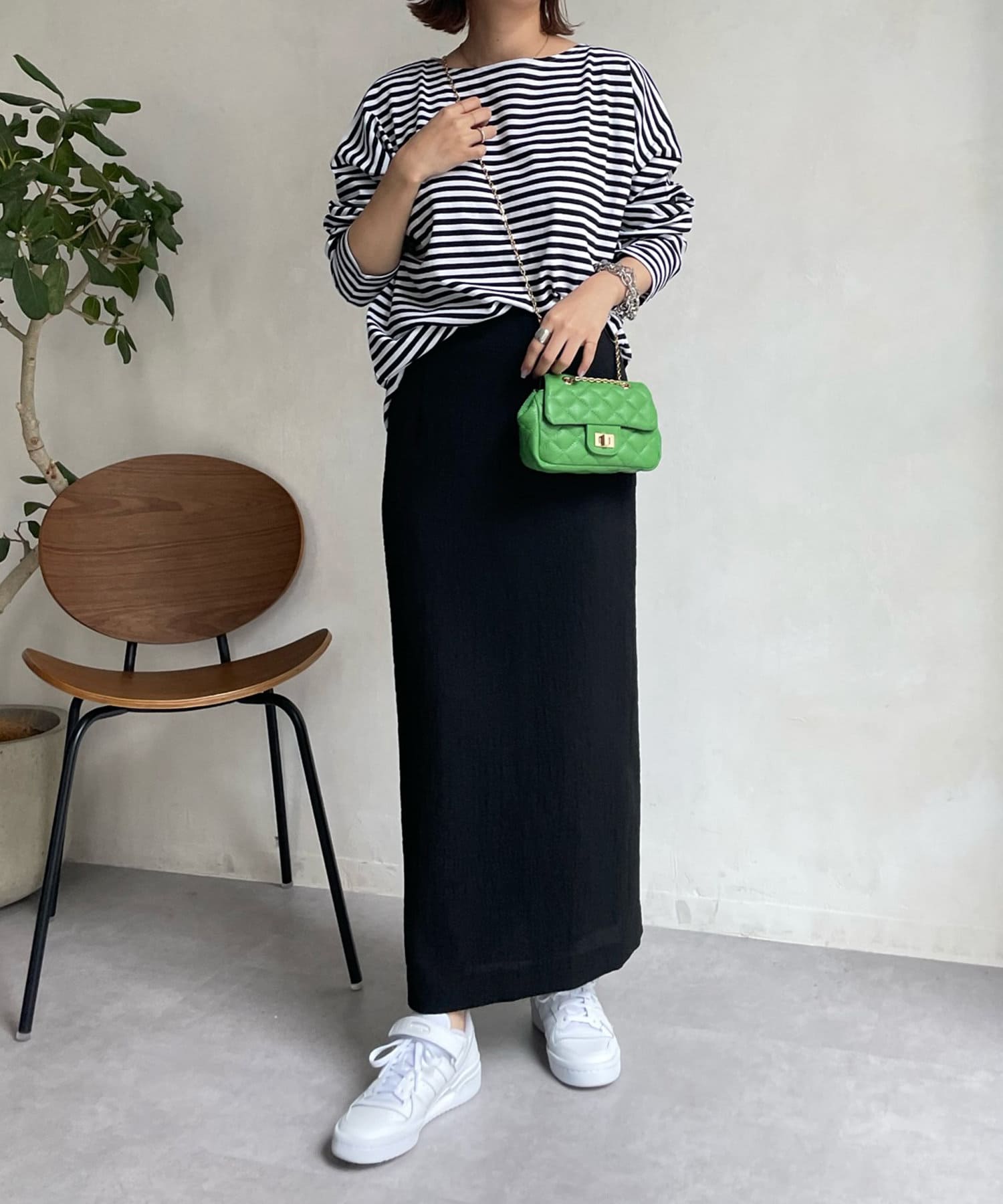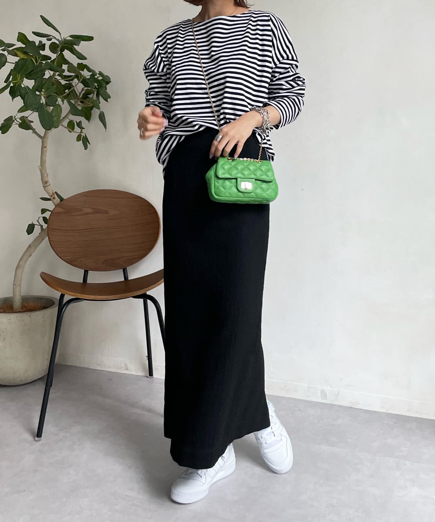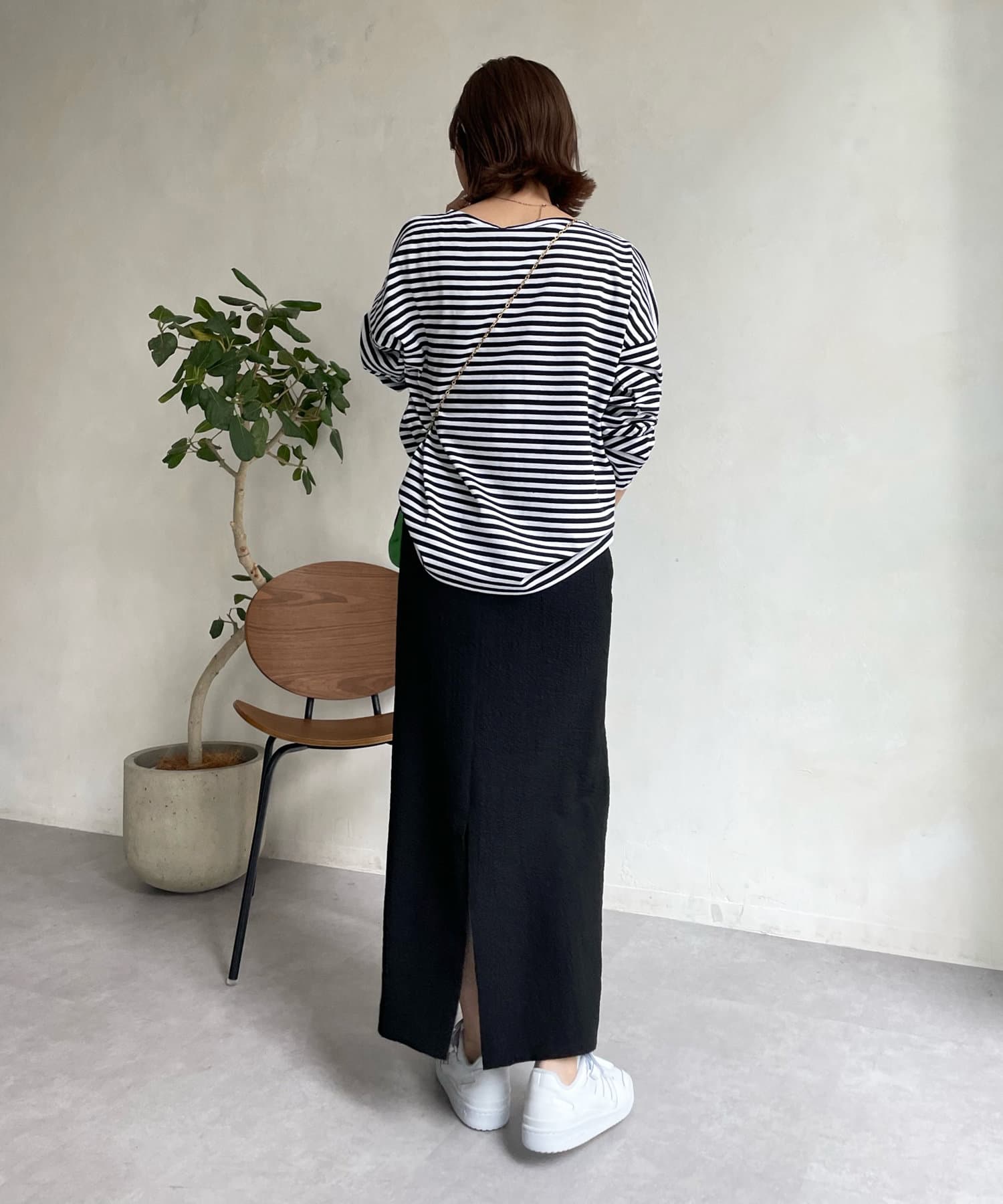 ぴたぴたとし過ぎない、Iラインシルエットは汎用性が高く、様々なコーデにマッチ。