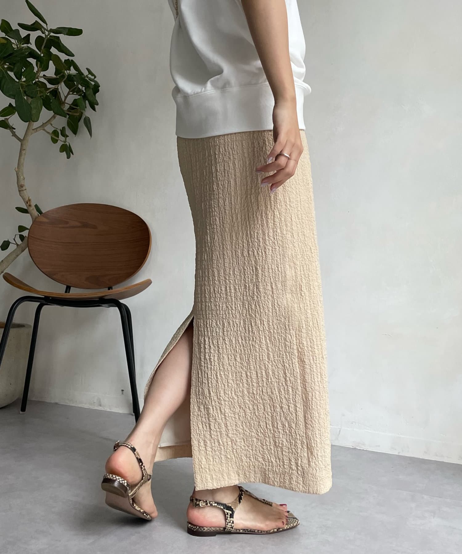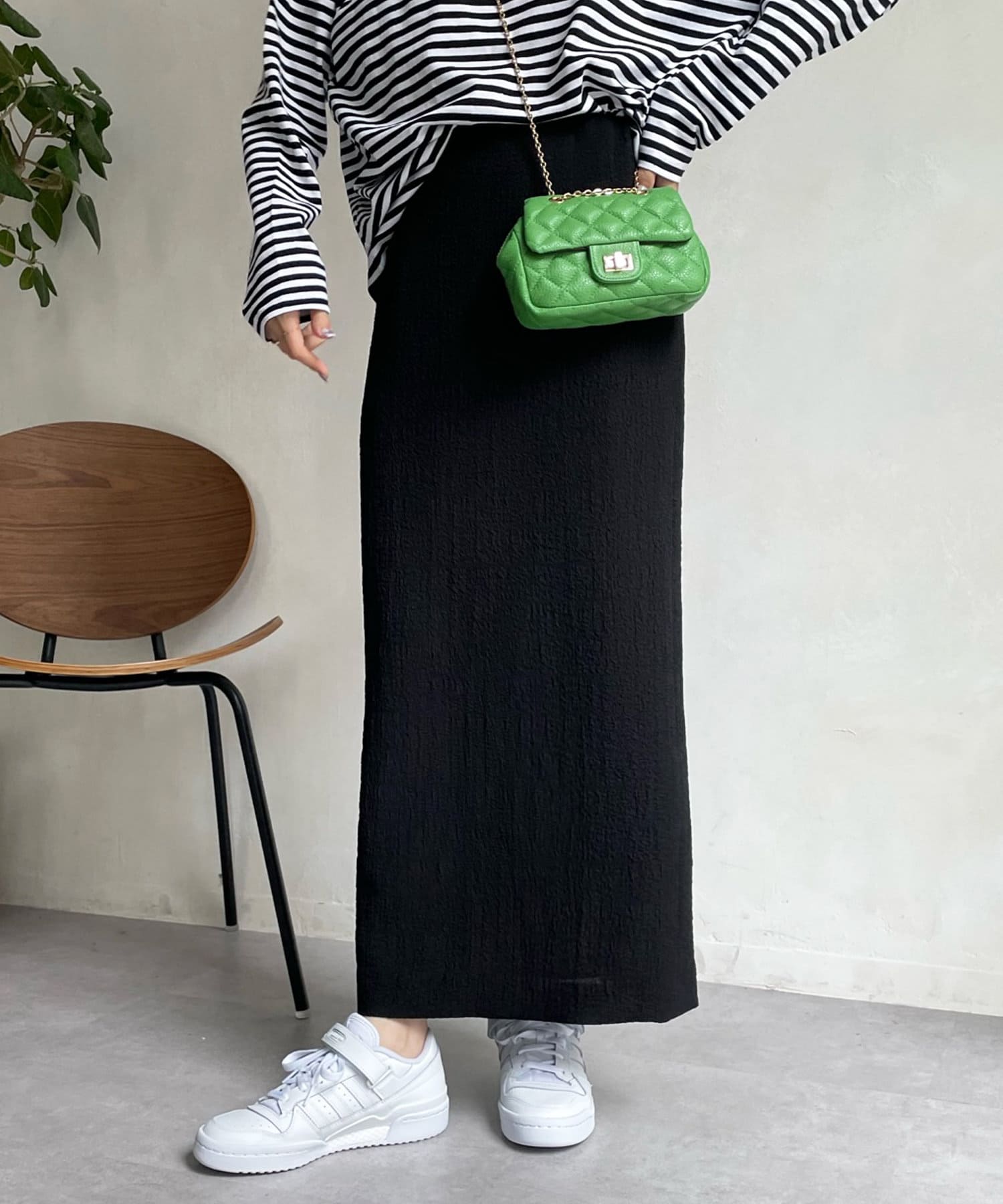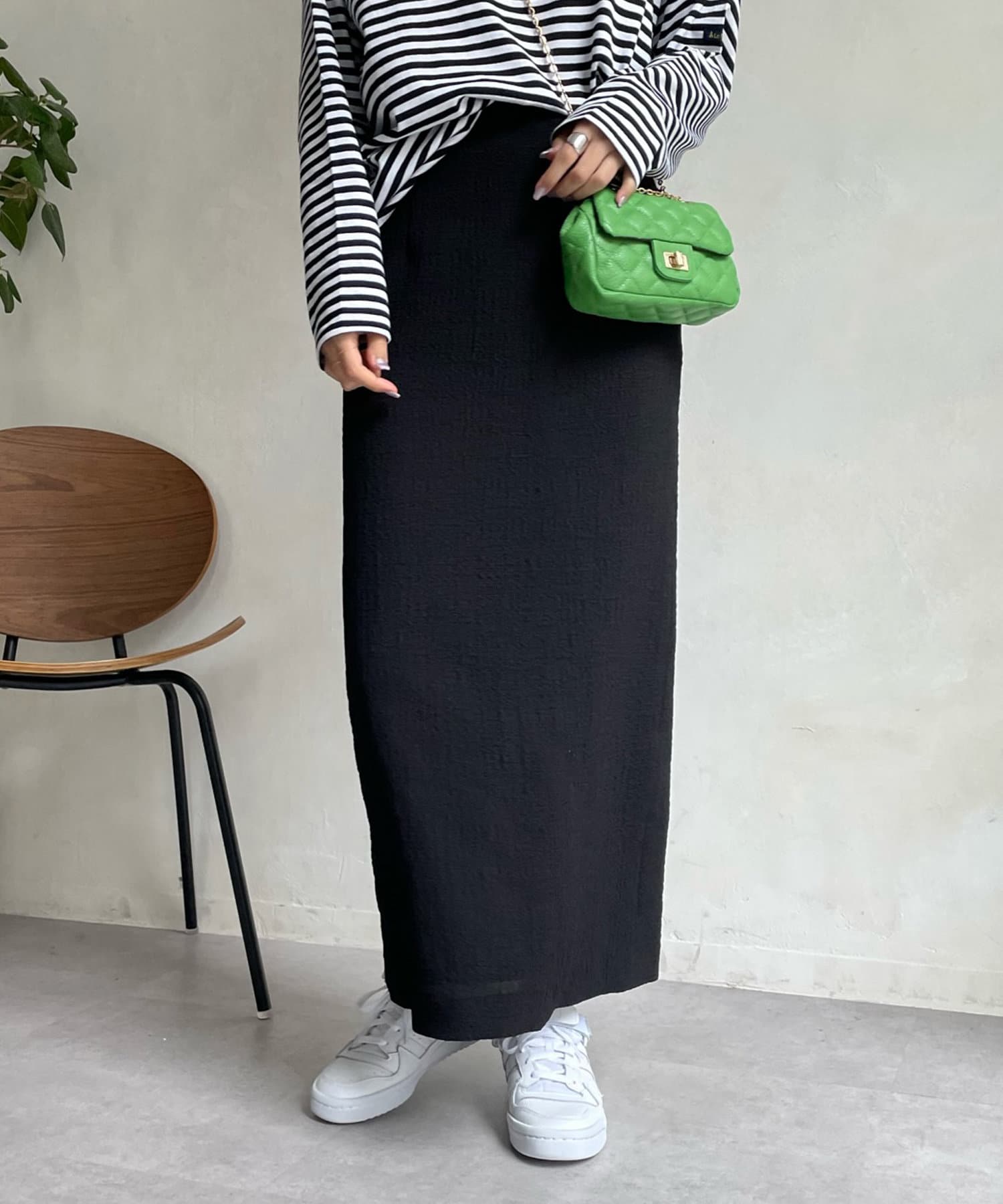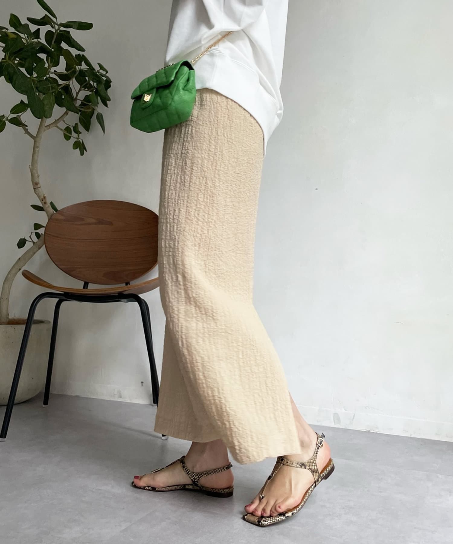 ぴたぴたとし過ぎない、Iラインシルエットは汎用性が高く、様々なコーデにマッチ。