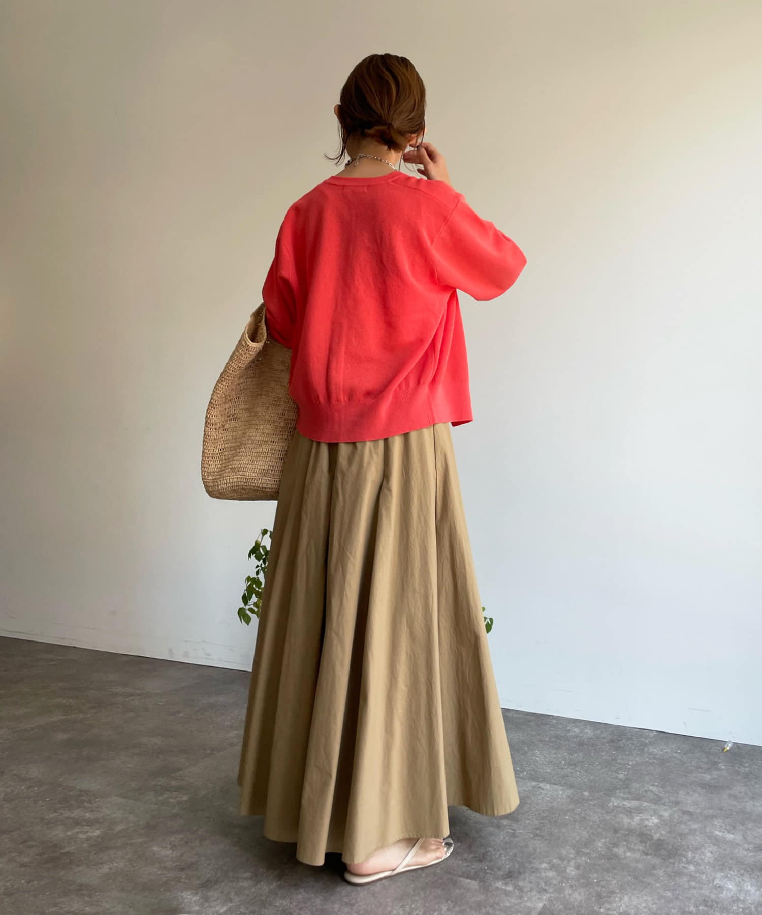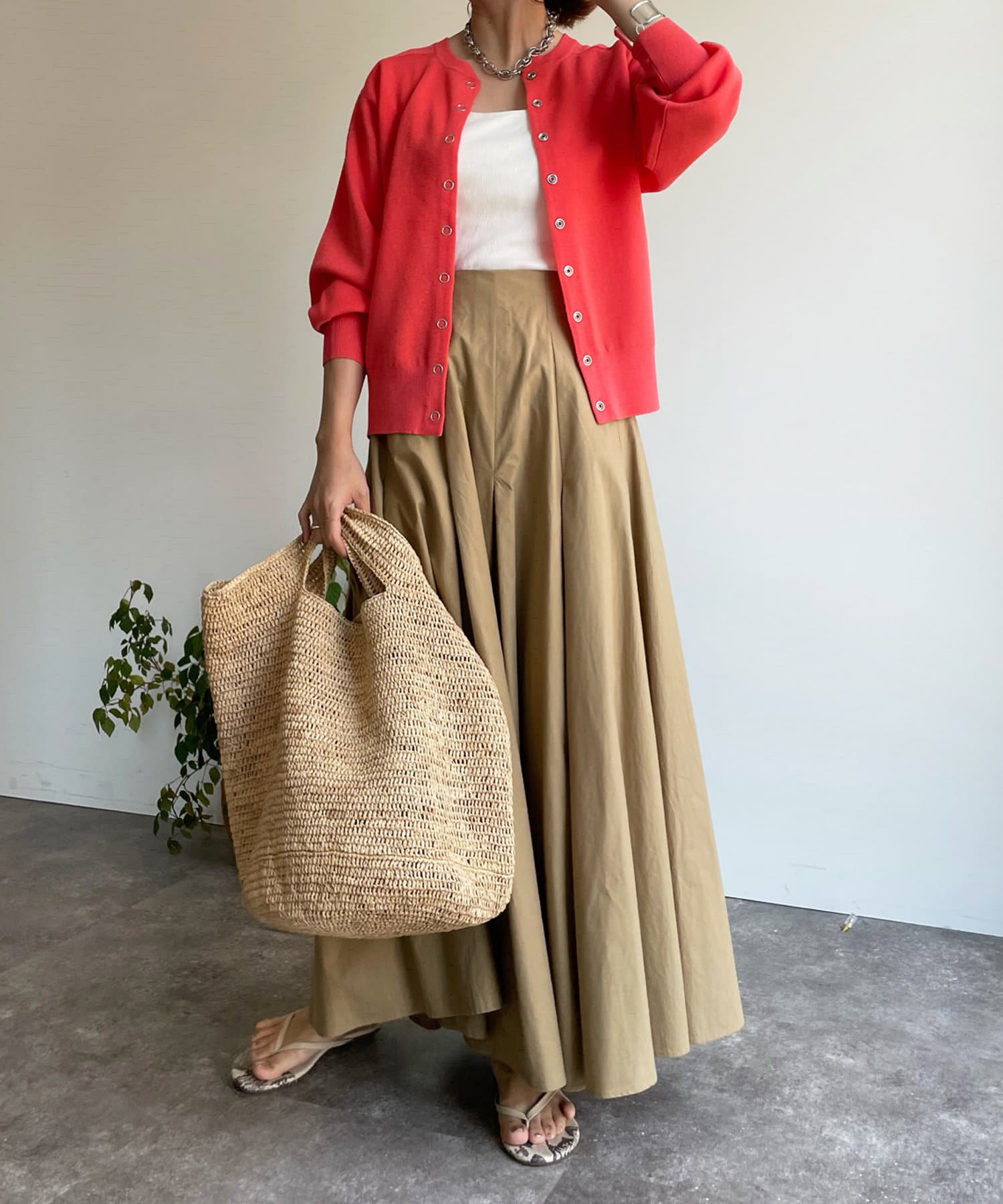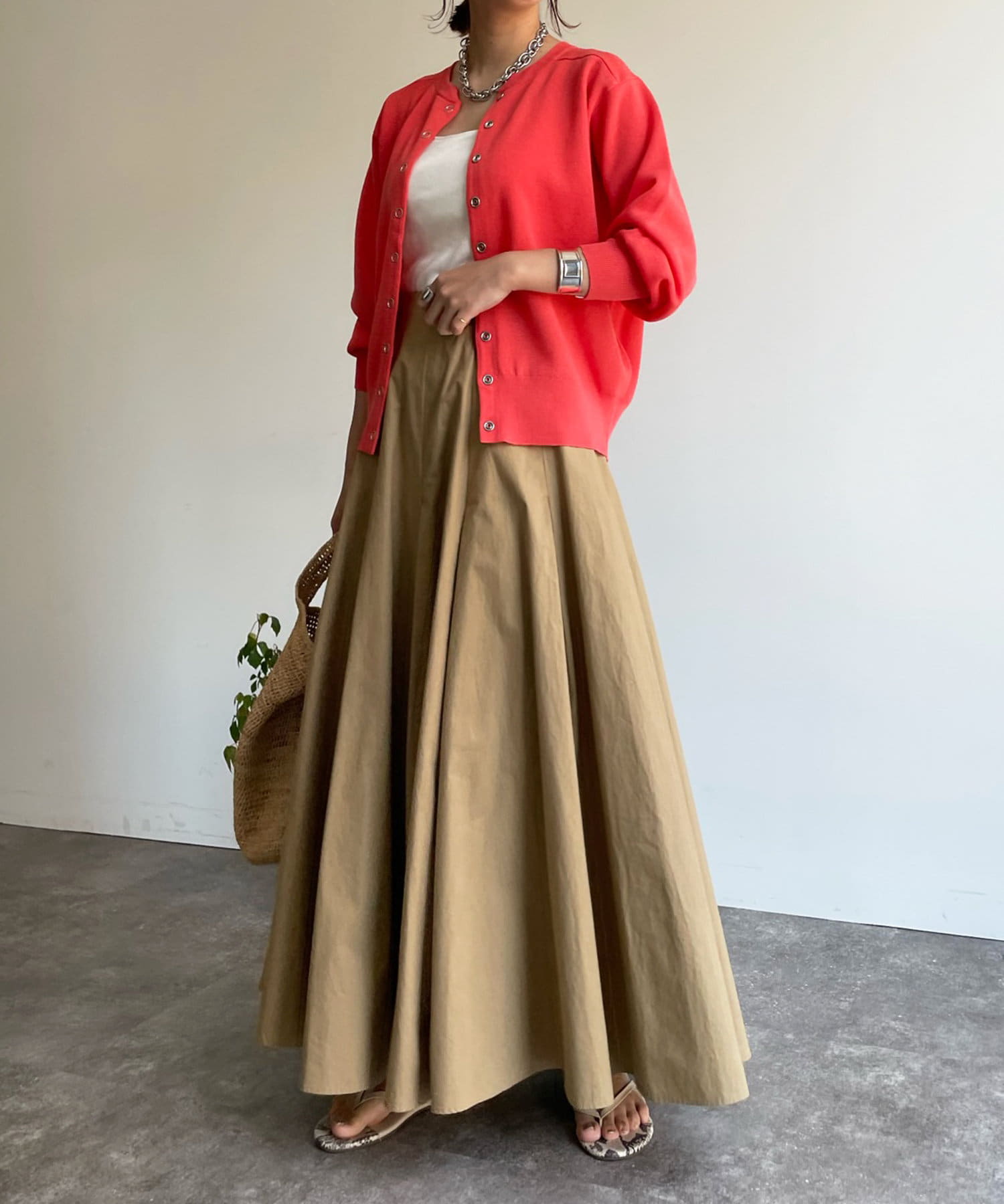 スカートスタイルにもパンツスタイルにもマッチするシルエットで、ひとつ持っておくと重宝してくれます。