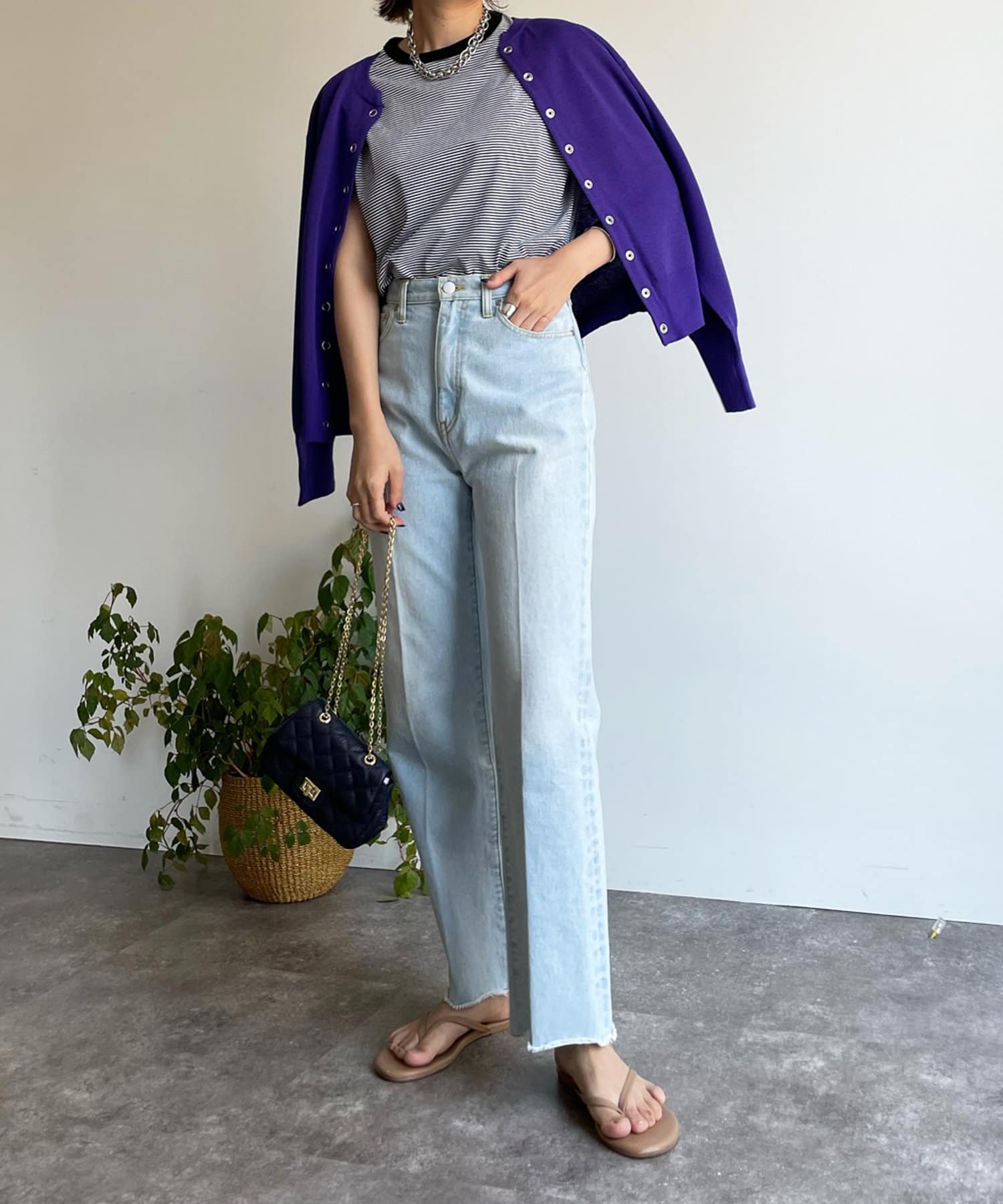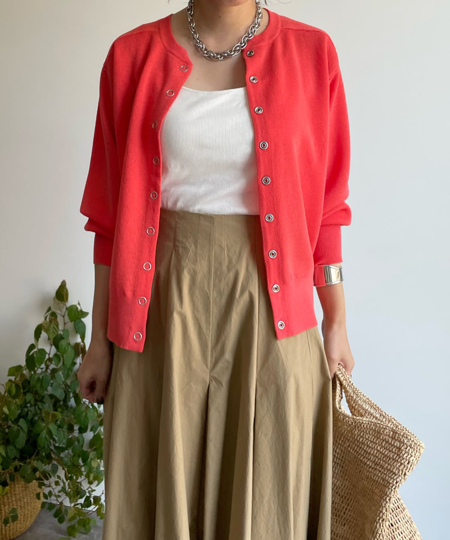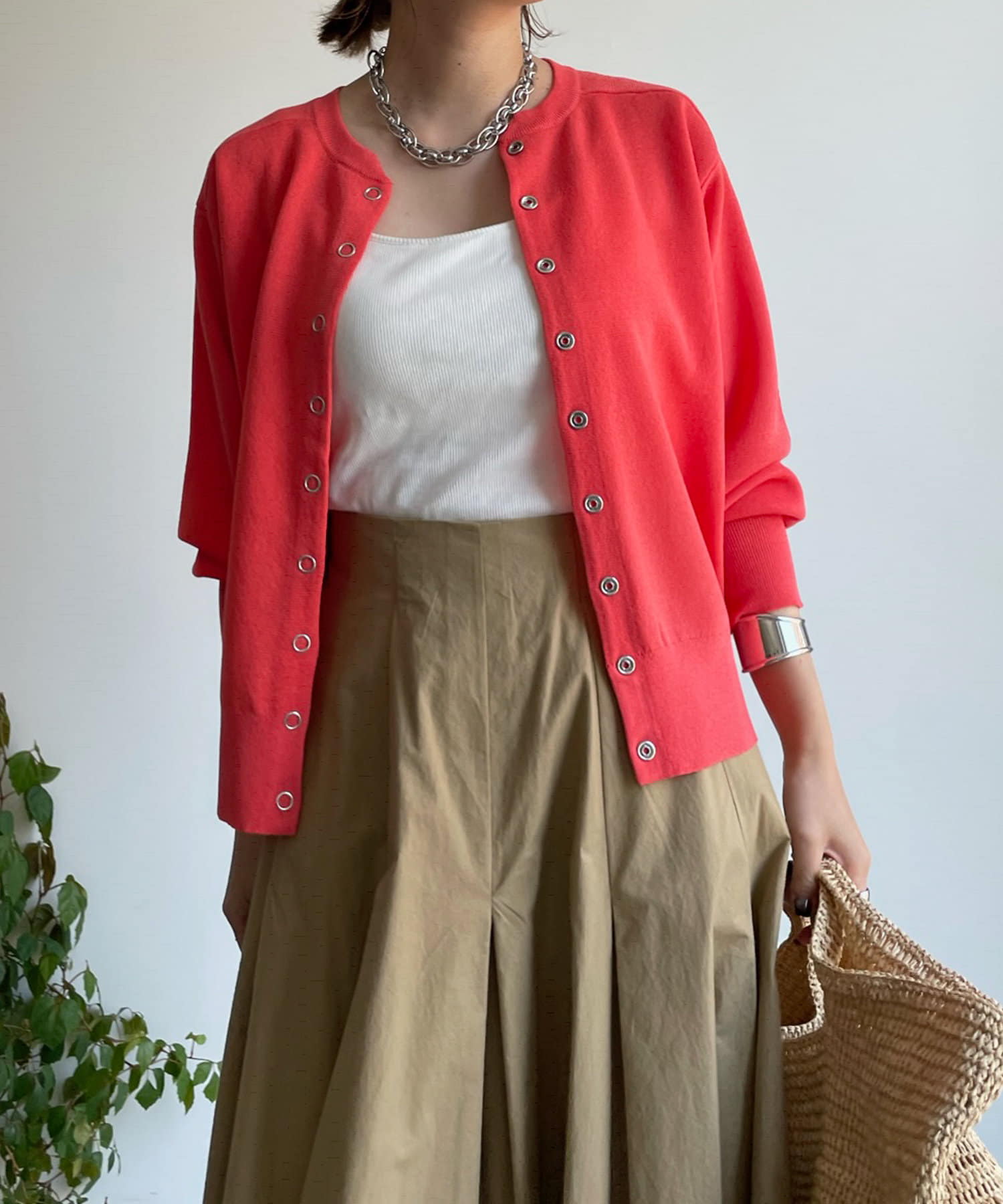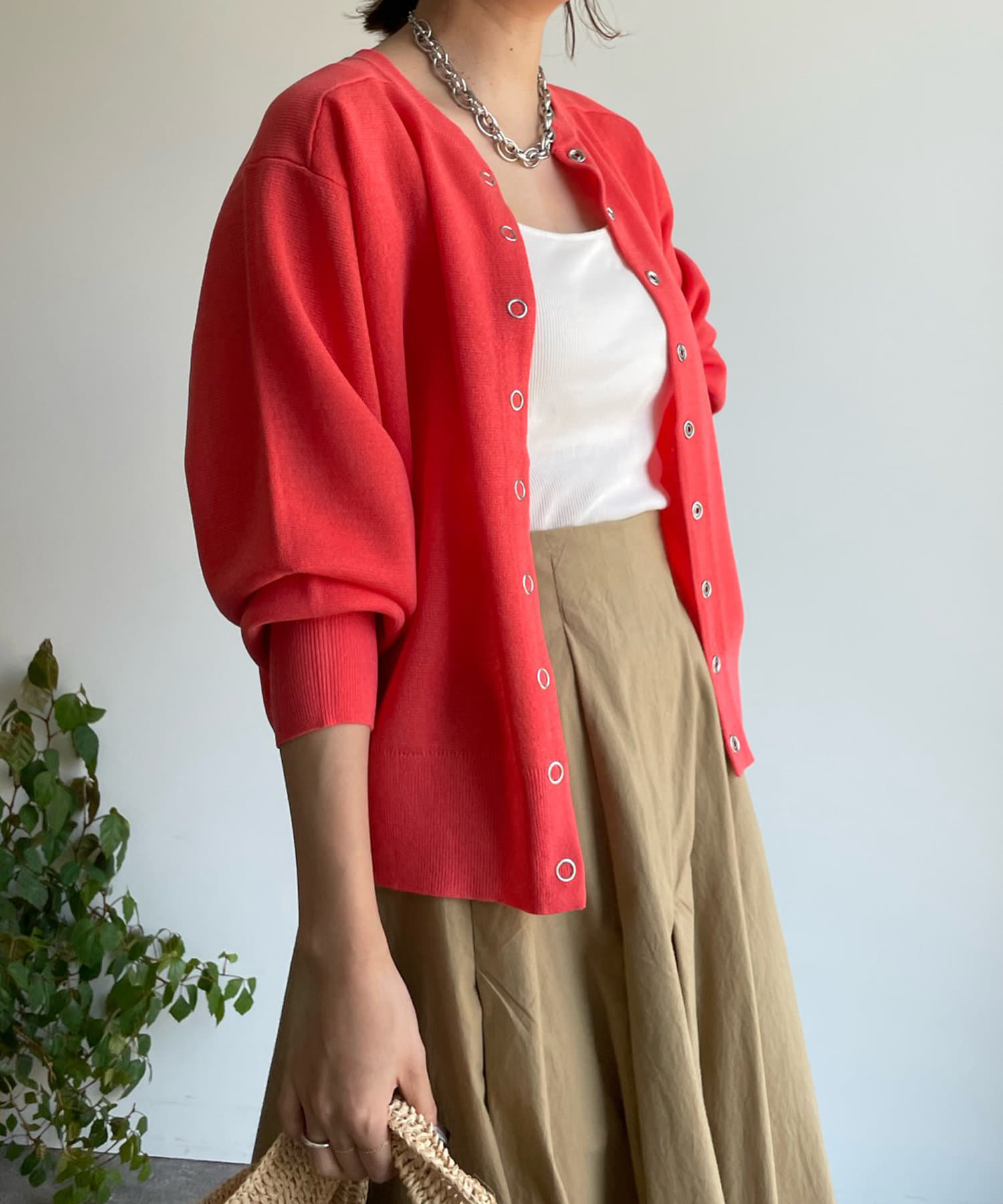 今の時期、冷房対策や日よけにさっと肩掛けや羽織りができるカーディガンは何気に必需。
