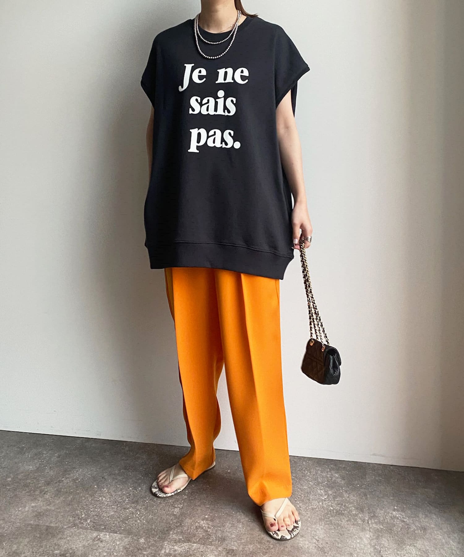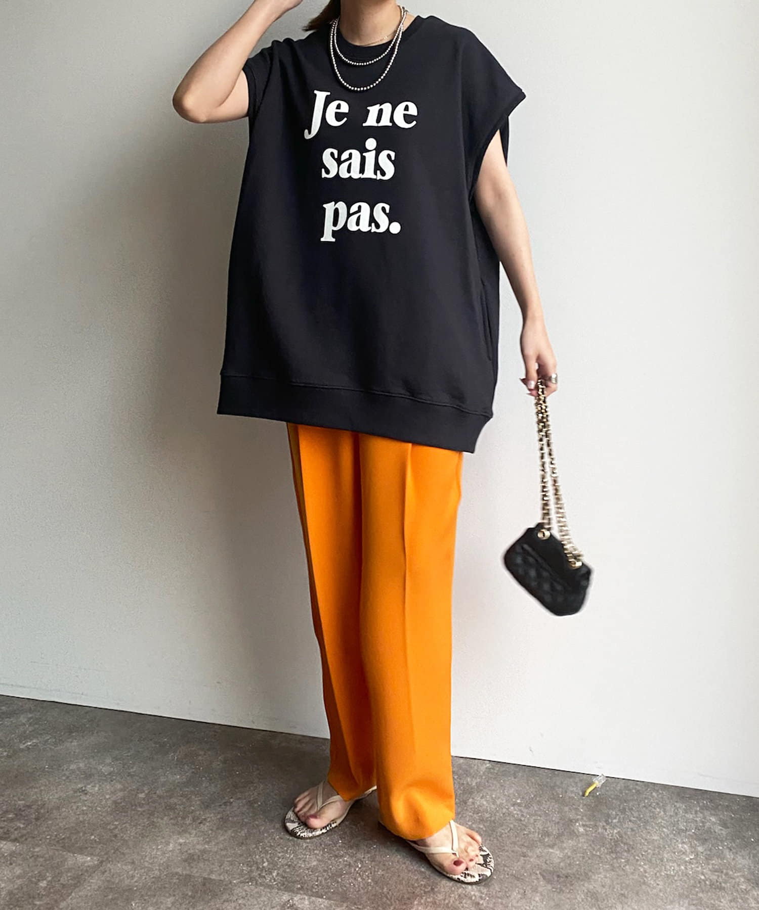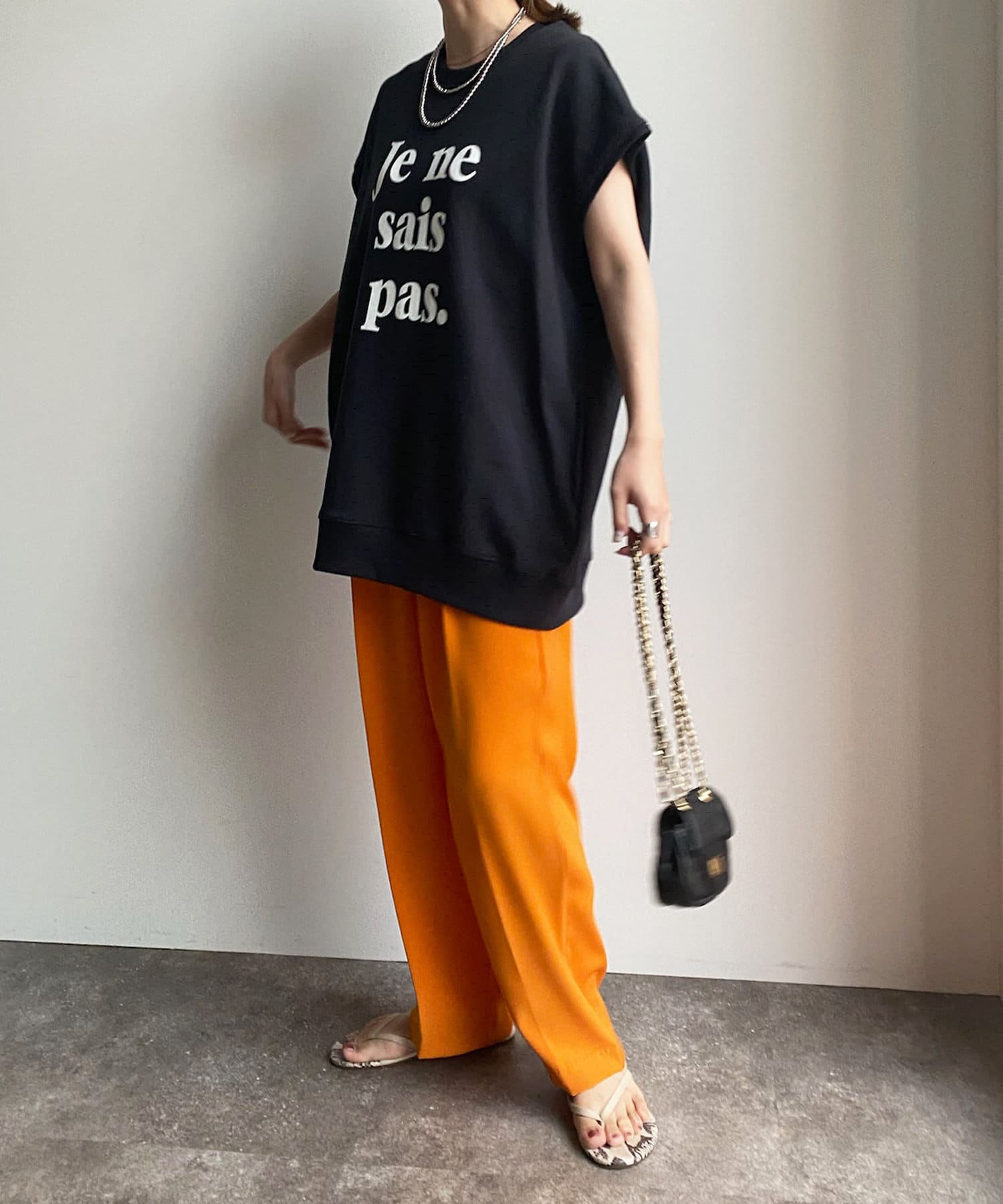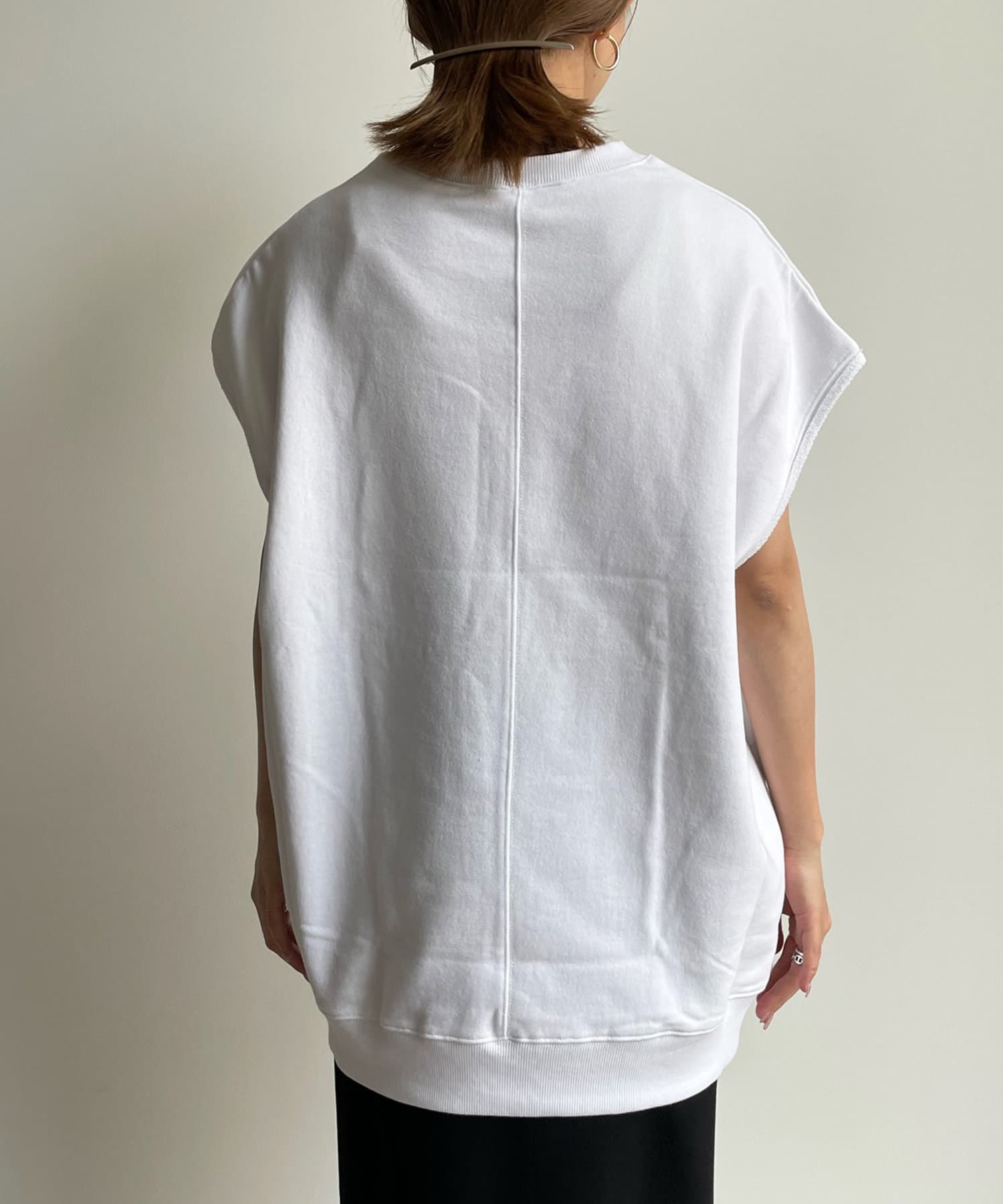 ルーズなサイジングのフレンチ袖スウェットは、カジュアルな印象ながらも女性らしい着こなしを楽しめる1着です。