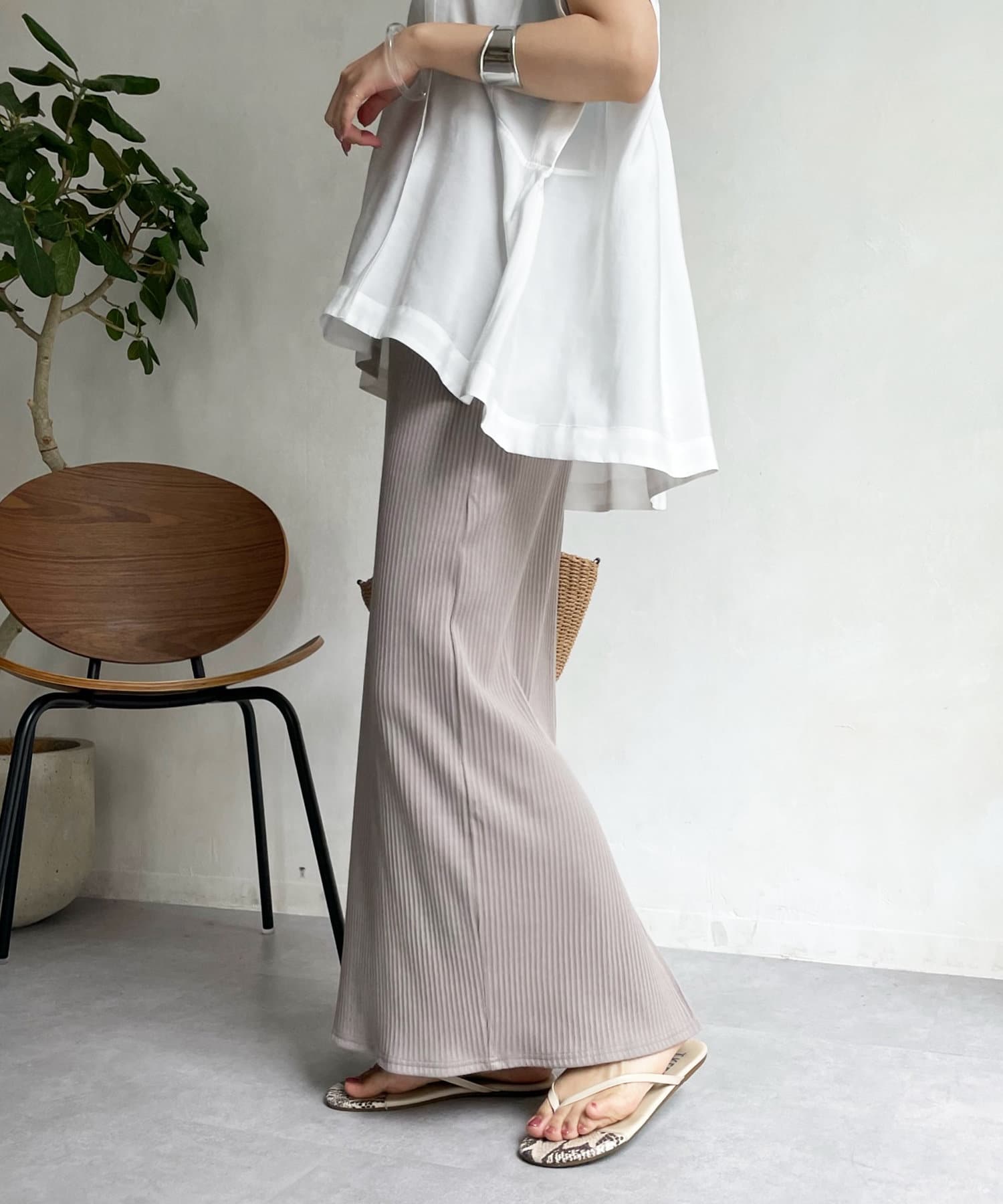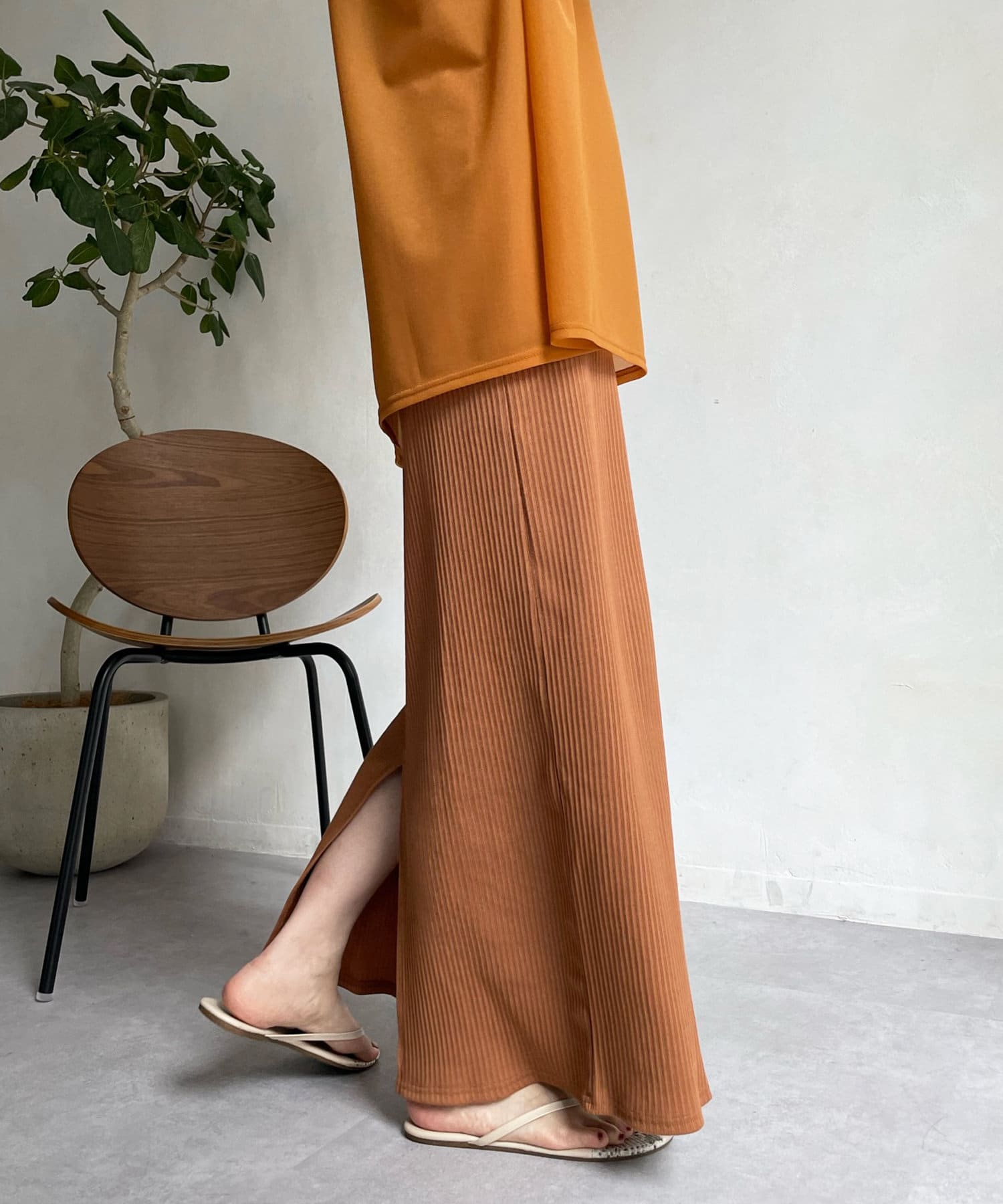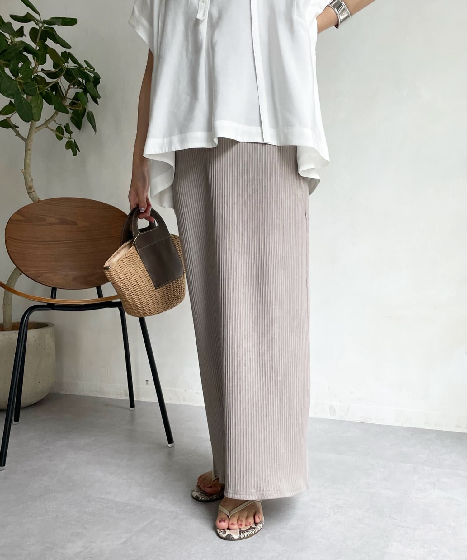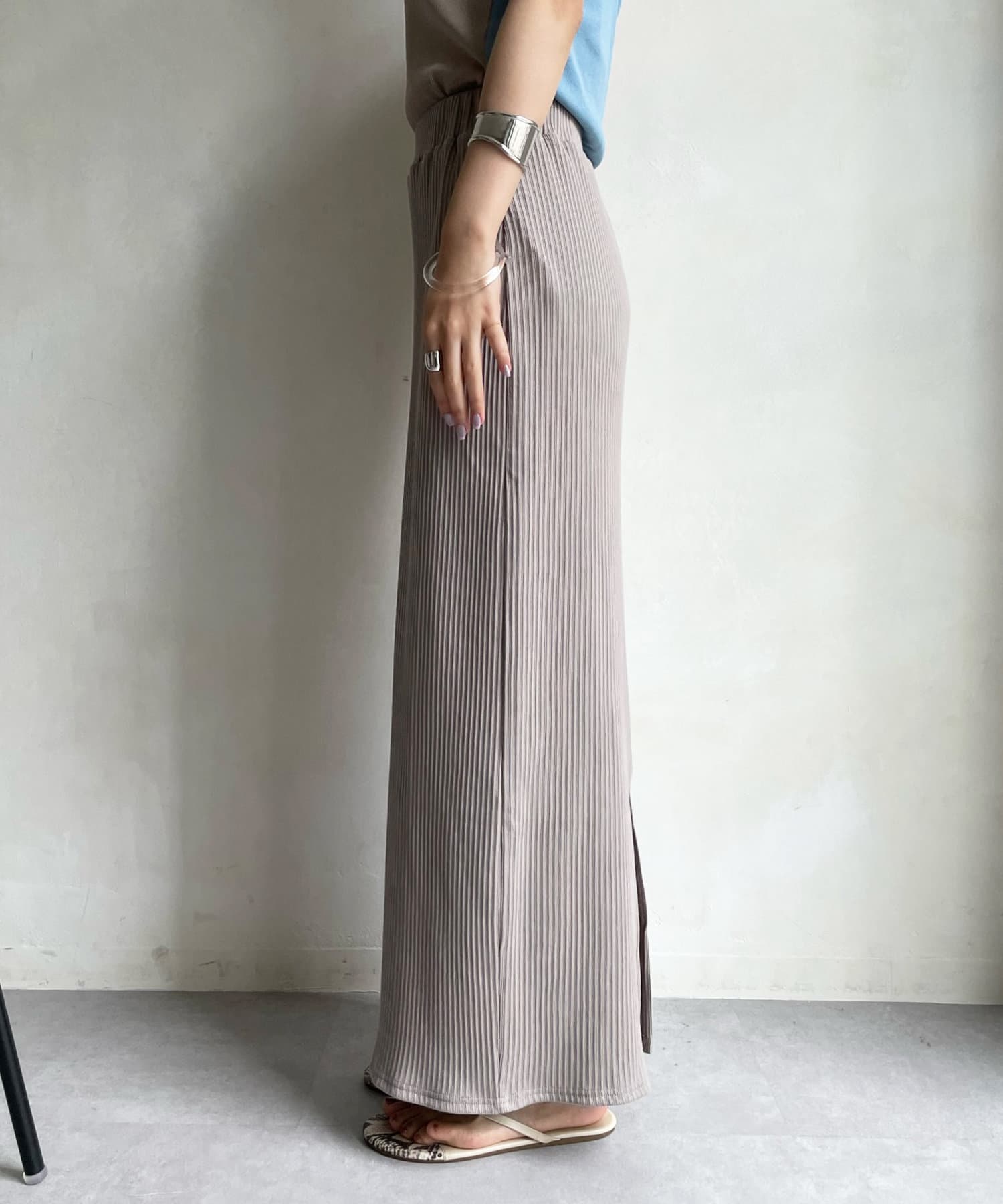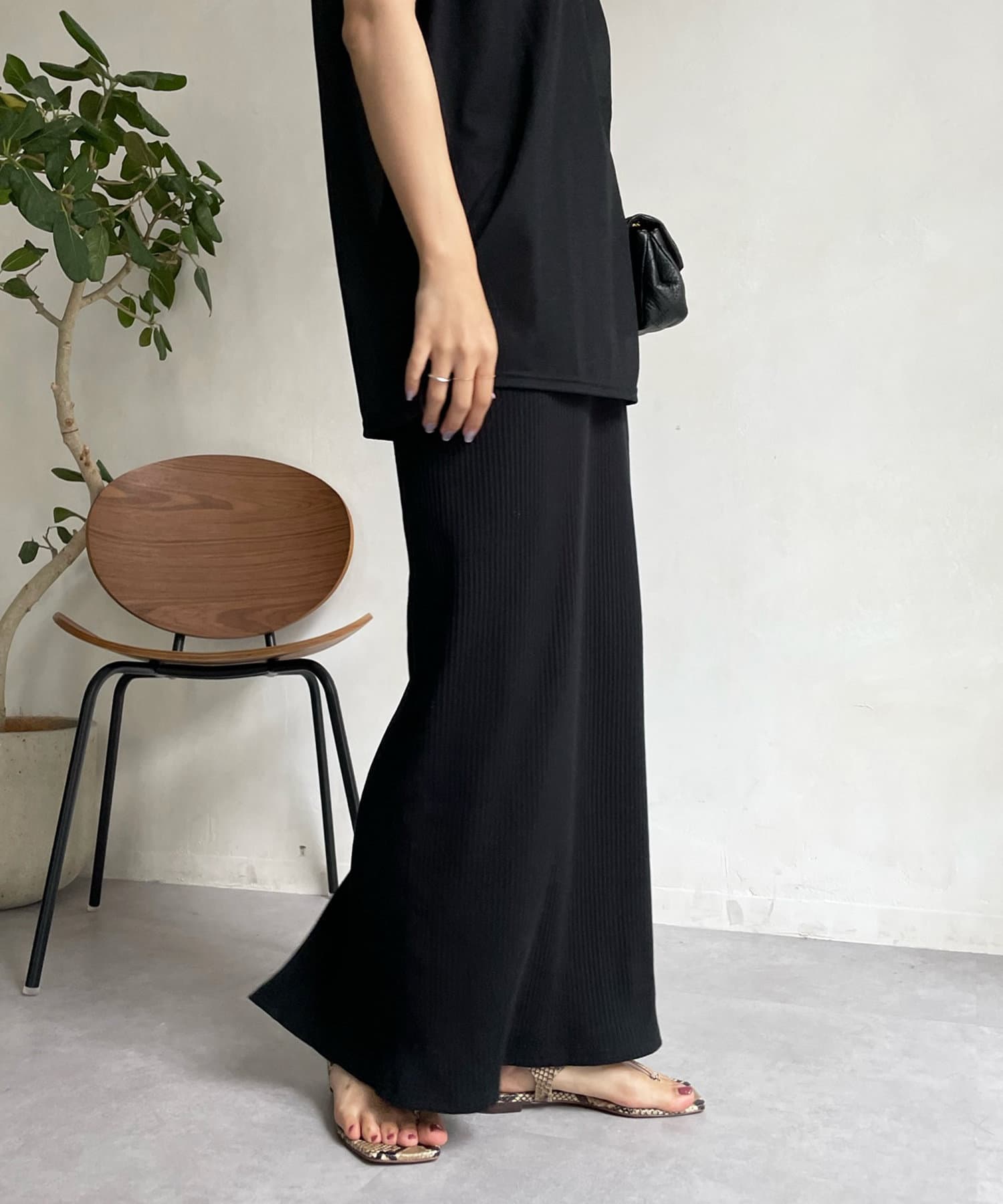 すっきりと見せてくれる上に、リブ素材+ウエストオールゴム仕様で、ストレスフリーな着心地を叶えます。