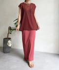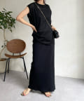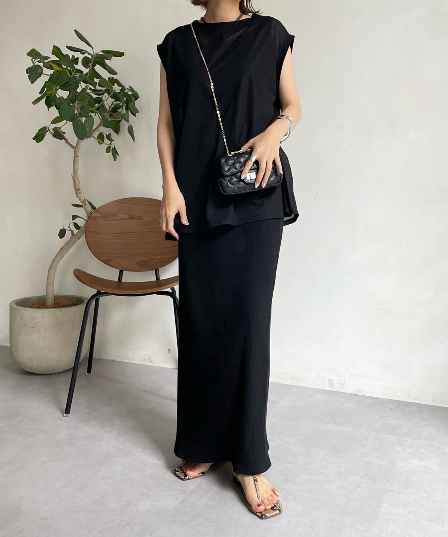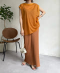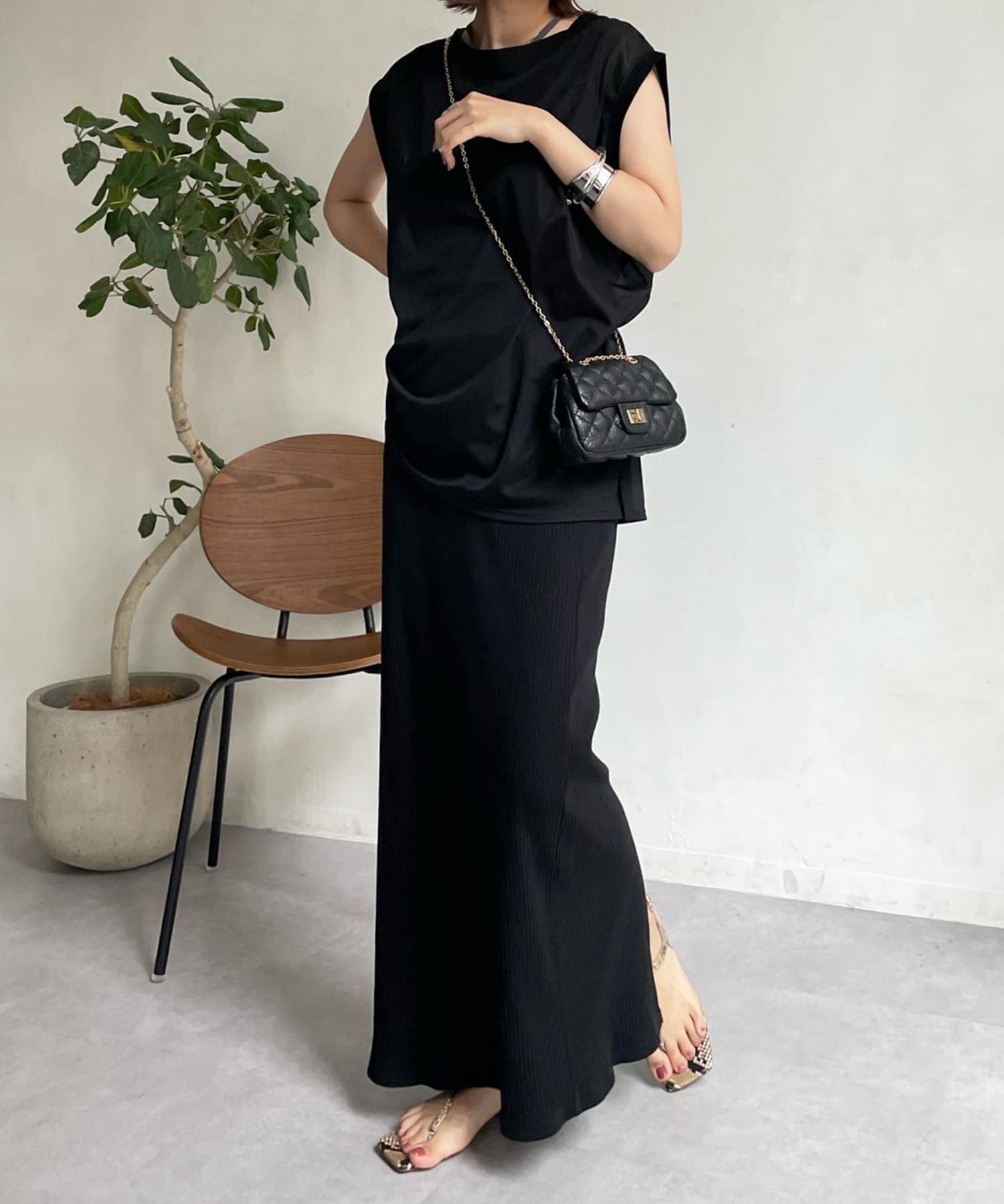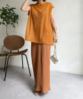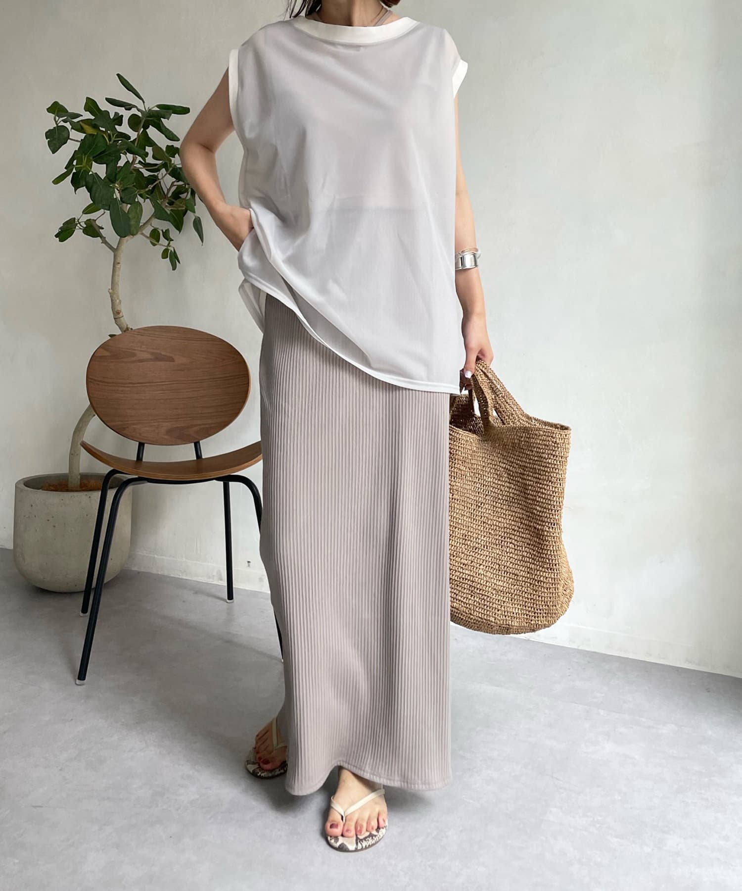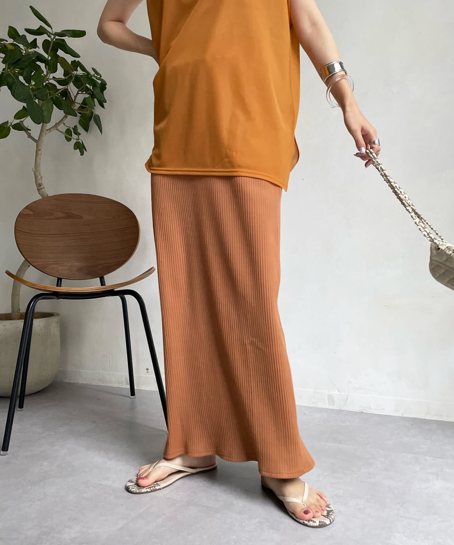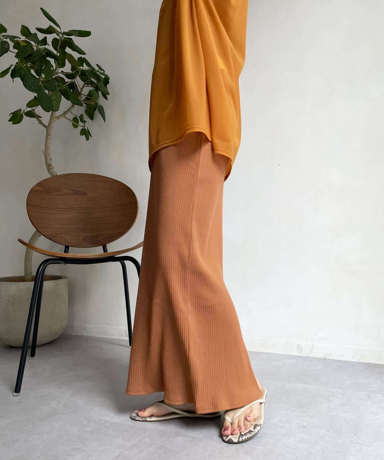 すっきりと見せてくれる上に、リブ素材+ウエストオールゴム仕様で、ストレスフリーな着心地を叶えます。