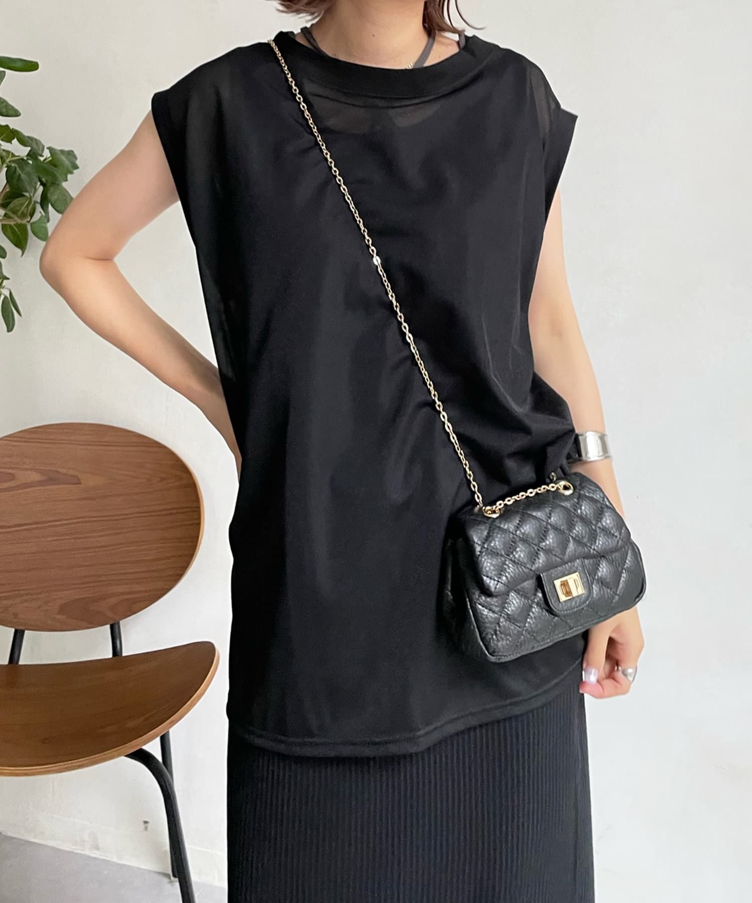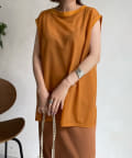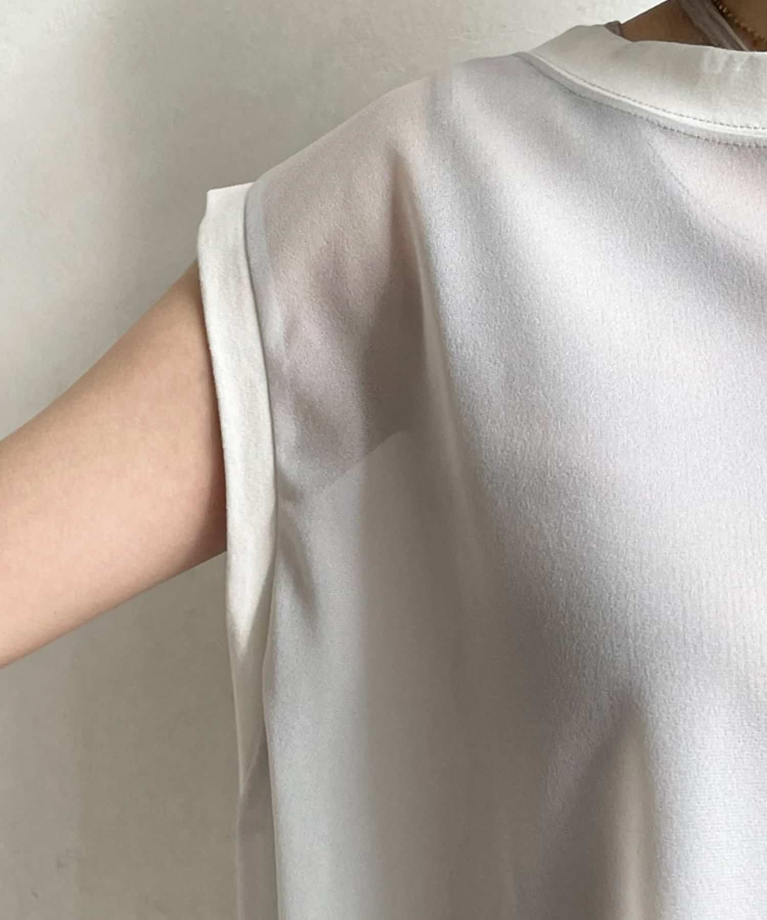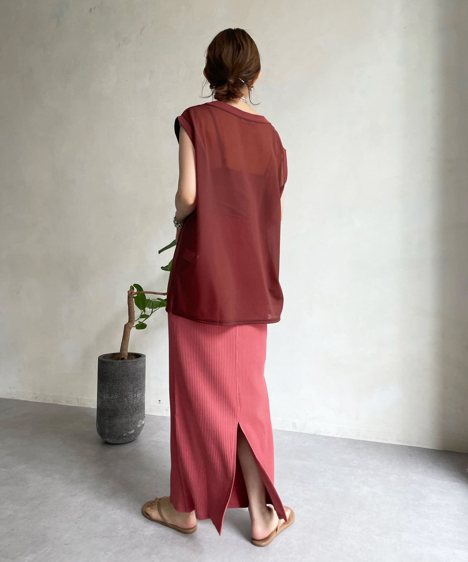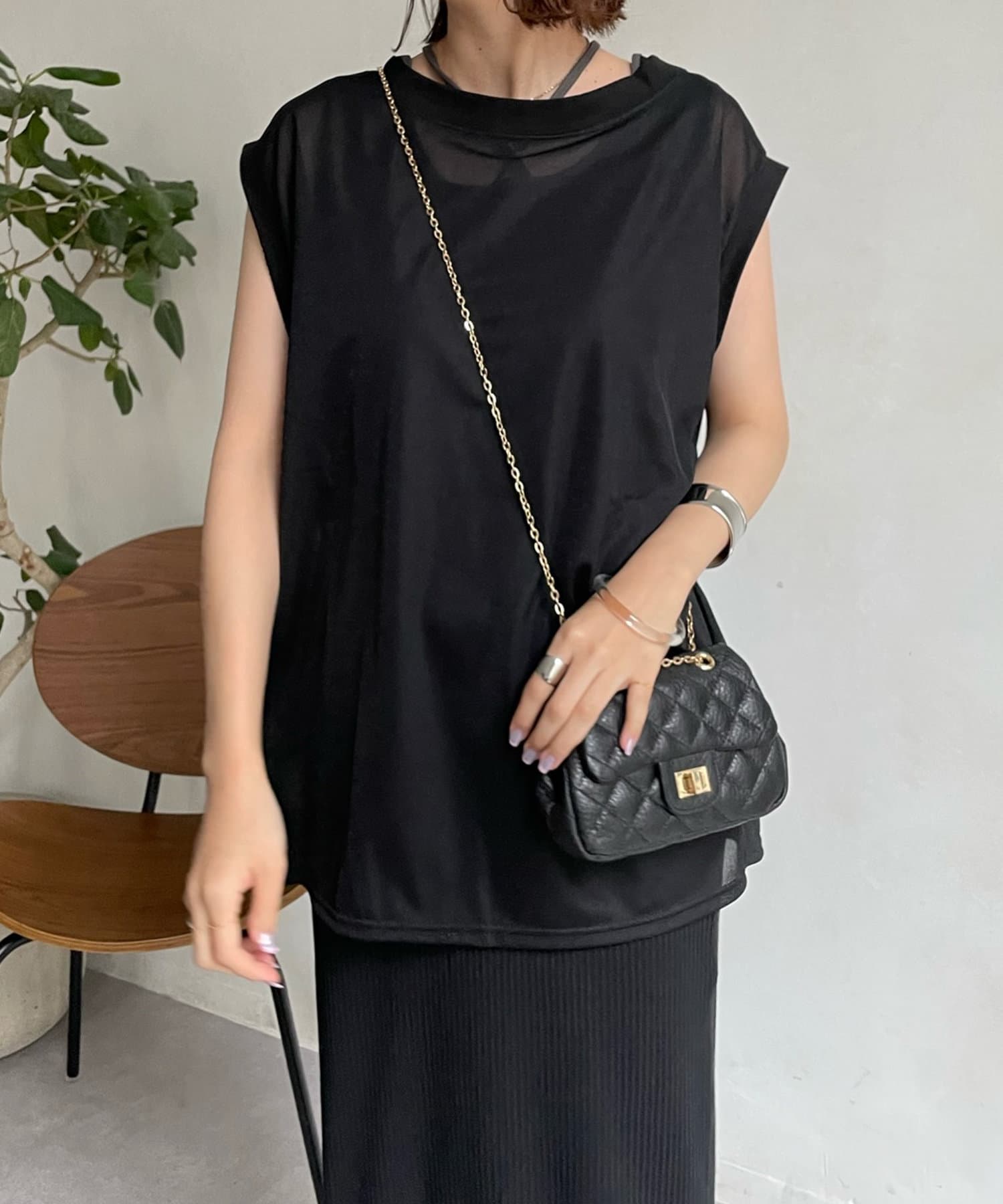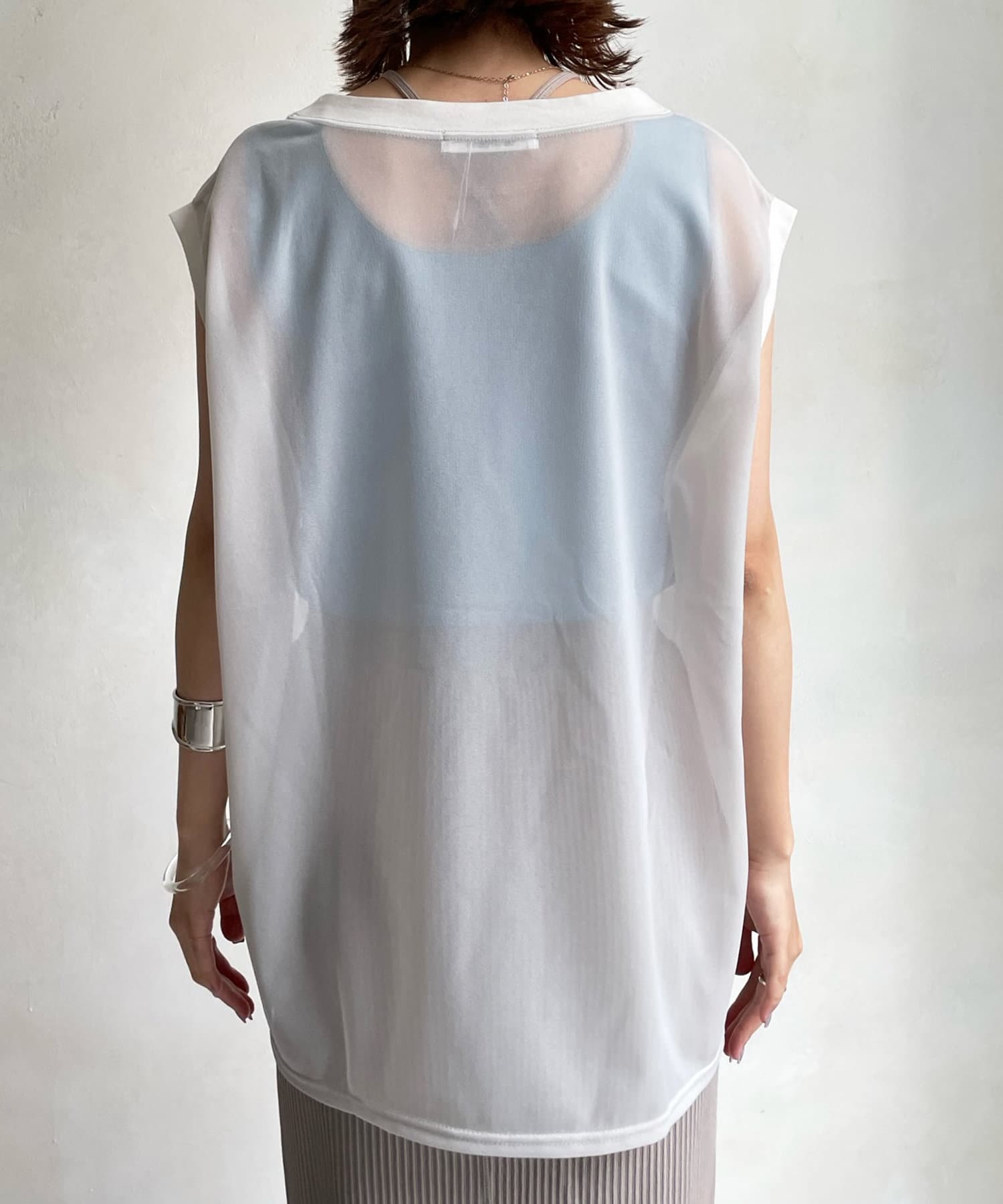 トップスはシアー素材で仕上げたフレンチtee。余裕感のあるサイジングで、抜け感たっぷりの印象を与えます。