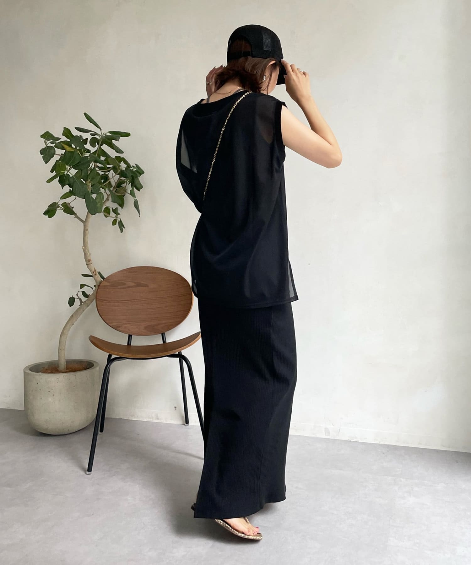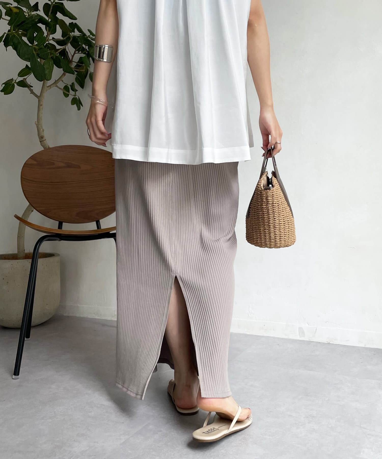 そして、Iラインシルエットのスカートは、バックスリットでデザイン性をプラス。