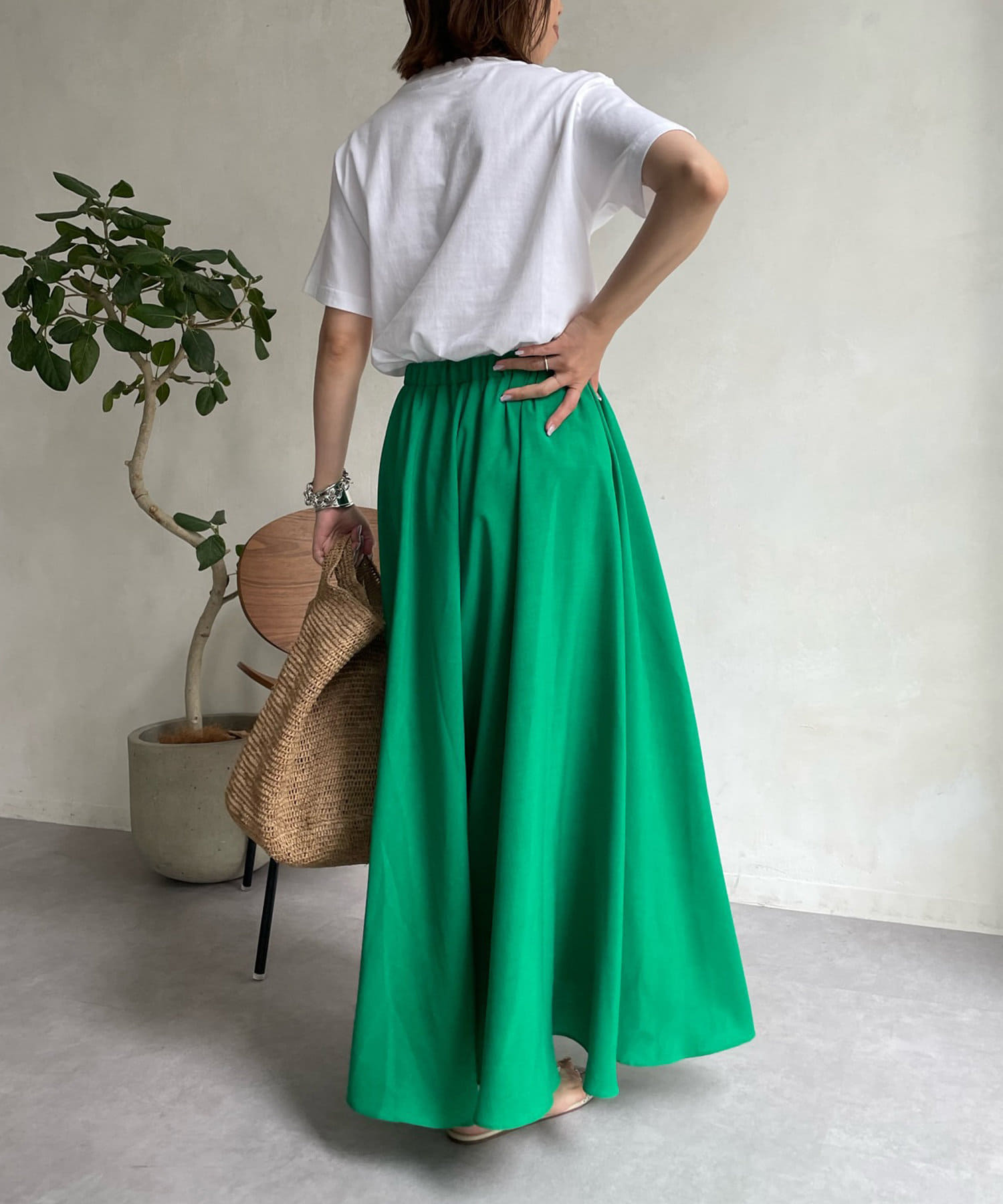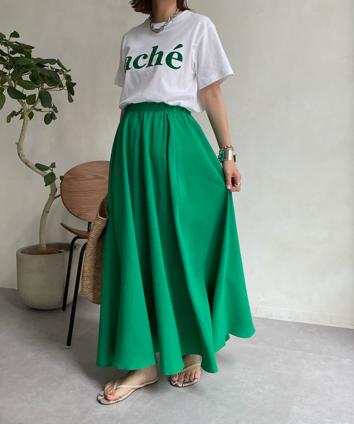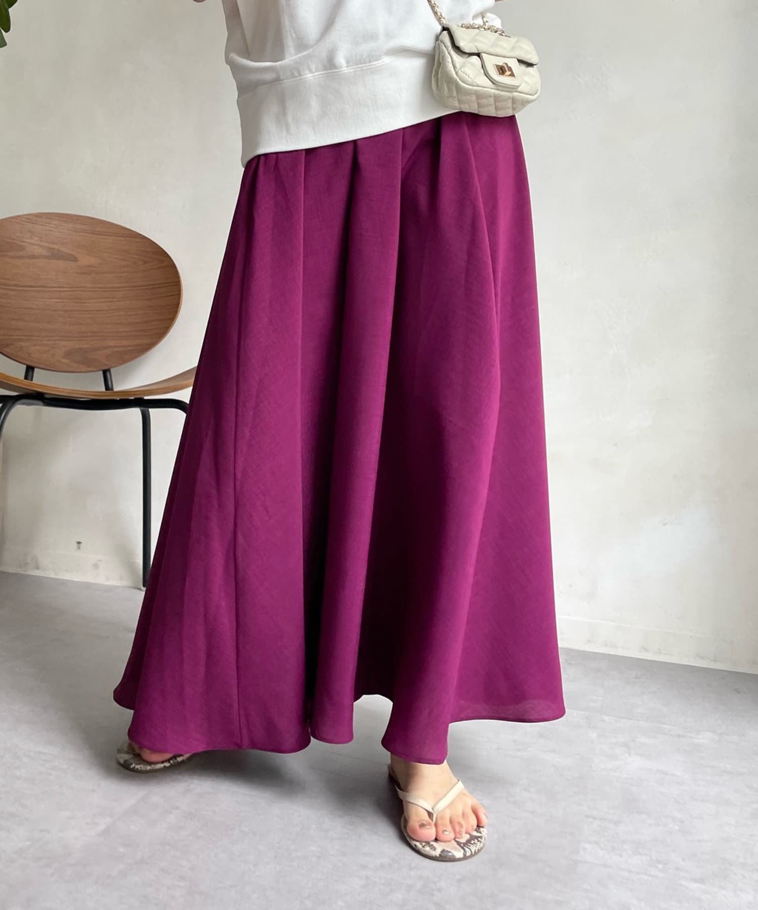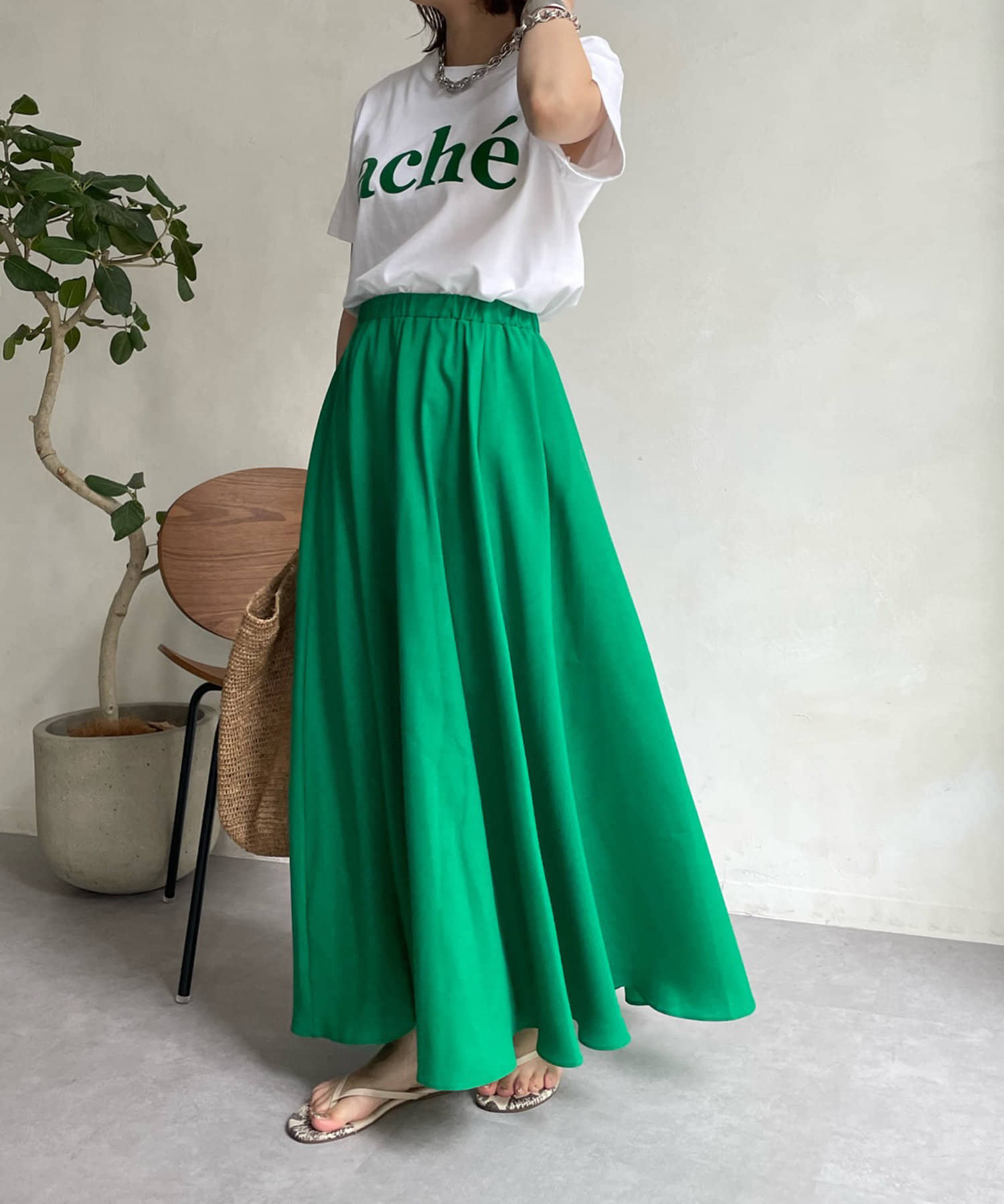 落ち感があり広がりすぎず、動くと揺れて動きがでる女性らしいシルエットがカジュアルなトップスと相性良く、大人カジュアルなスタイリングにピッタリなアイテムです!
