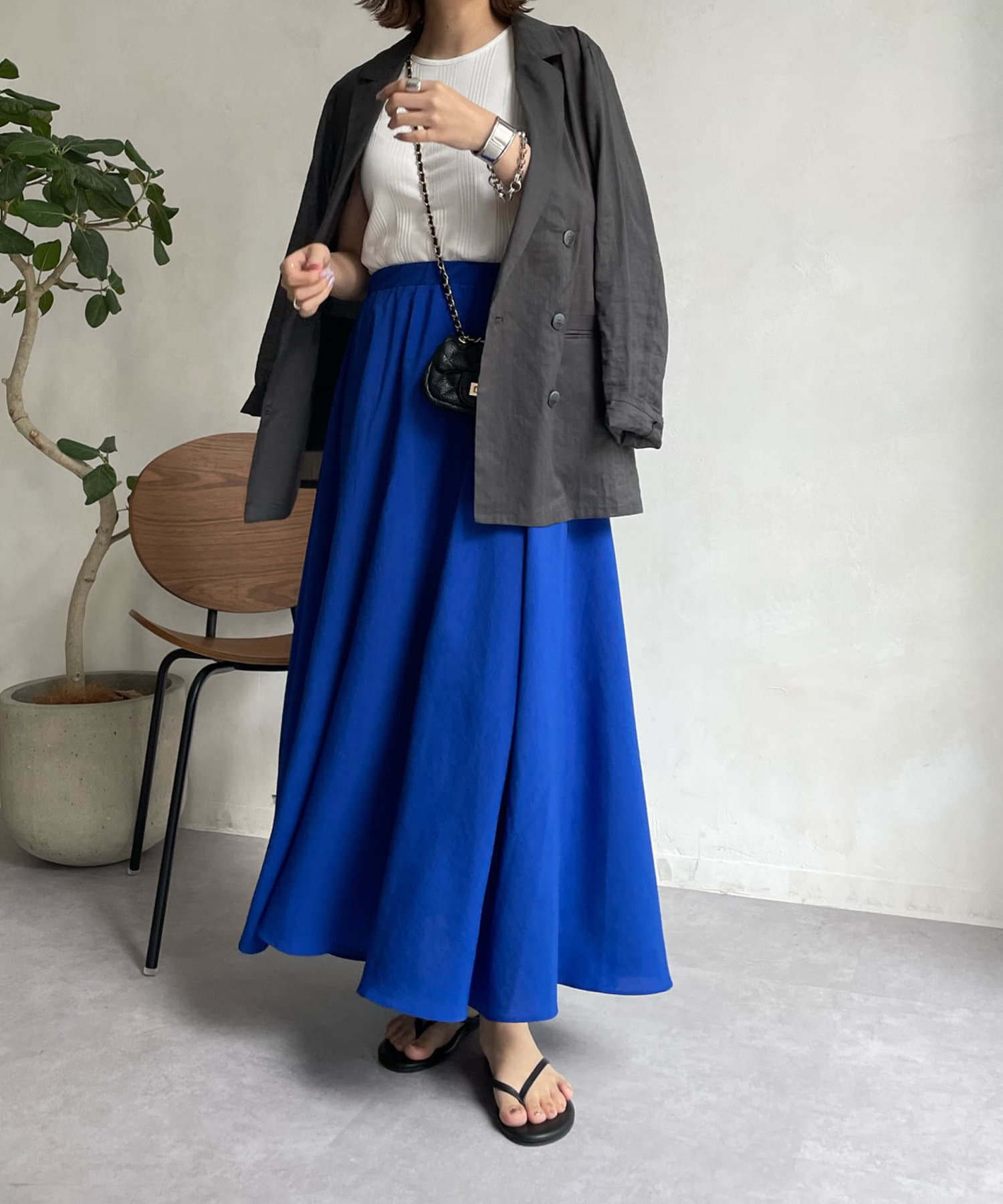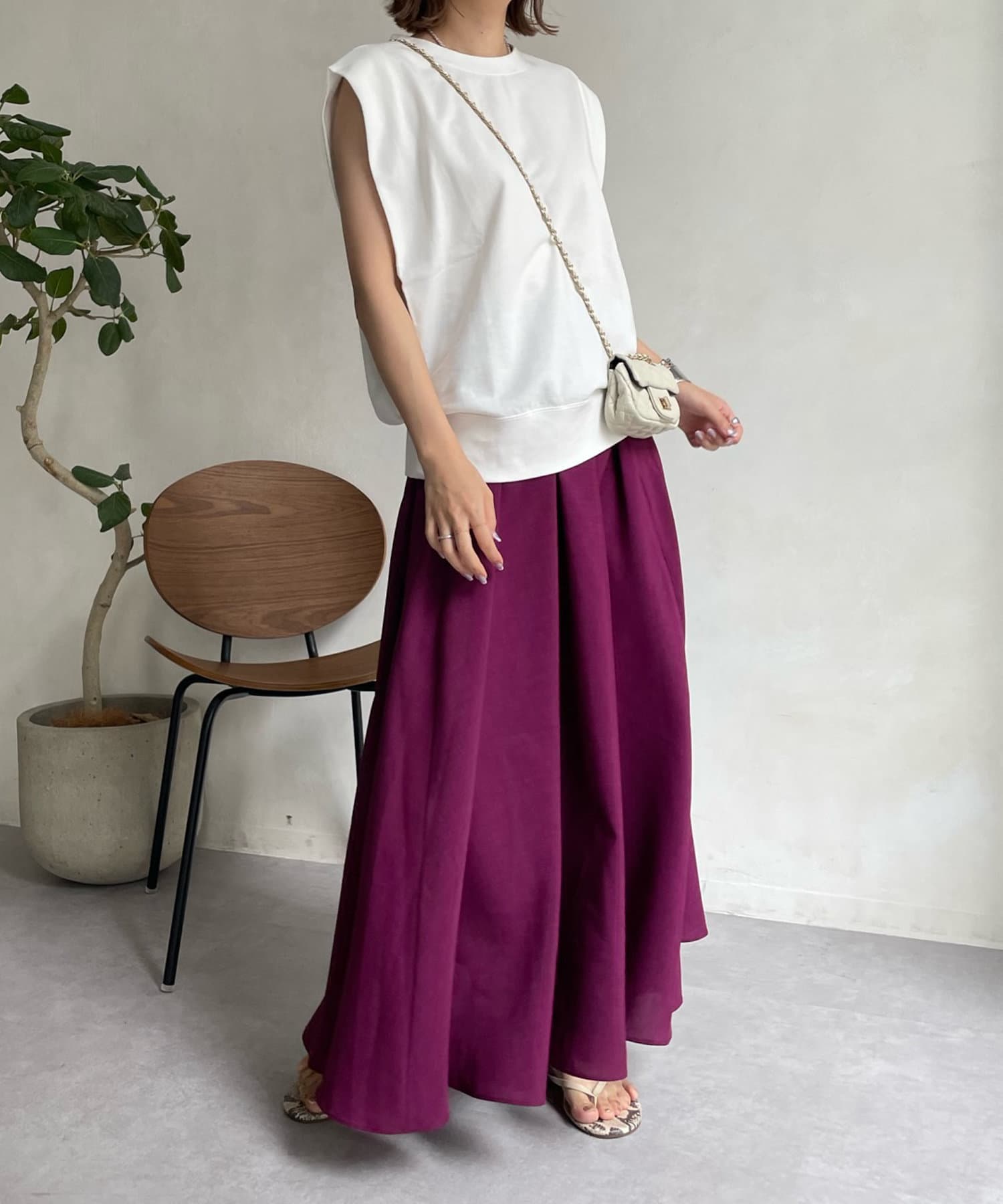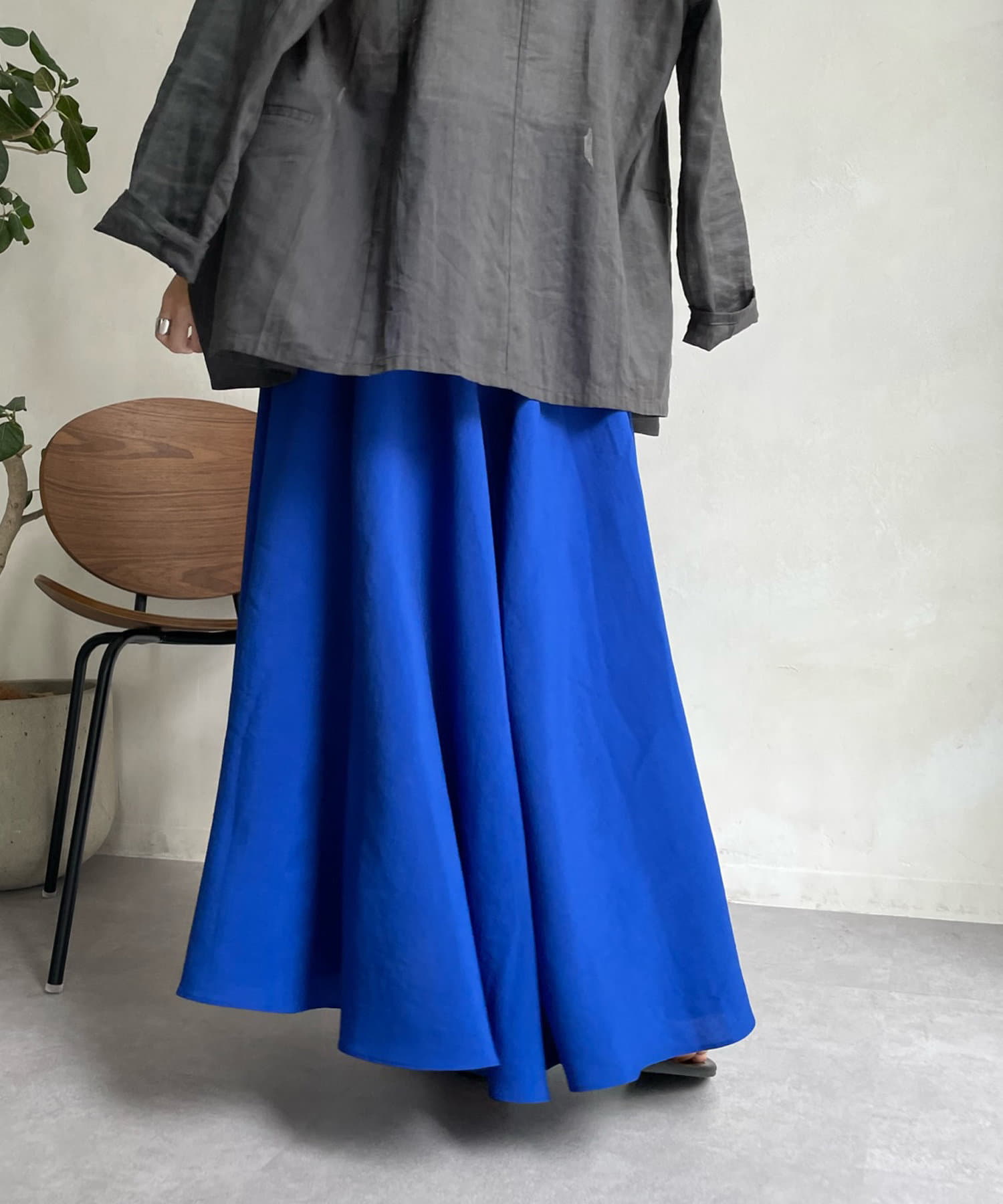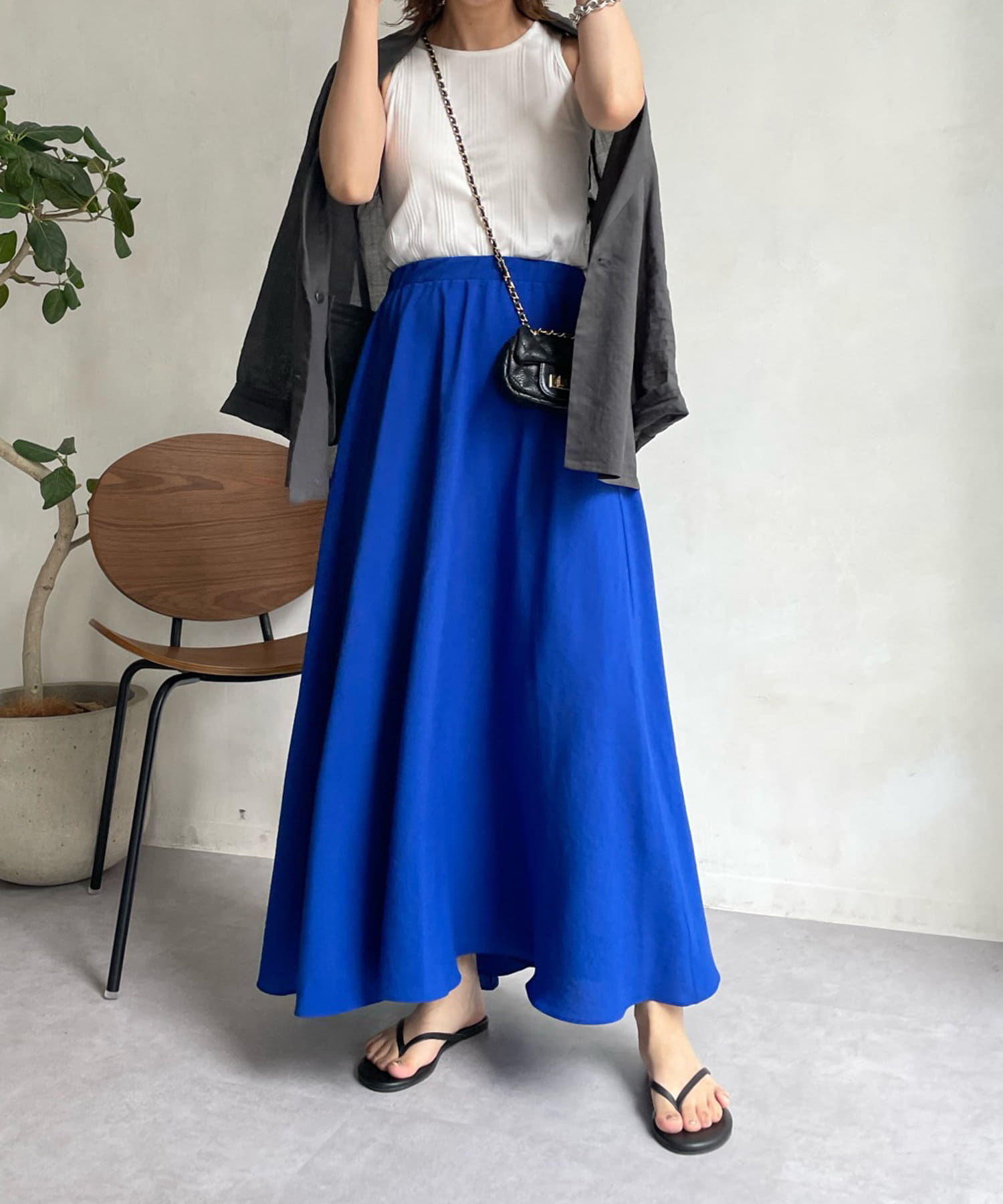 落ち感があり広がりすぎず、動くと揺れて動きがでる女性らしいシルエットがカジュアルなトップスと相性良く、大人カジュアルなスタイリングにピッタリなアイテムです!