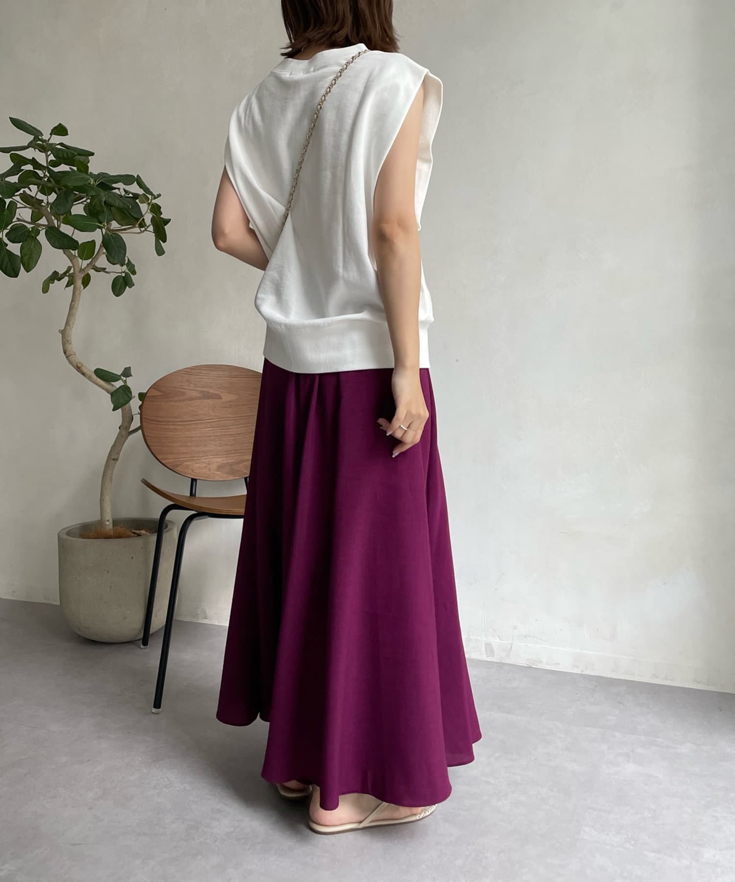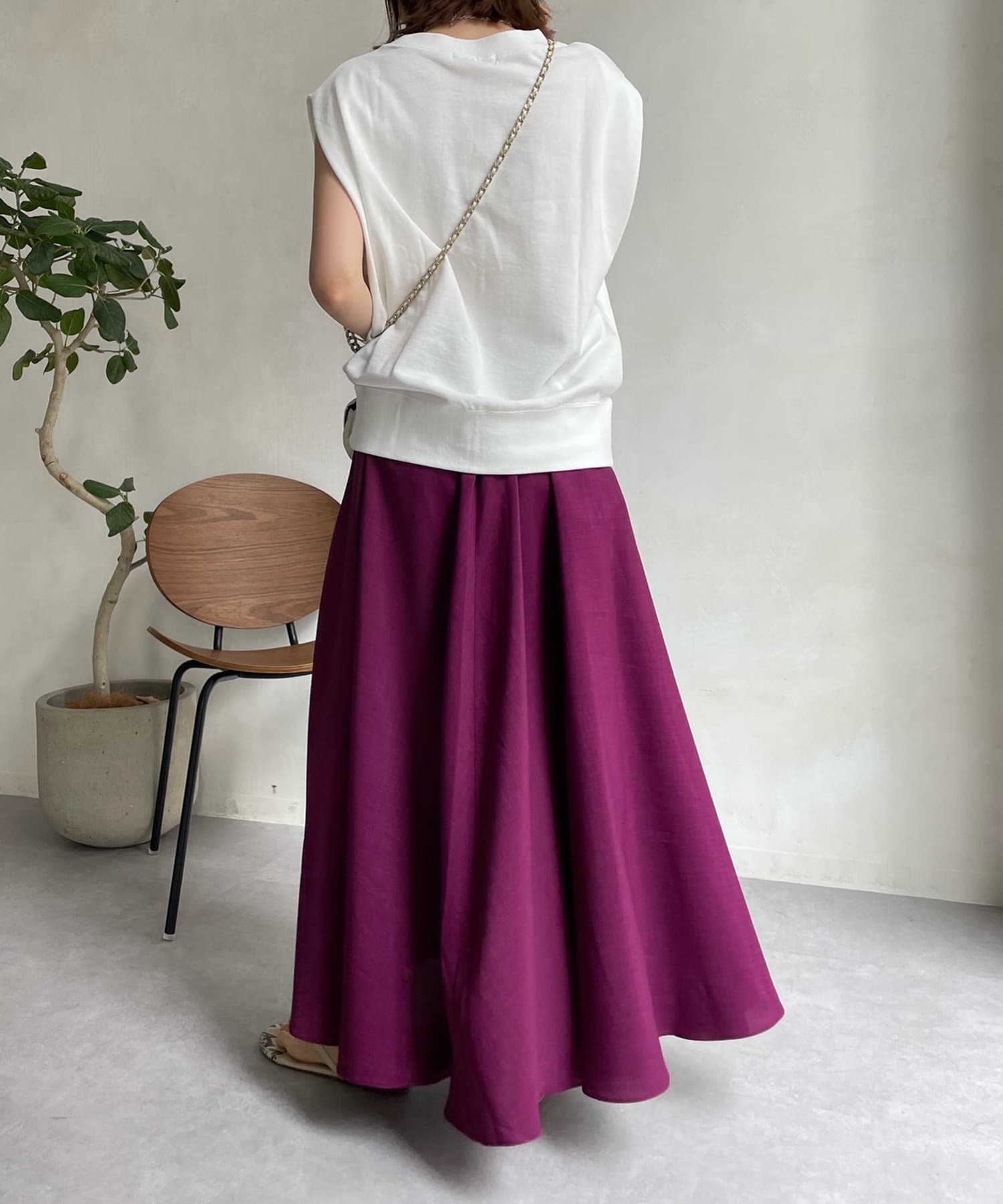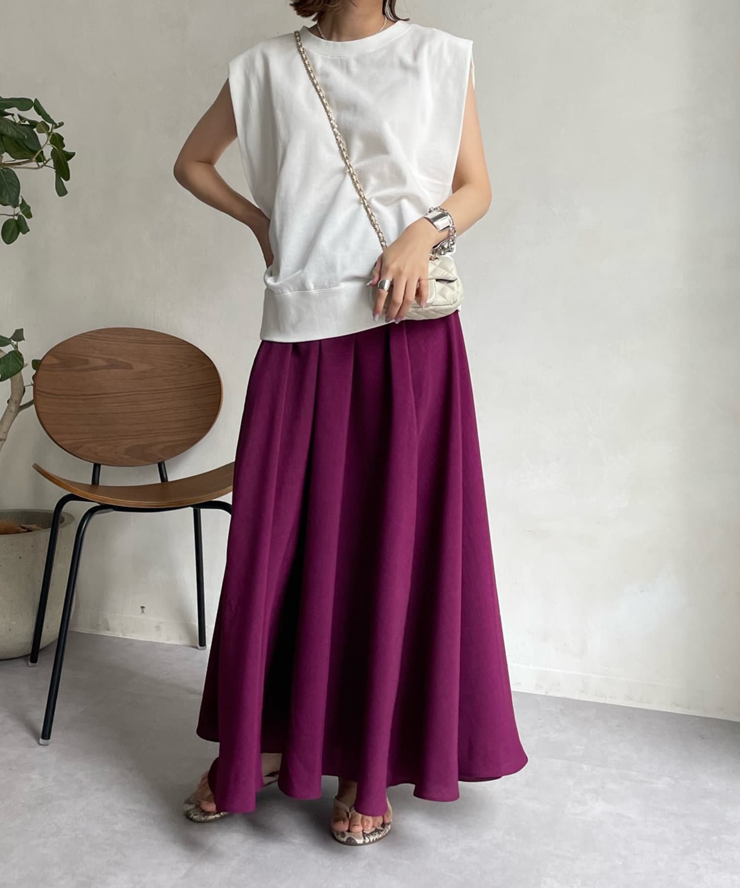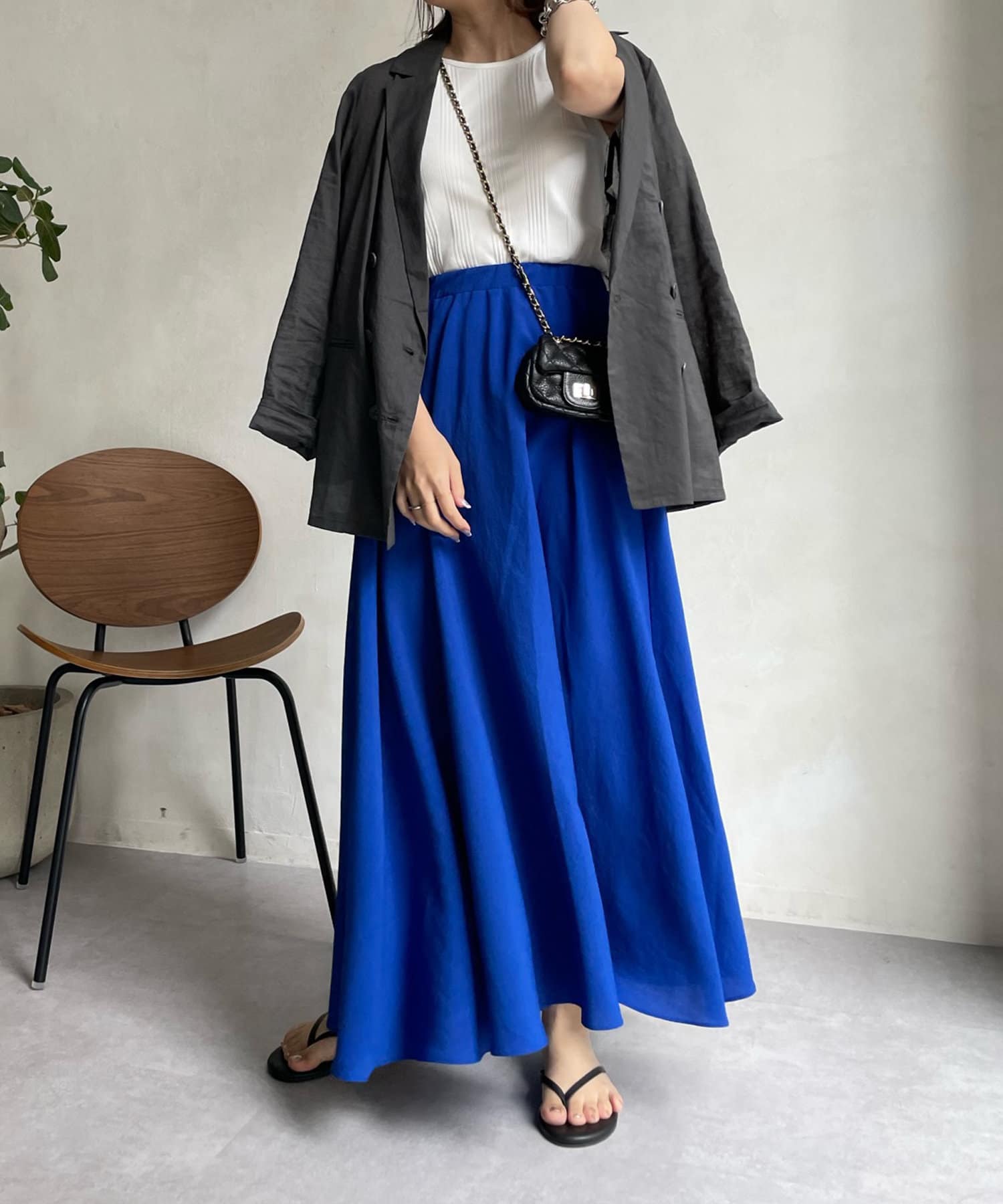 落ち感があり広がりすぎず、動くと揺れて動きがでる女性らしいシルエットがカジュアルなトップスと相性良く、大人カジュアルなスタイリングにピッタリなアイテムです!