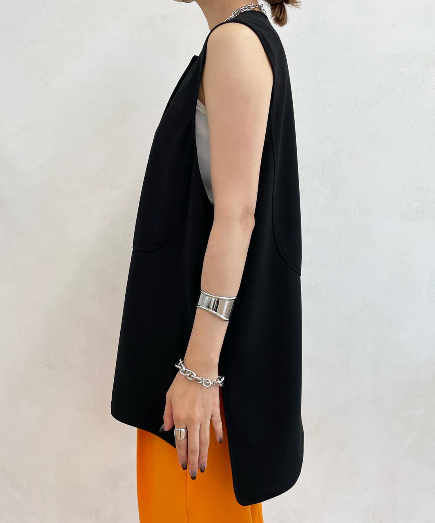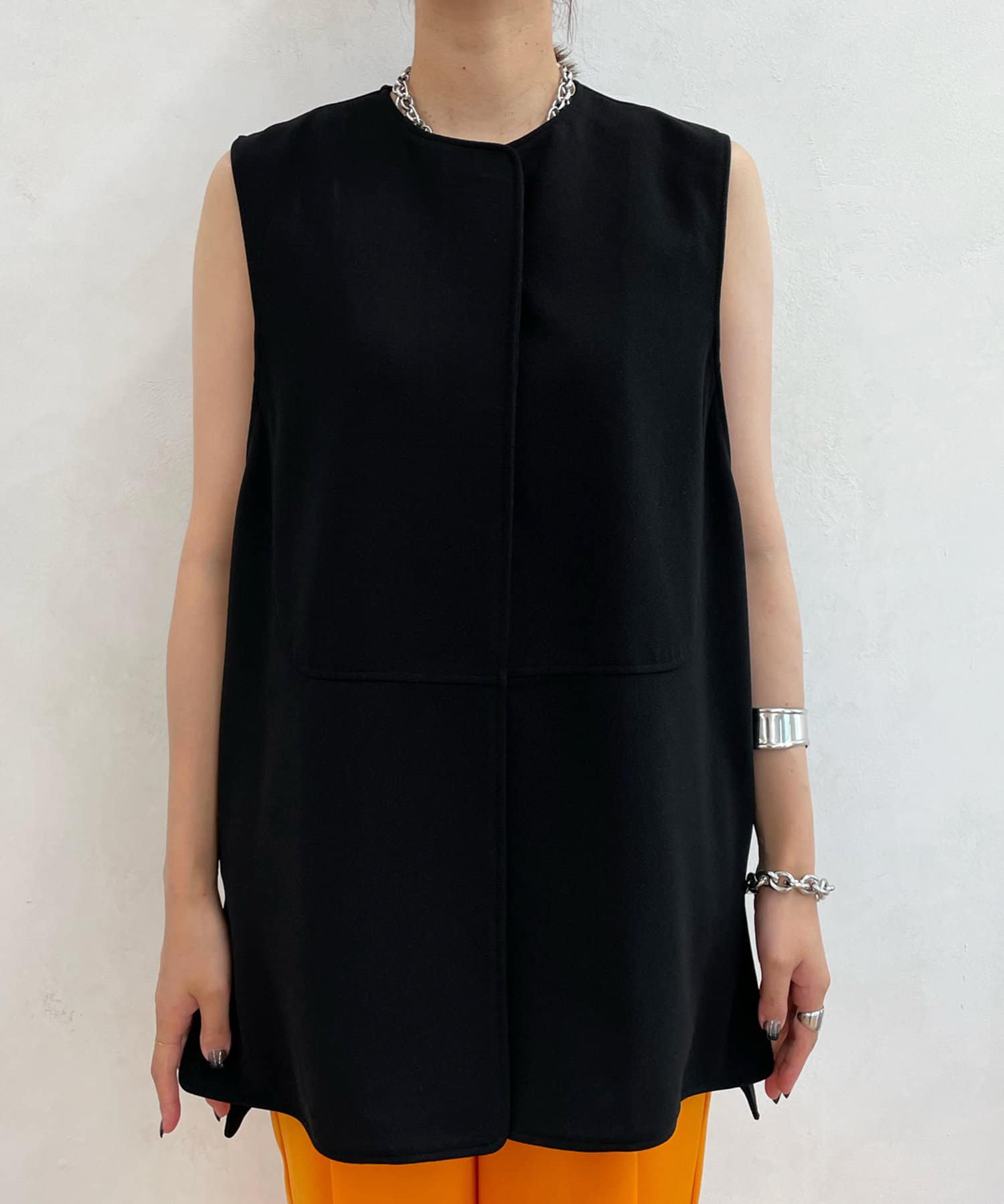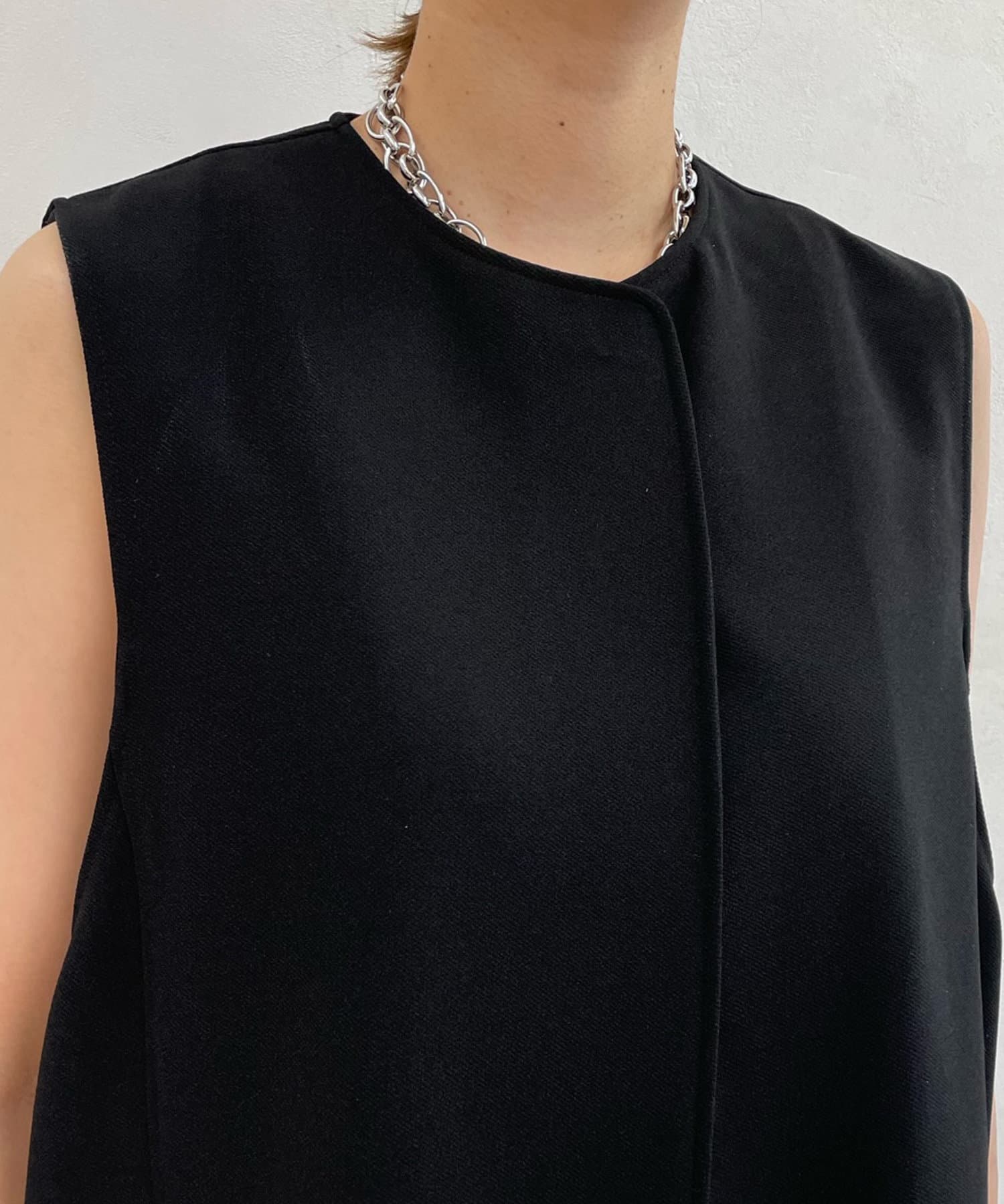 ノーカラーラウンドネックベスト