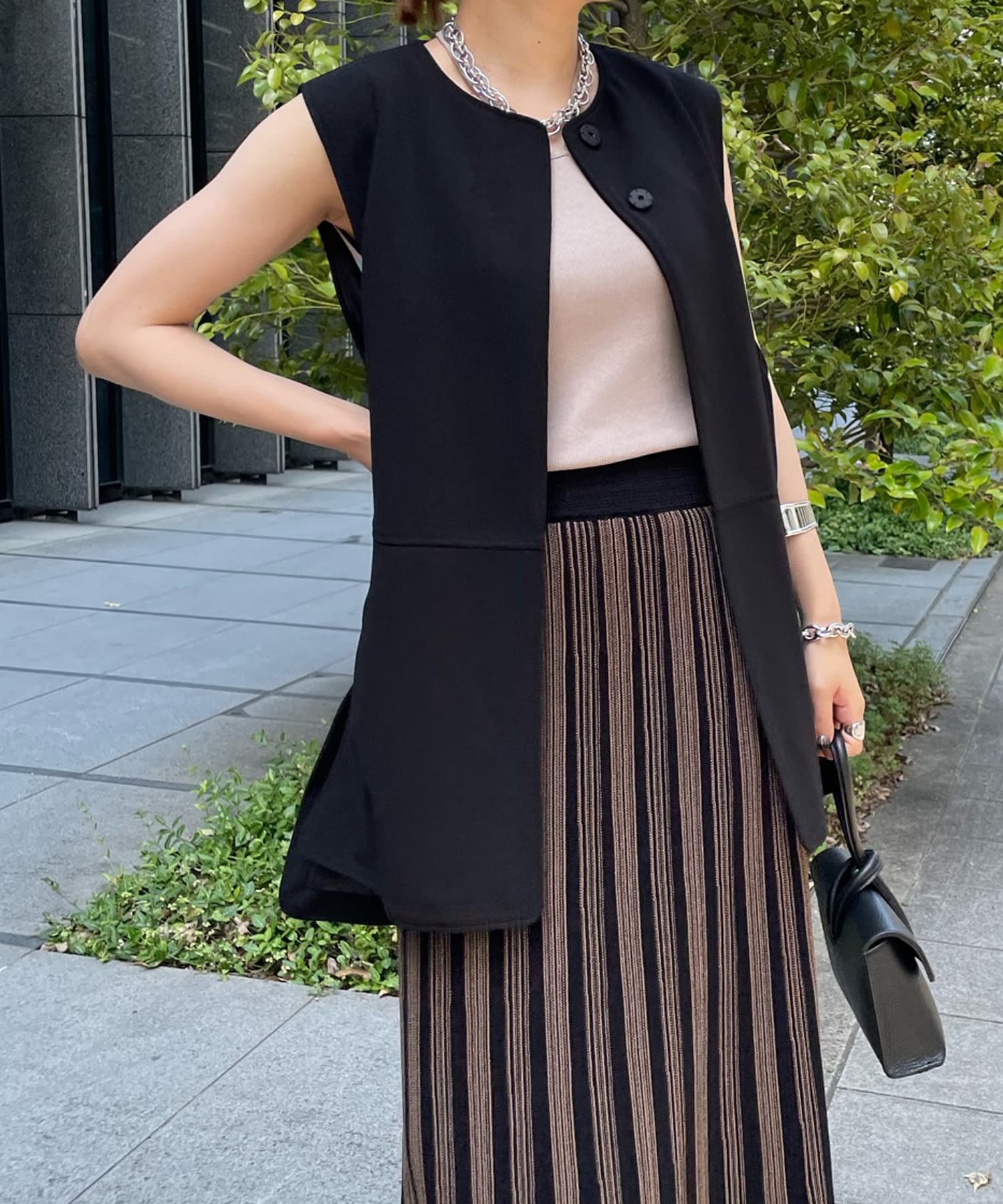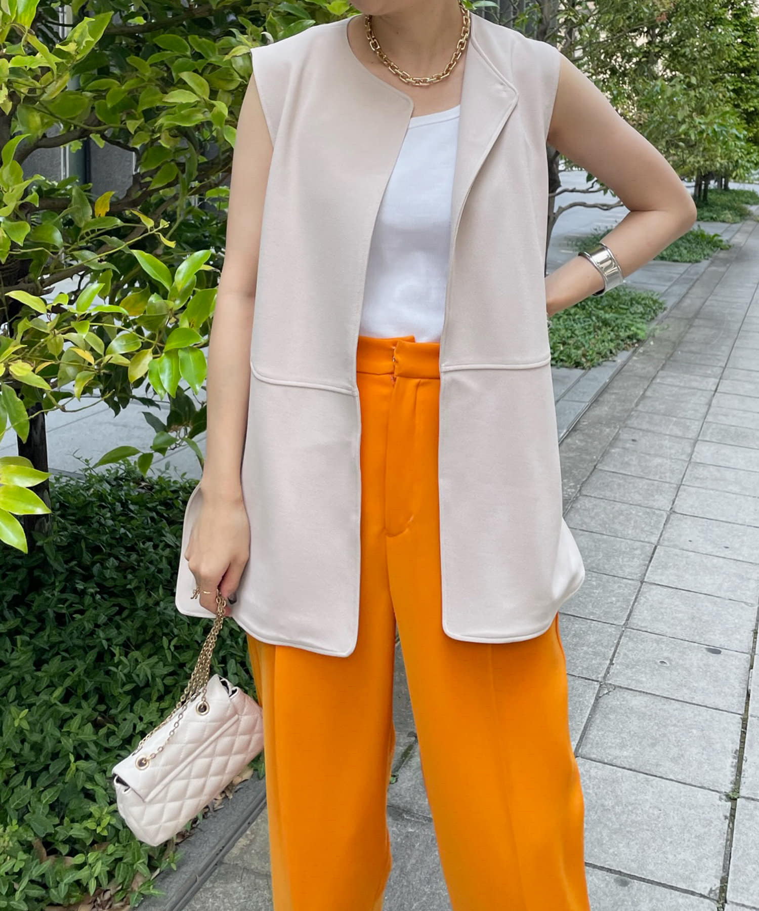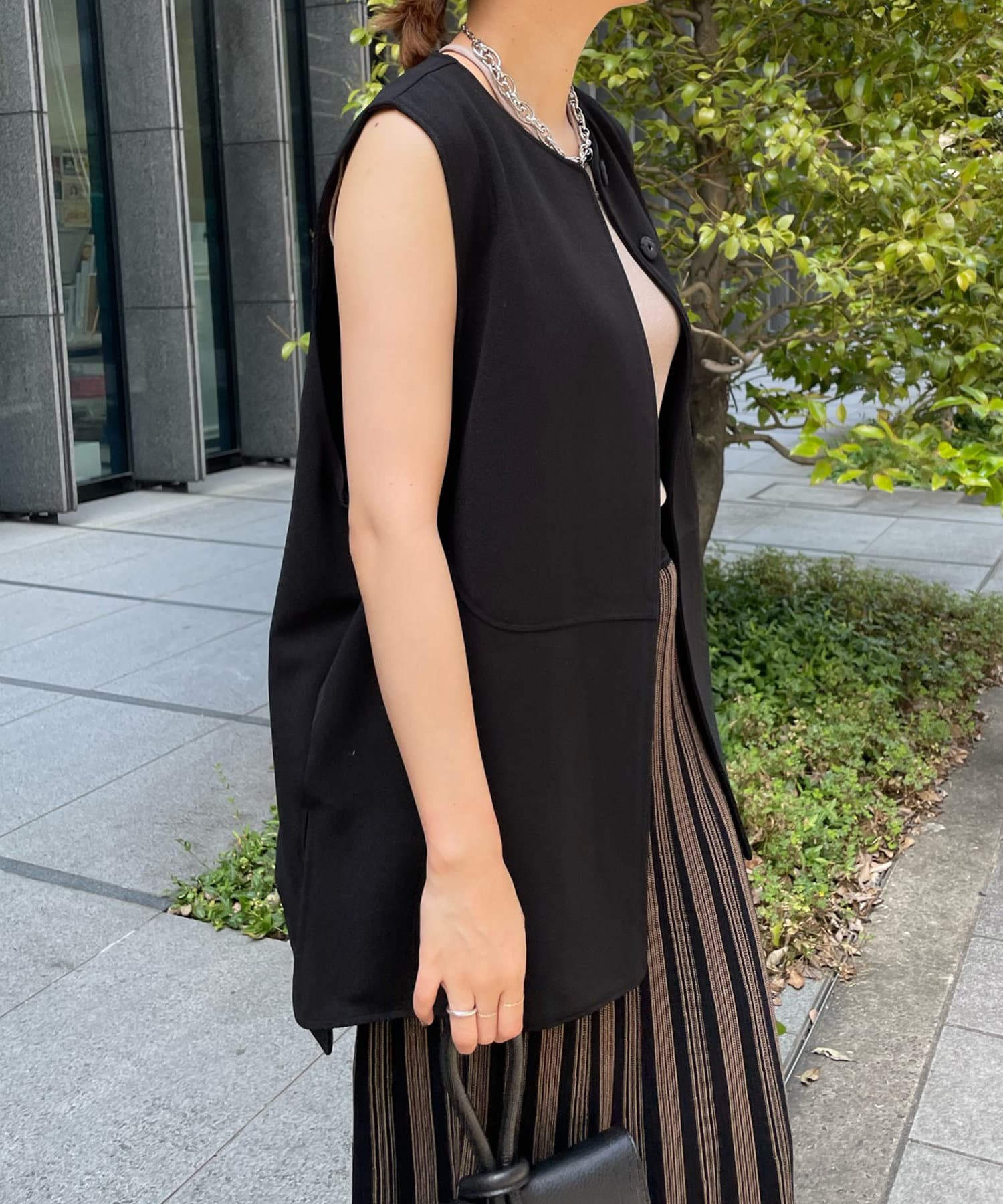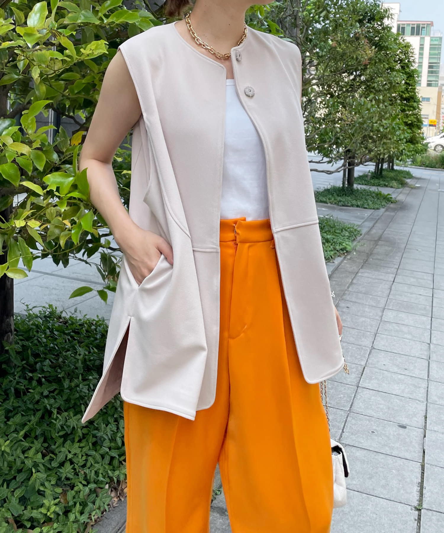 ノーカラーラウンドネックベスト