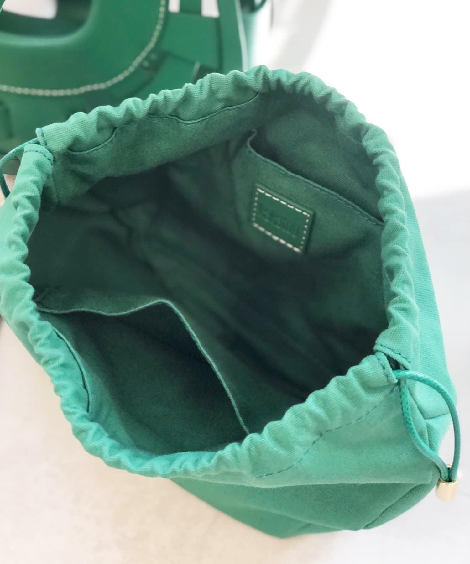 同色の巾着ポーチがセットになっているので、編地から中身が透けるのも気にする必要ありません。