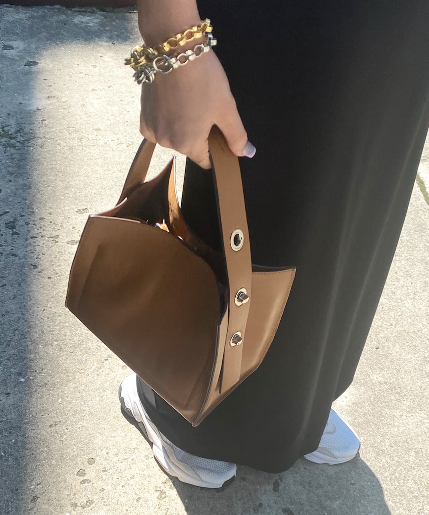 金具の存在感がぴりっとアクセントになってくれる、トレンドライクなBOX型バッグ。