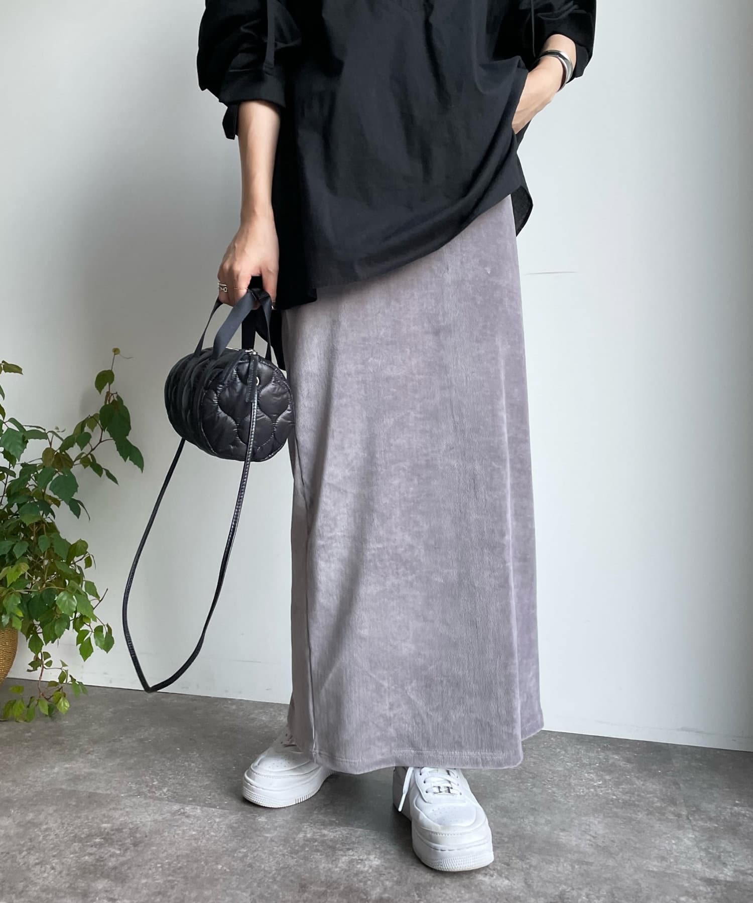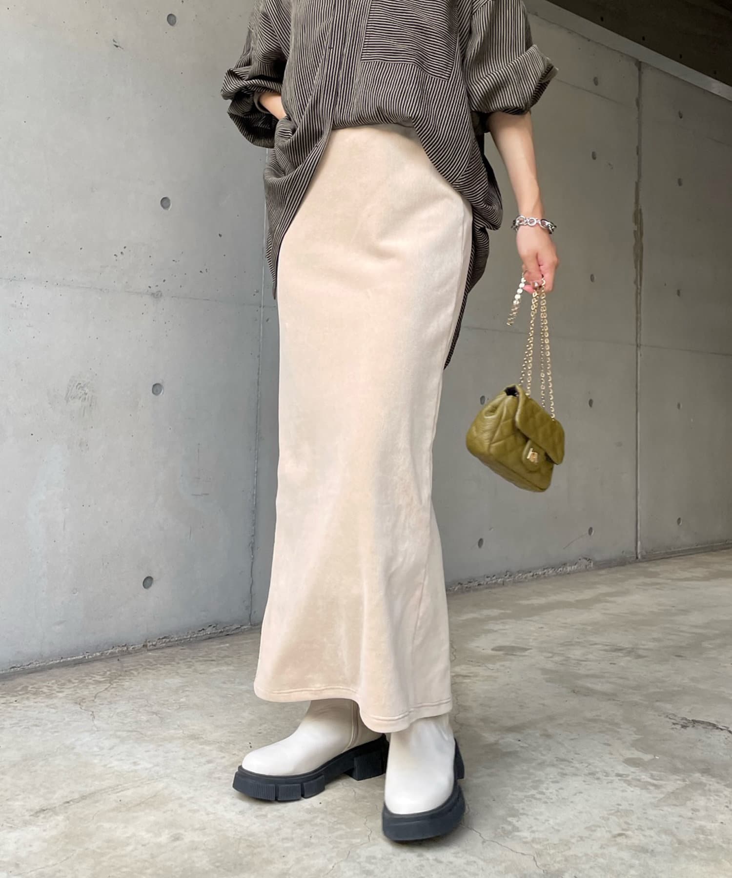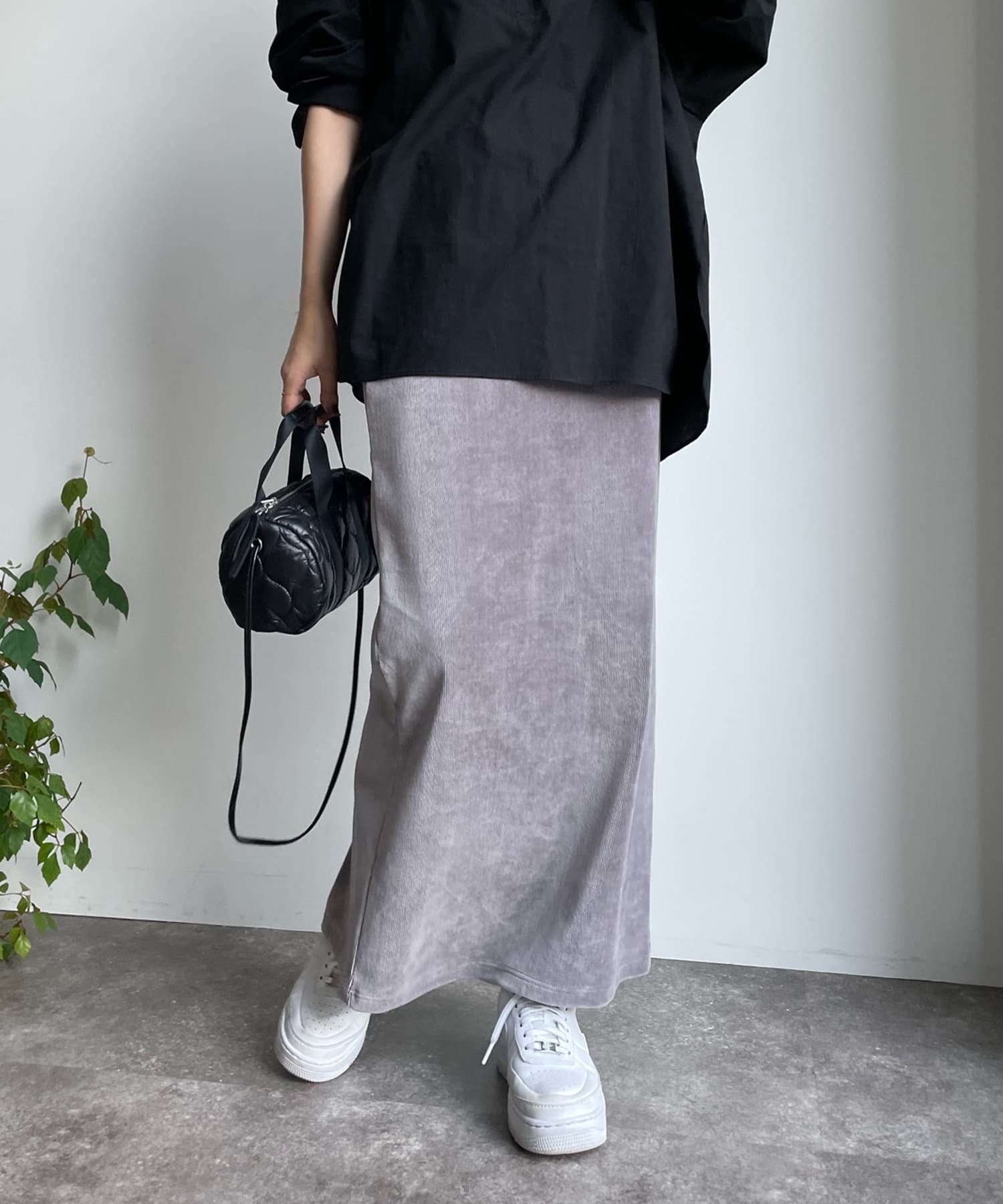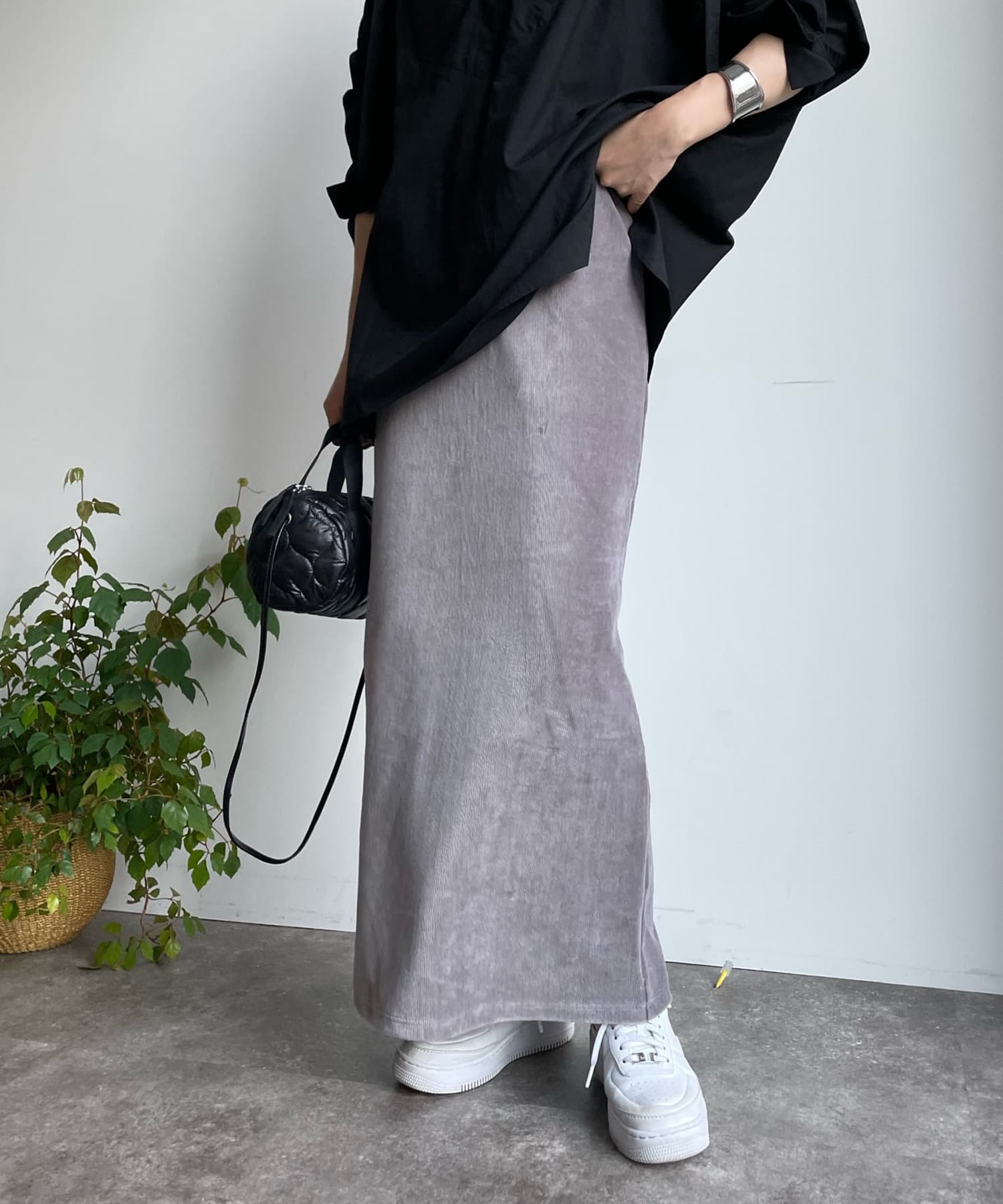 畝の細いコーデュロイを採用し、きれい見えしながらシーズンムードをぐっと高めてくれるスカート。