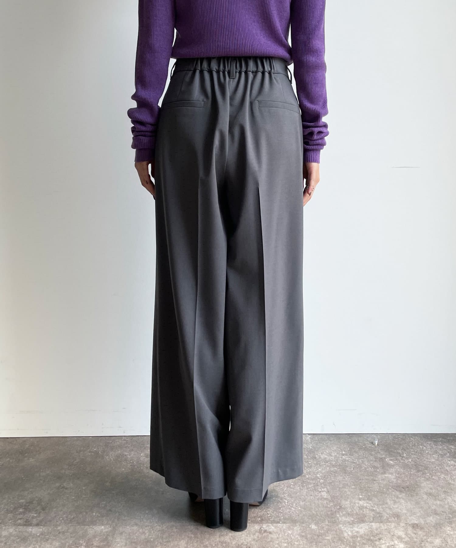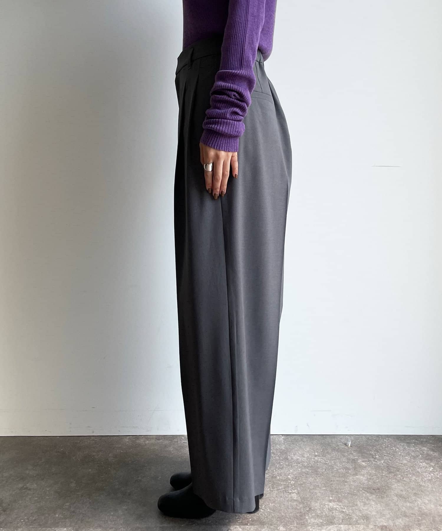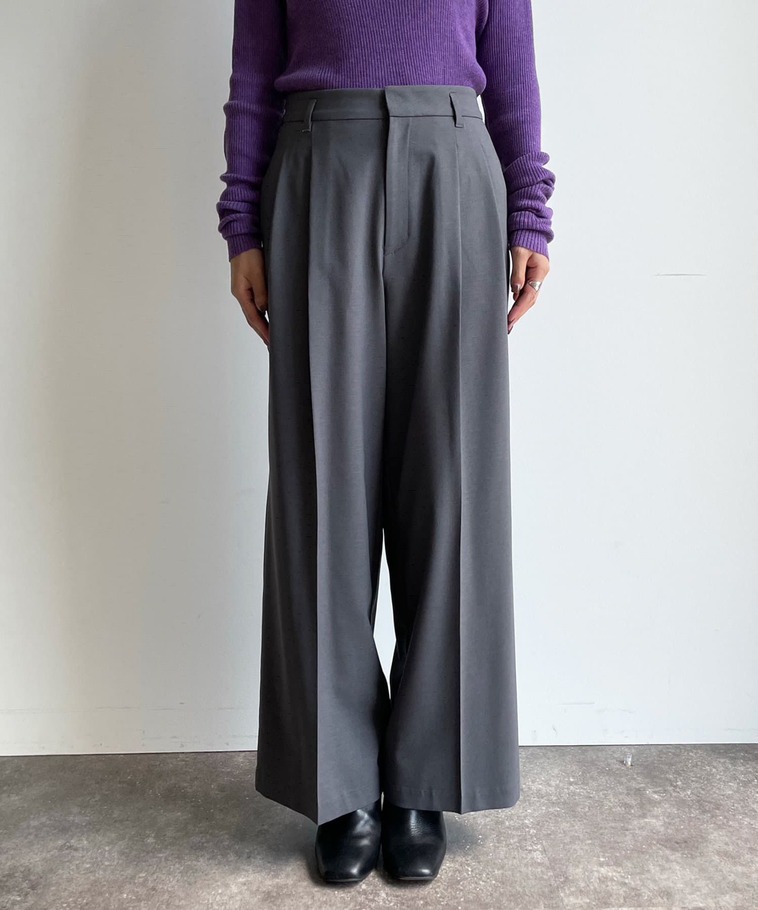 タックとセンタープレスを施すことで、ワイドシルエットながらもきれいな印象を与えてくれます。