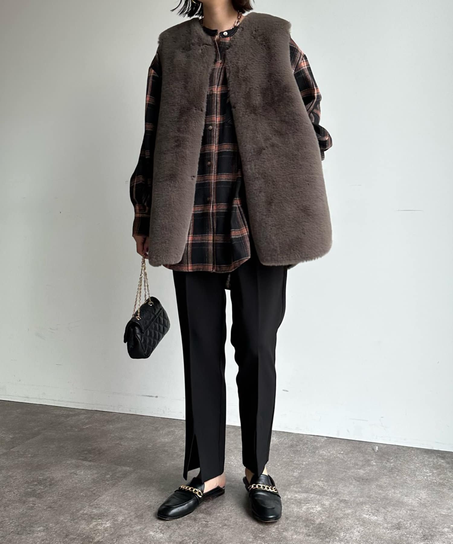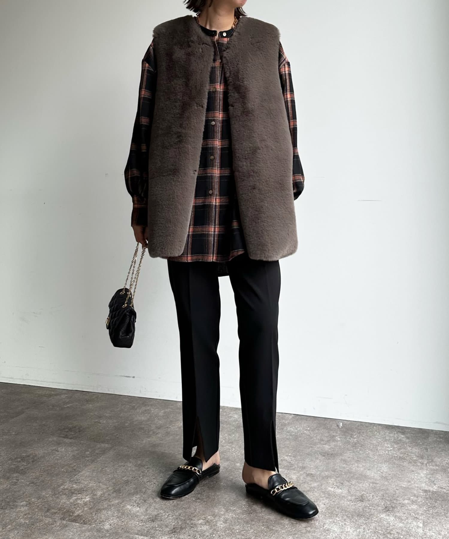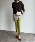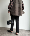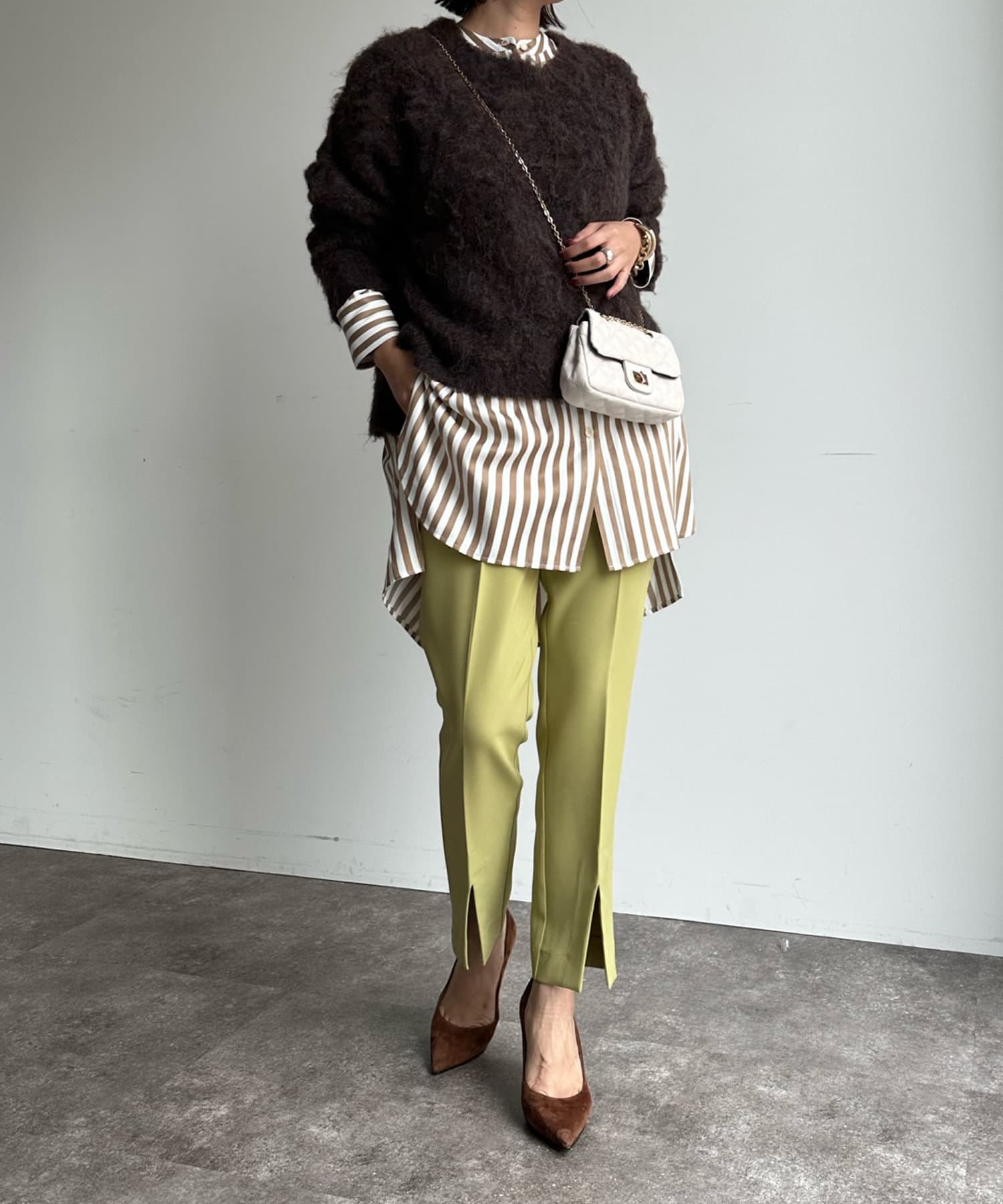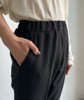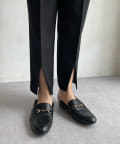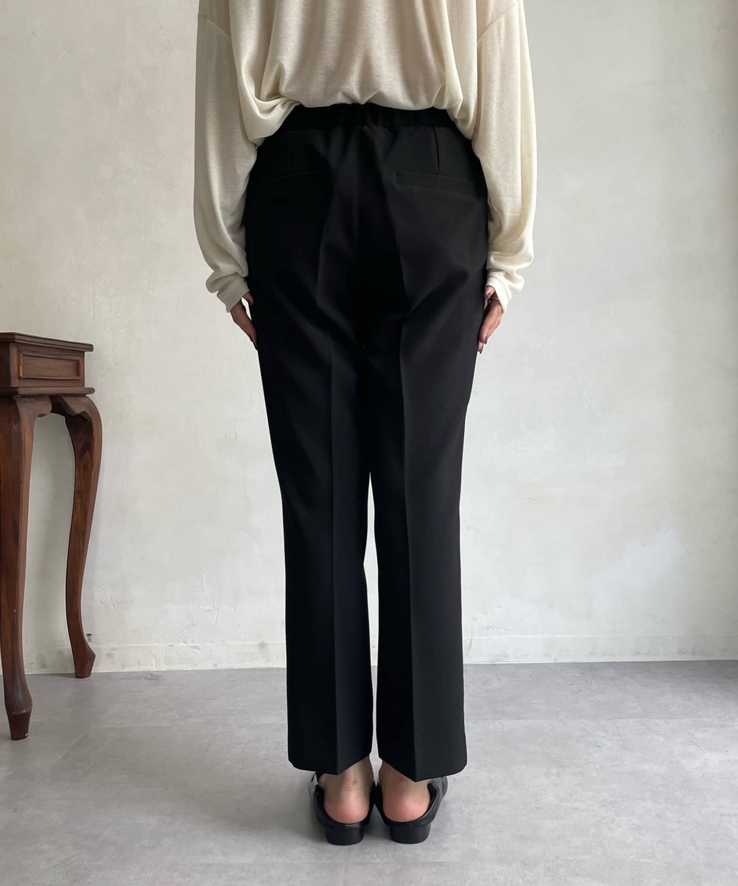 センタープレスと裾のスリットが脚のラインを強調し、足首をすっきりと見せてくれるパンツ。