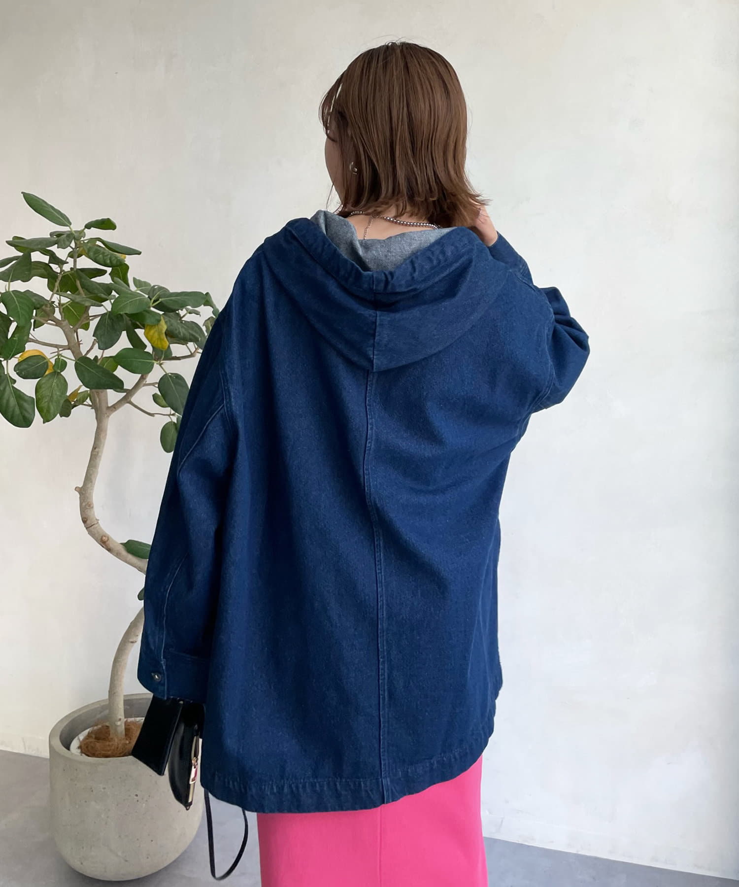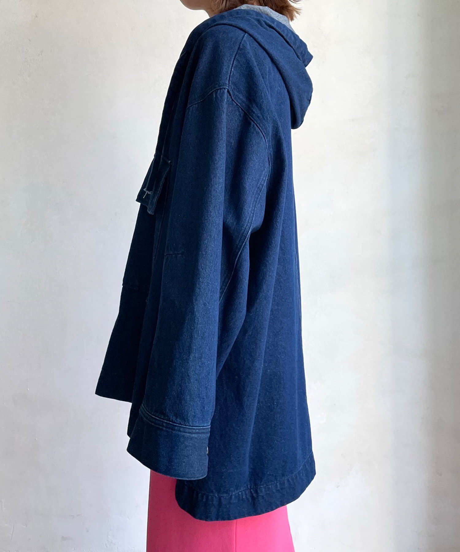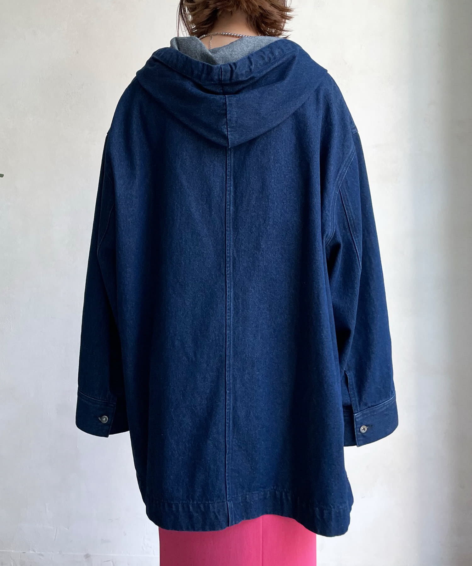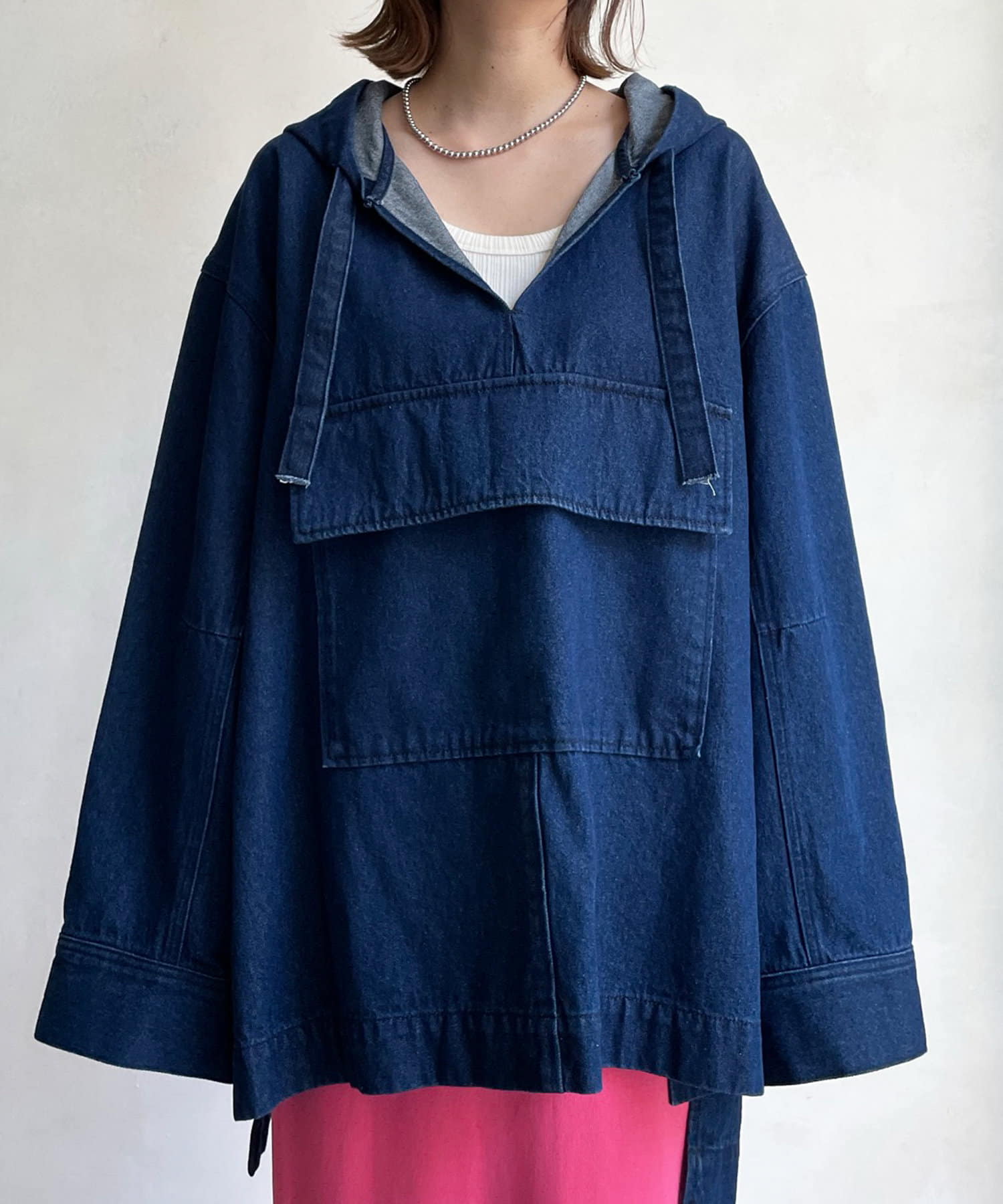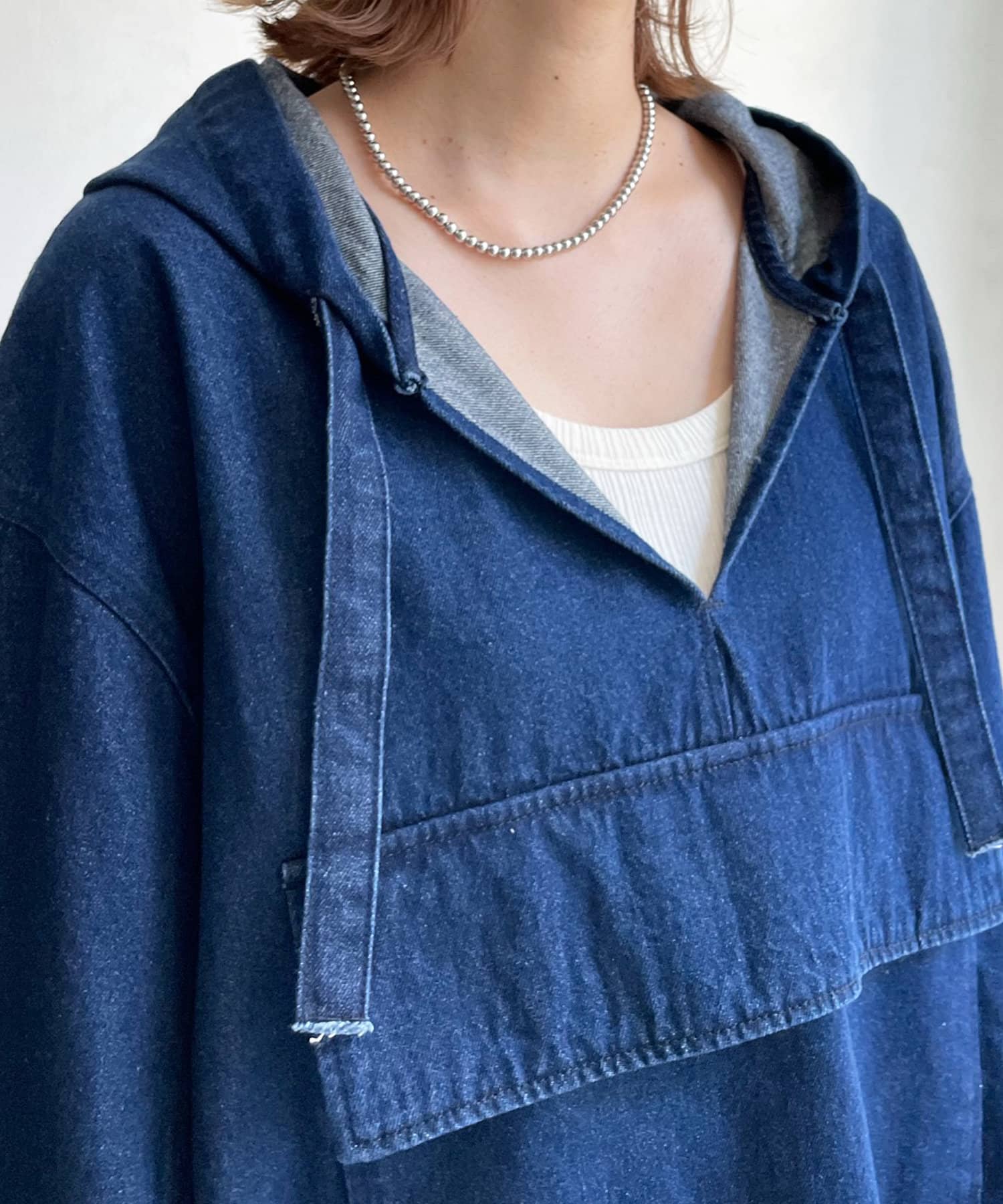 ラフな印象で着られるサイジングとデニムの素材が魅力のアノラック。