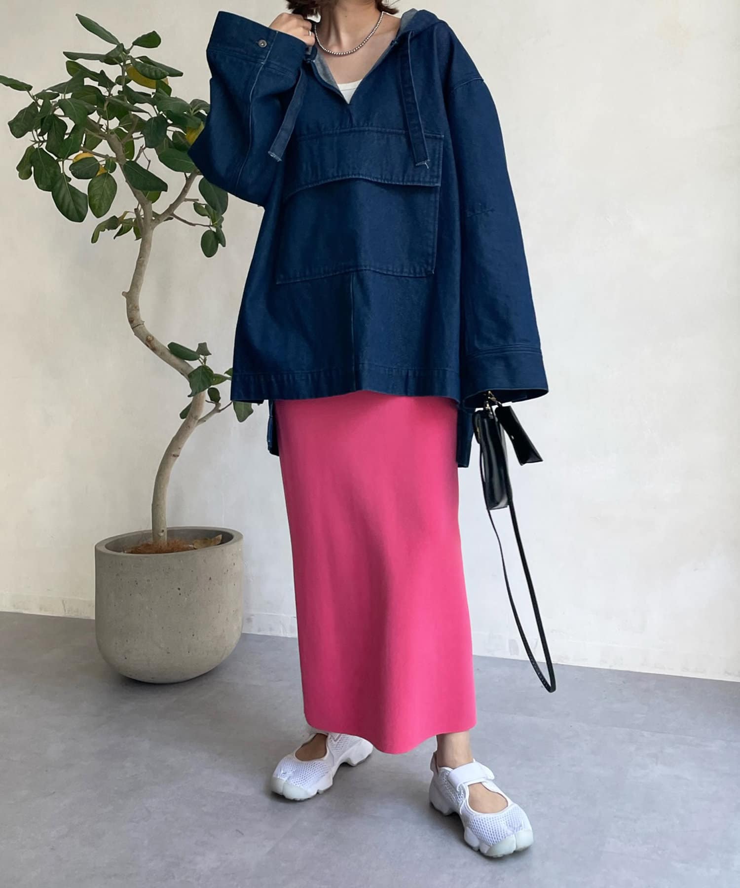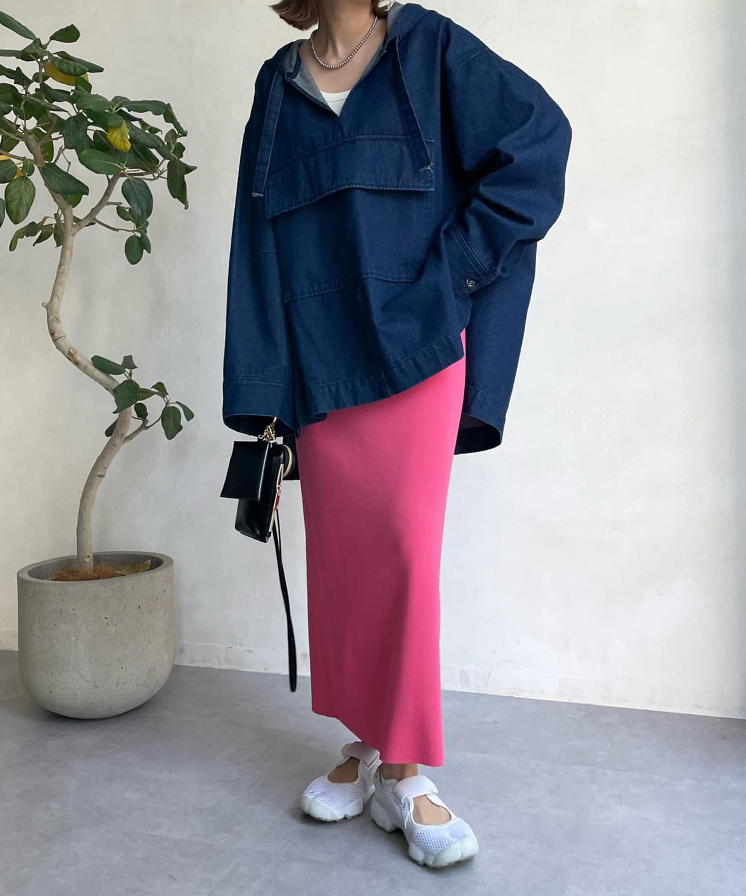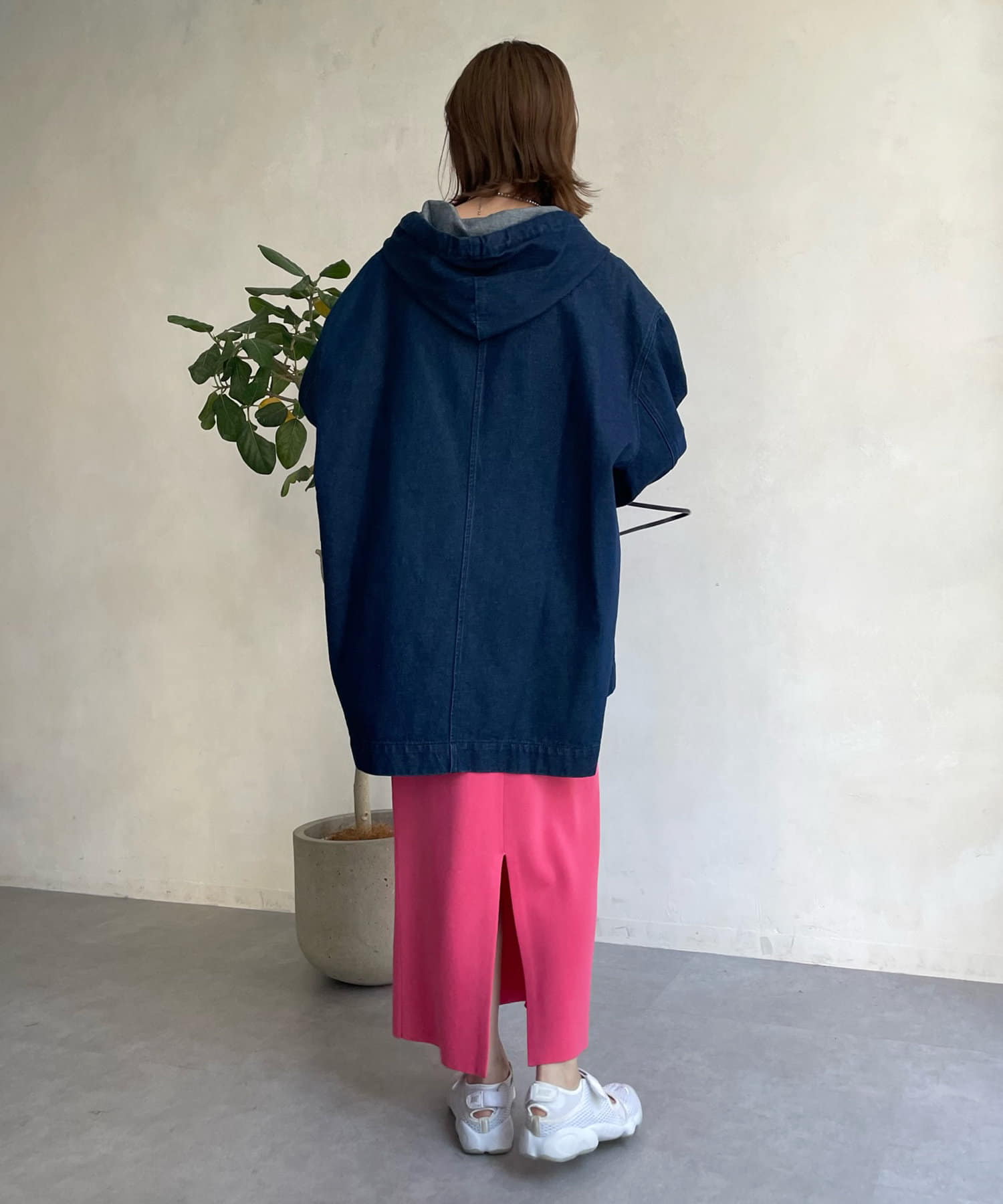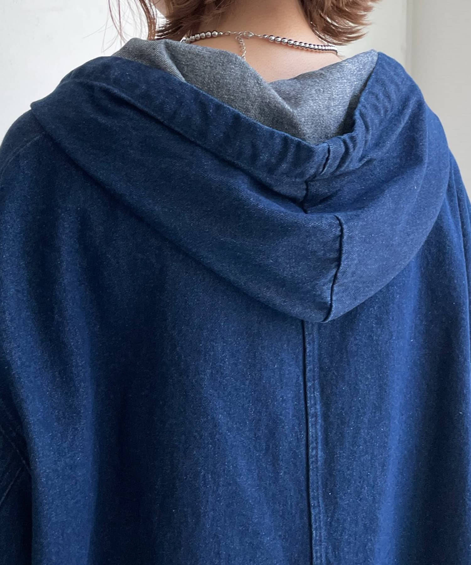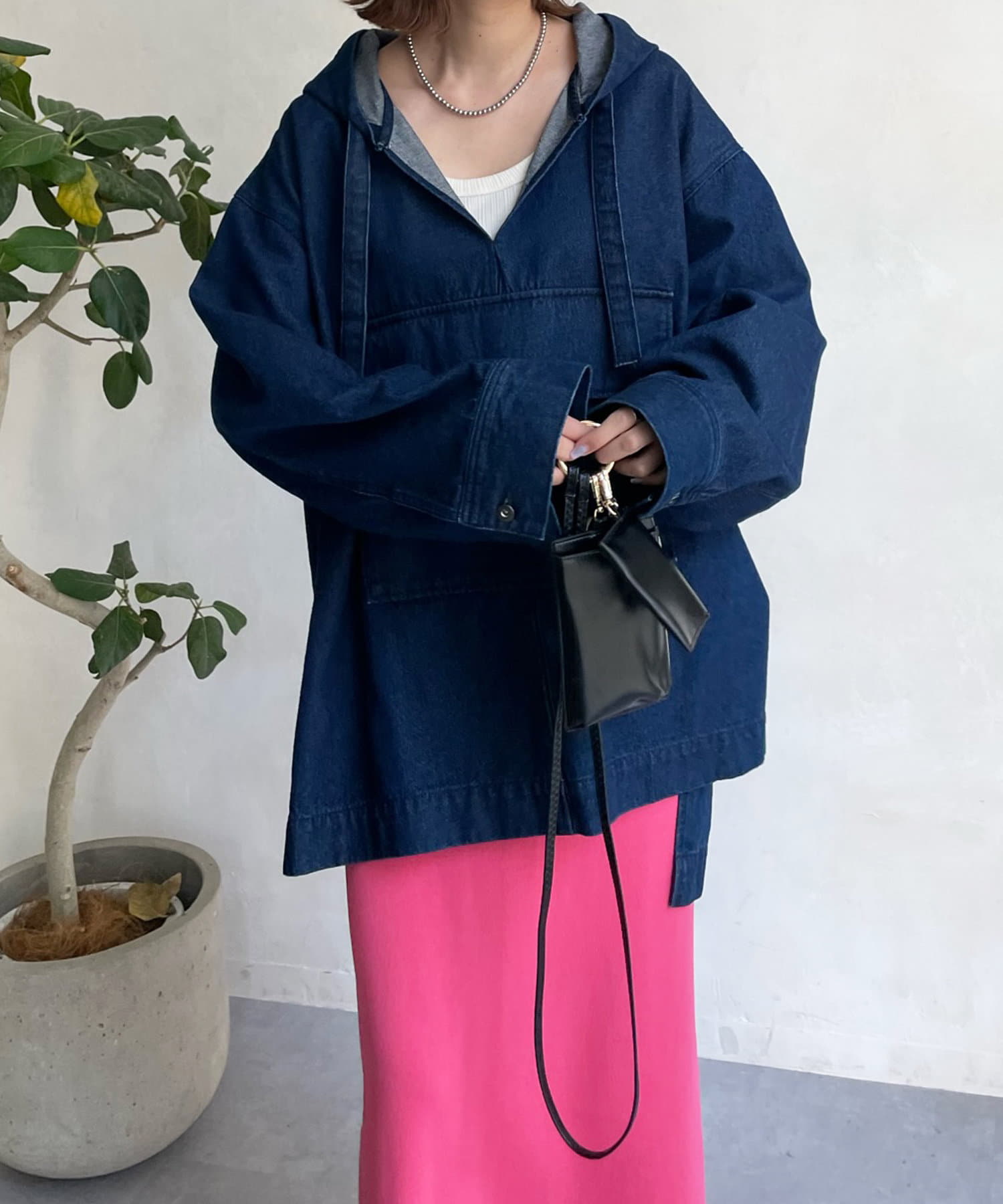 ラフな印象で着られるサイジングとデニムの素材が魅力のアノラック。