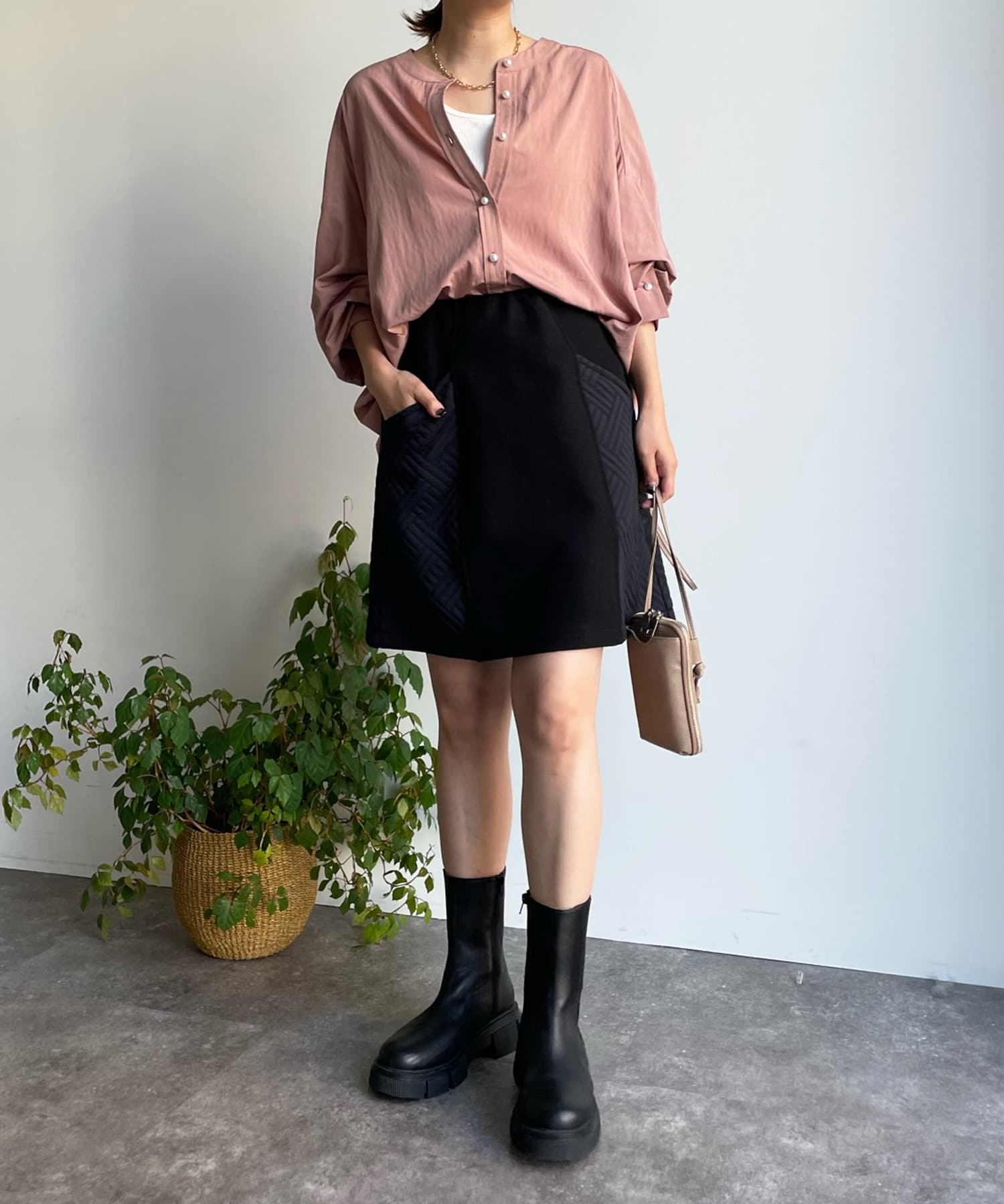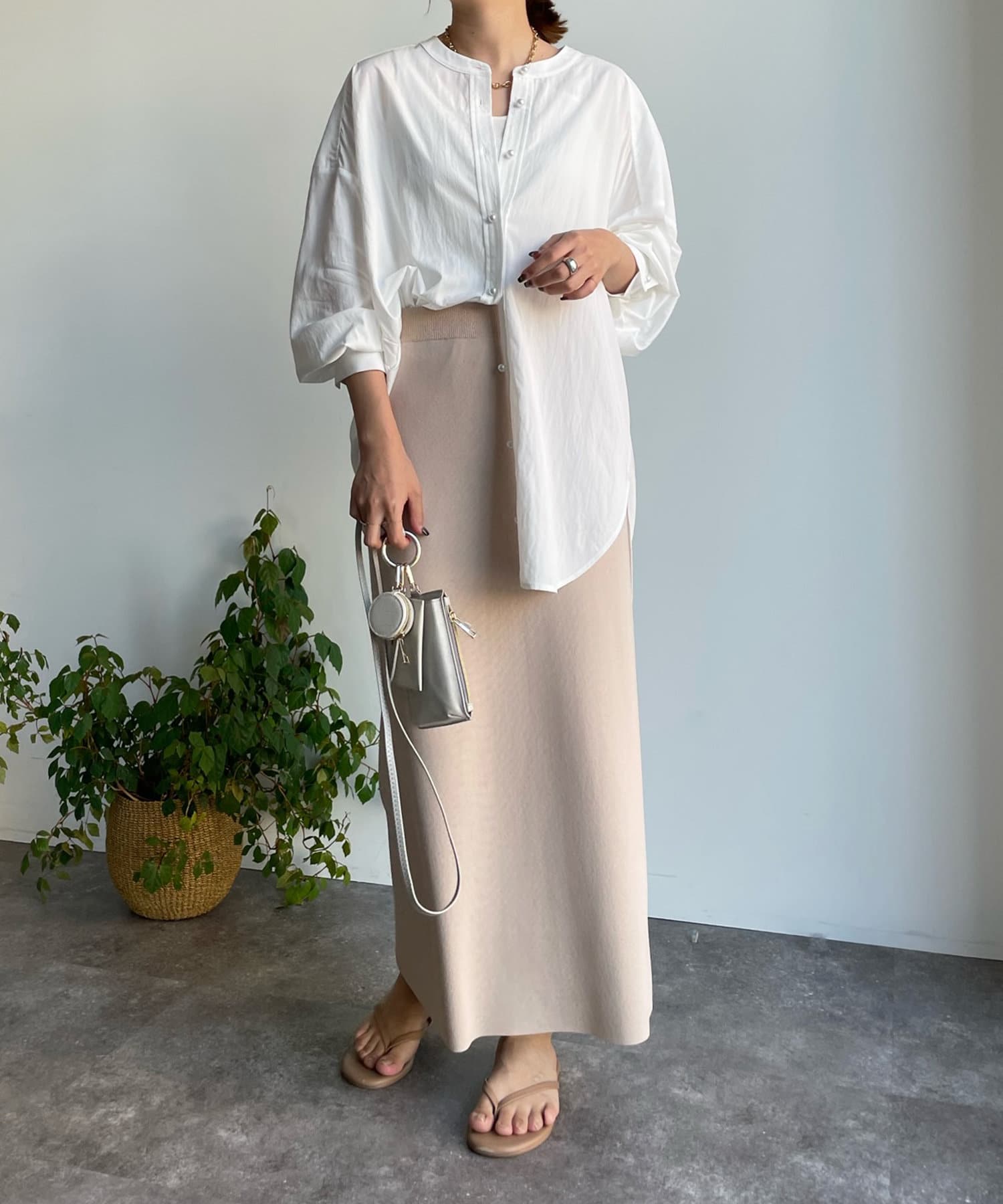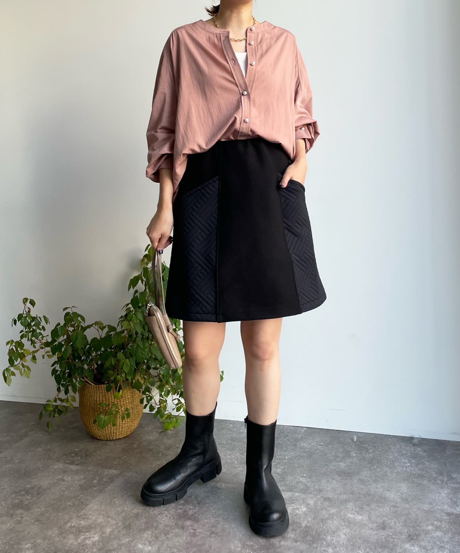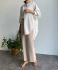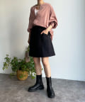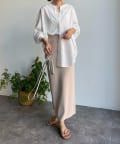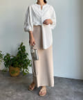 パンツ合わせですっきりと合わせるのはもちろん、スカートと合わせてまた違った表情で着回すのも素敵ですよ◎