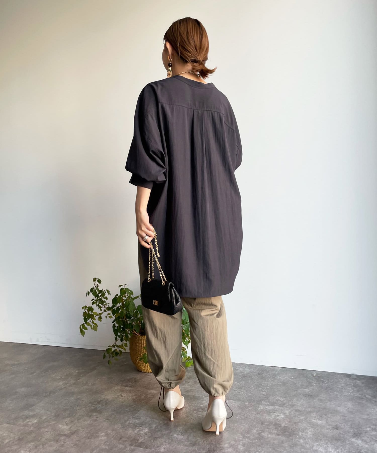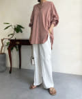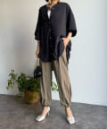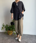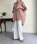 シルエットは、ゆとりがあるので身体のラインを拾わず、また、前後差のある丈感ですっぽりとヒップを隠してくれるのがうれしいポイント。