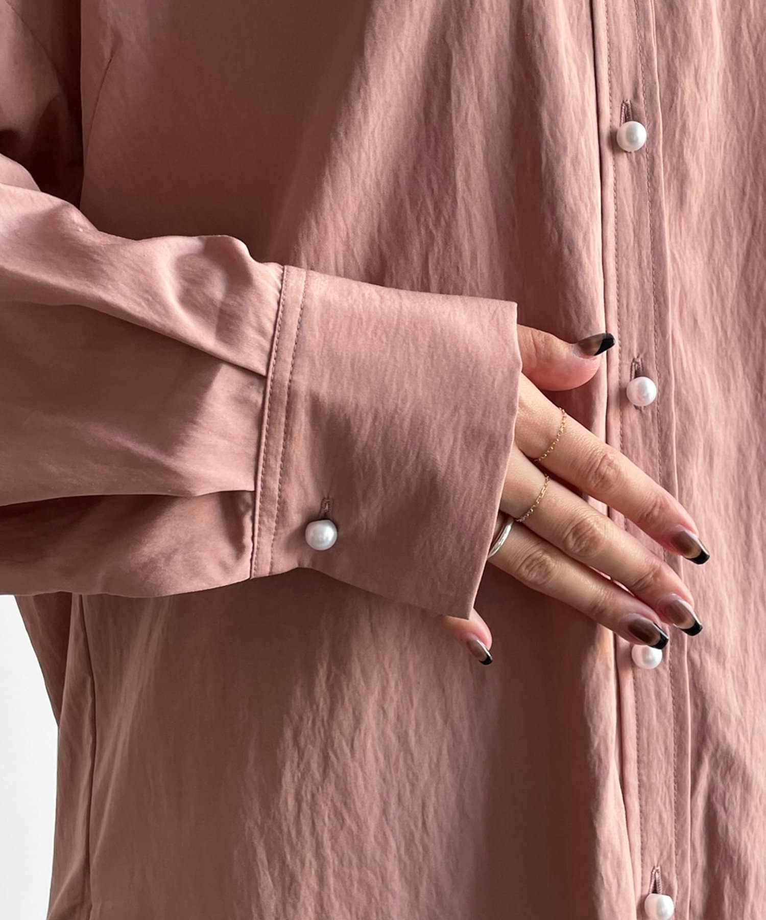 トレンドのパールデザインをさり気なくボタンに取り入れることで、抜かりのないおしゃれなポイントとなってくれます。