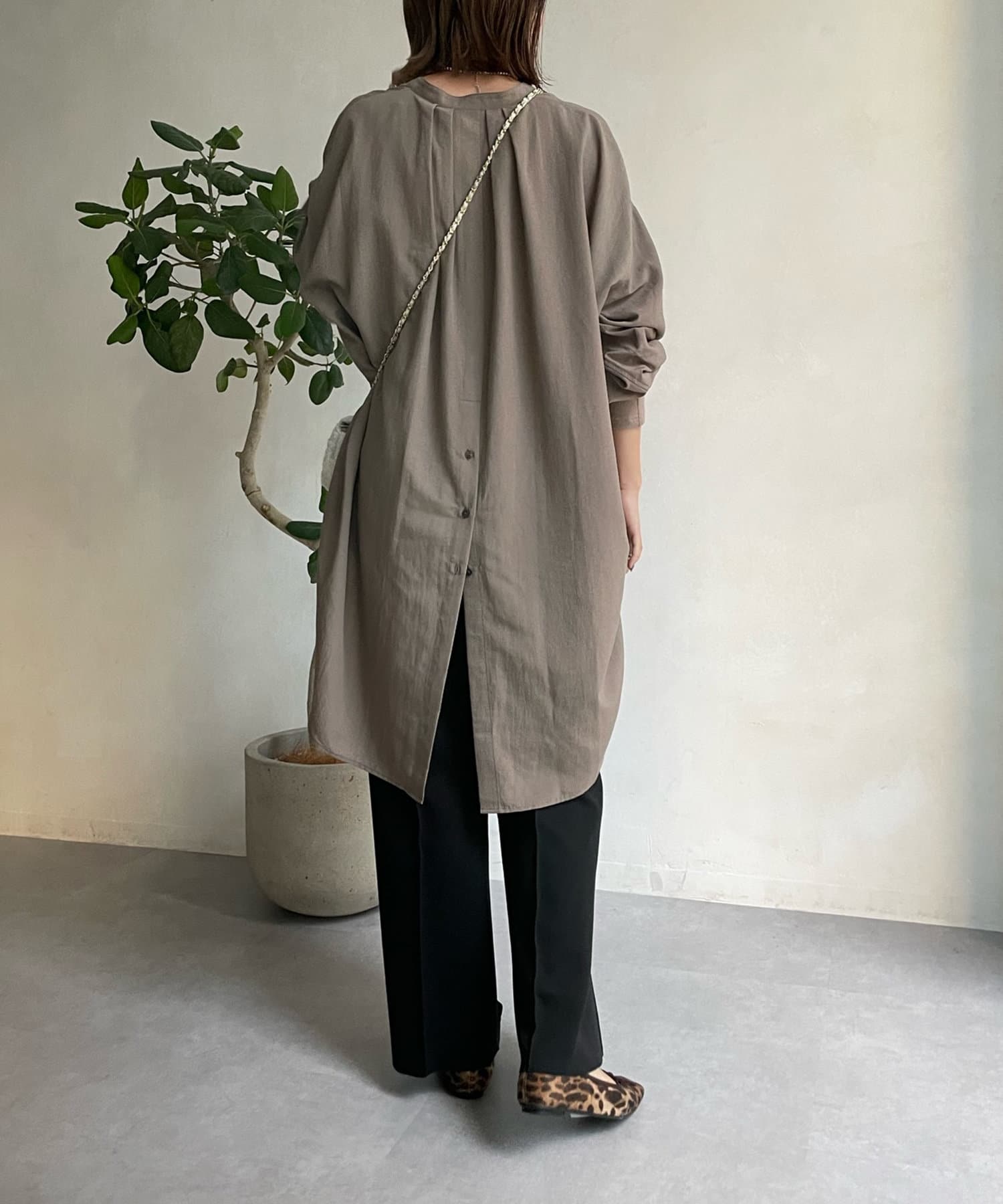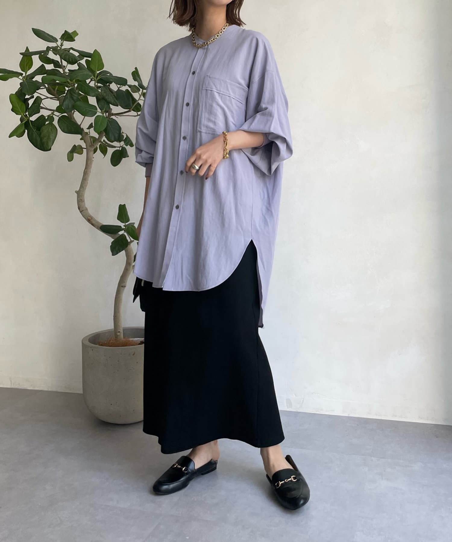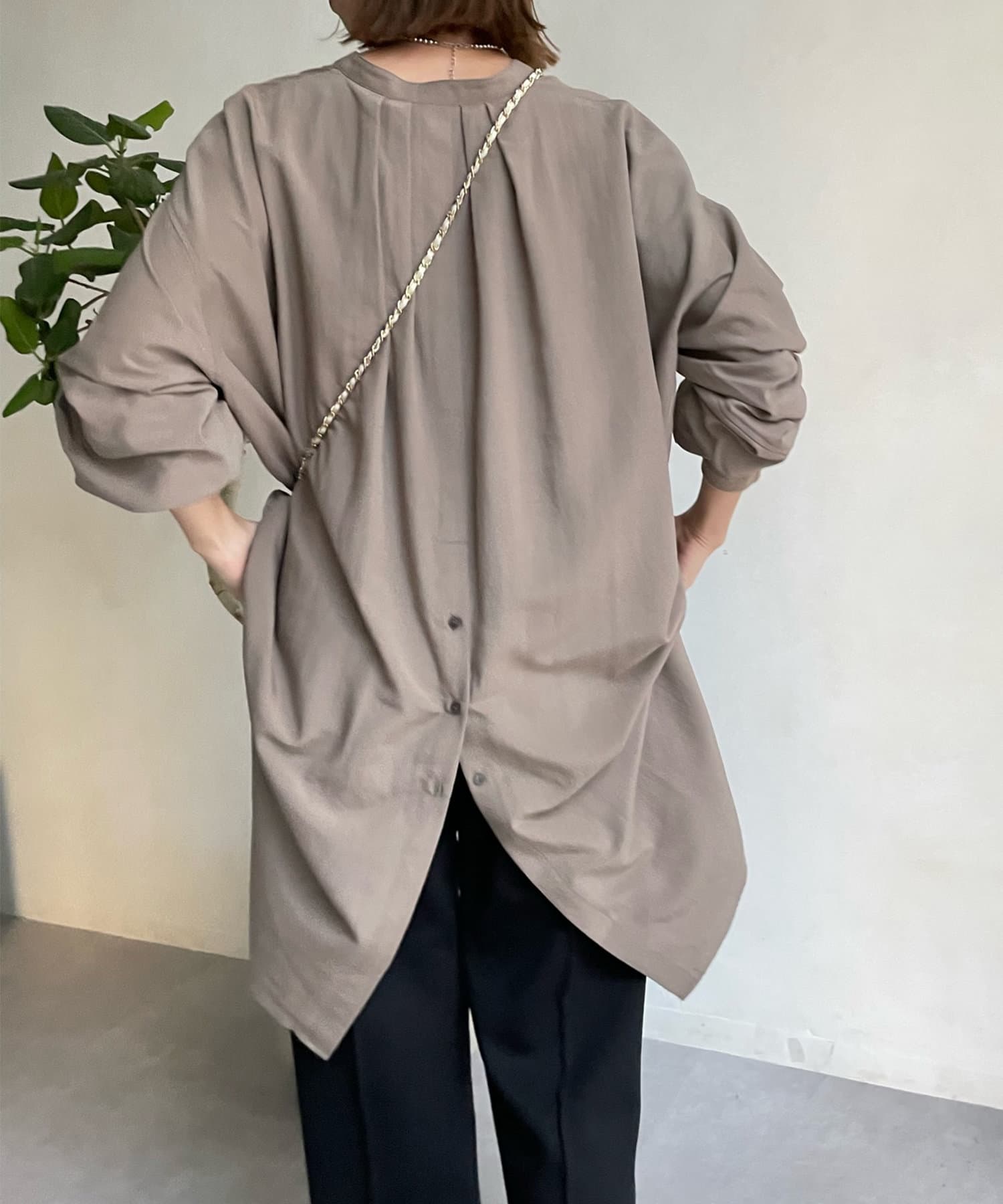 たっぷりと取った身幅に、前後差のある丈感でこなれ感たっぷりのデザインが魅力です。