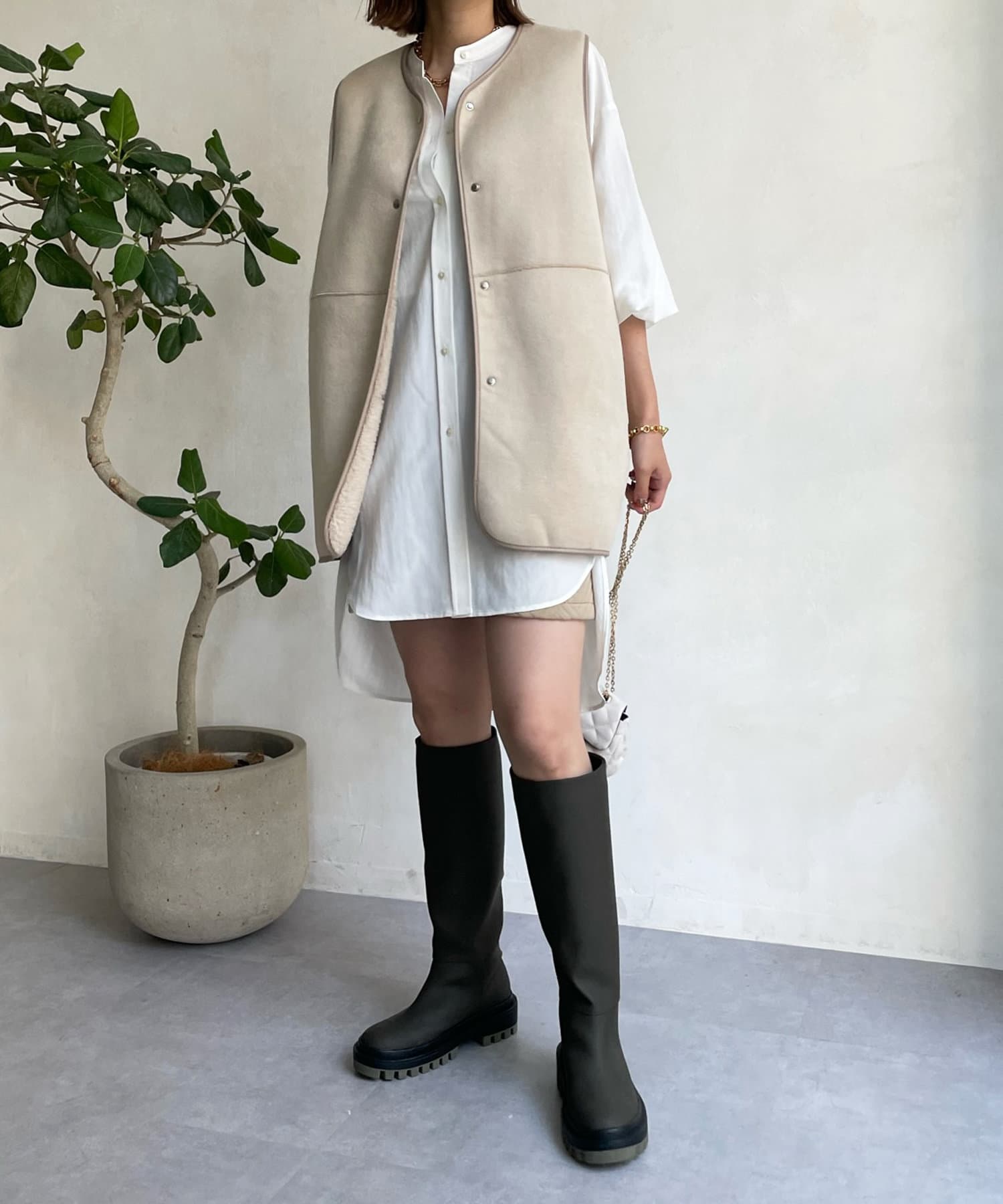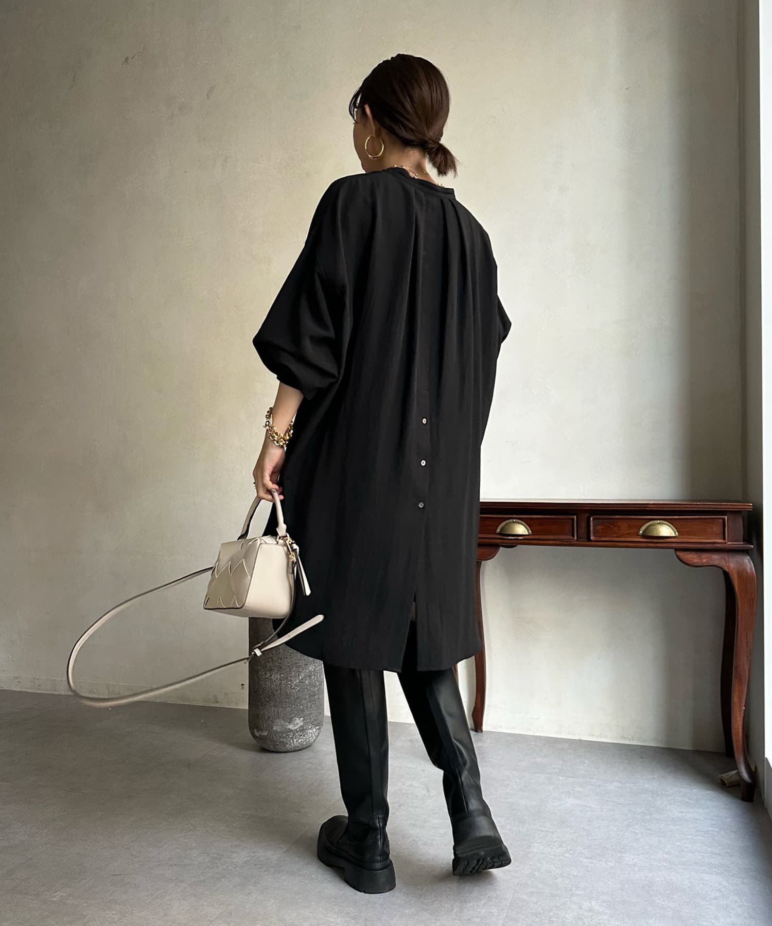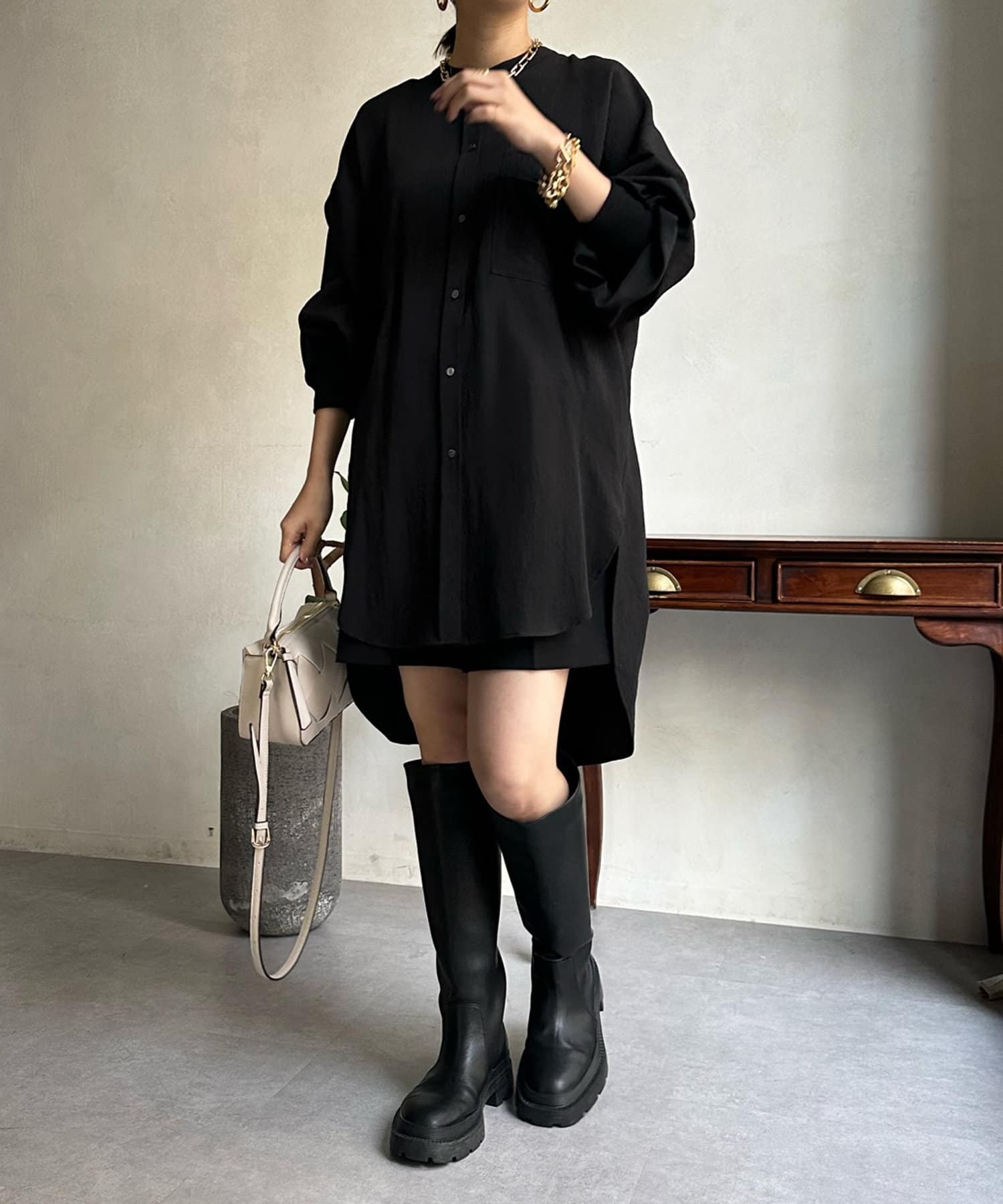 たっぷりと取った身幅に、前後差のある丈感でこなれ感たっぷりのデザインが魅力です。