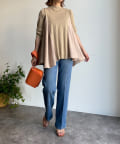 両サイドの袖下からシアー素材に切り替えられ、動くたびヒラっと揺れる裾が女性らしさ◎