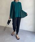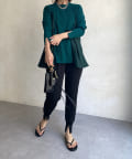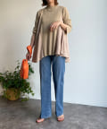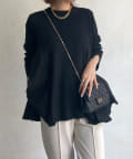 お尻が隠れ、裾にかけて Aラインになったシルエットが体系カバーとスタイルアップ効果も◎スッキリめのボトム合わせがバランス良くオススメです。