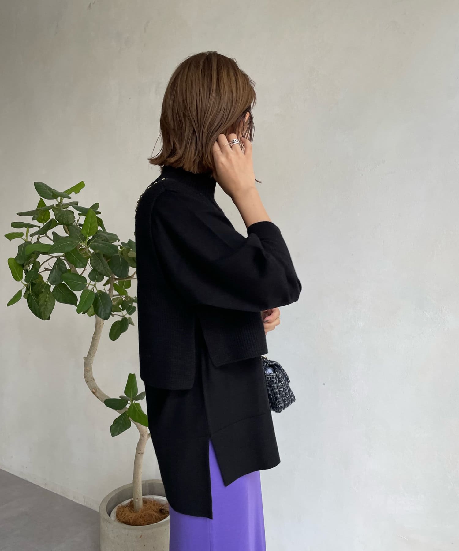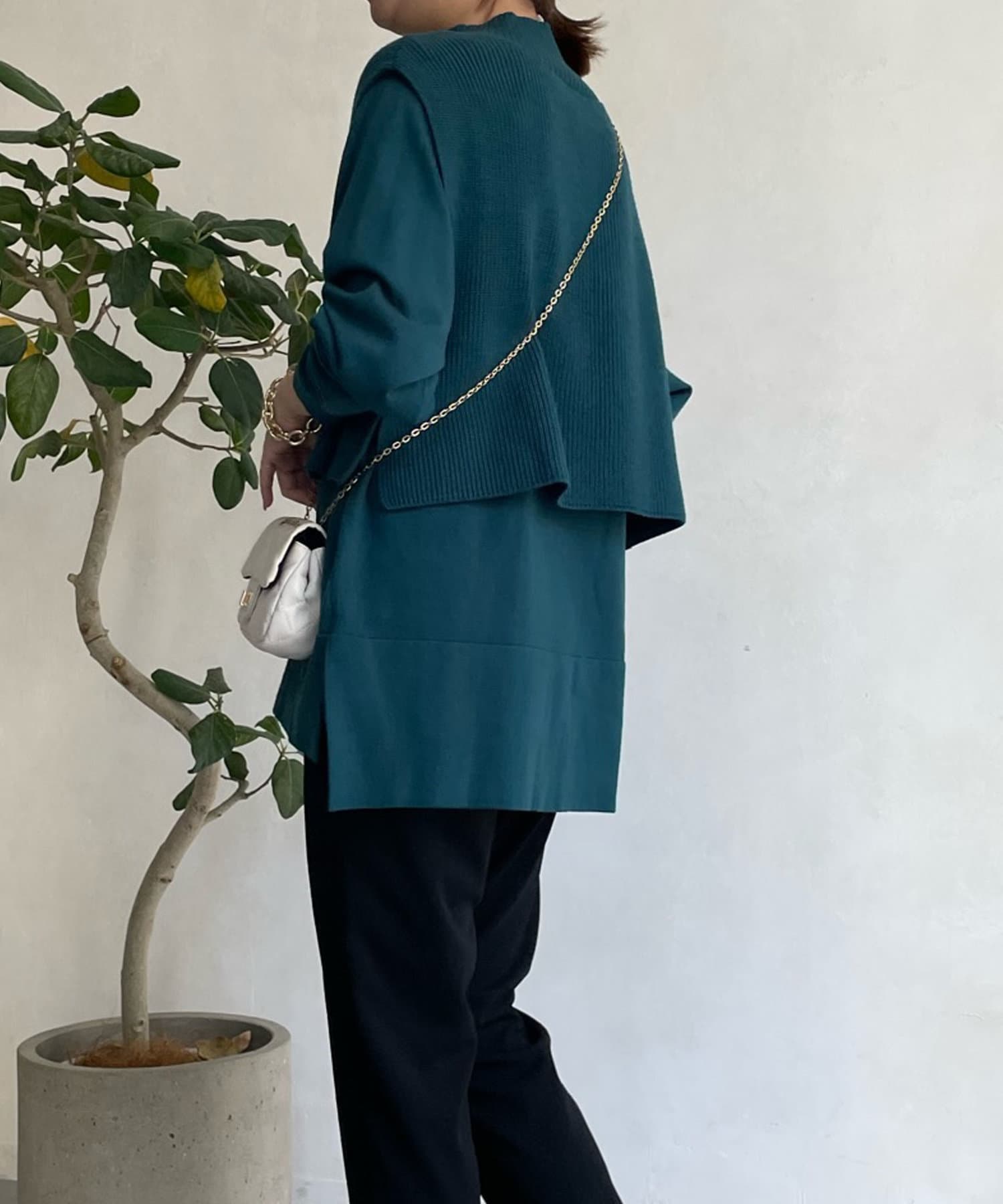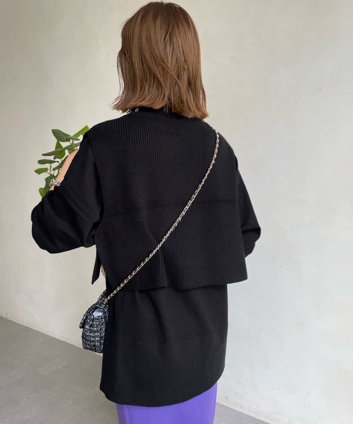 ベストはお手持ちのシャツやブラウスとのレイヤードもオススメ!サイドの裾にスリットが入っており窮屈感なくレイヤードコーデが楽しめます◎
