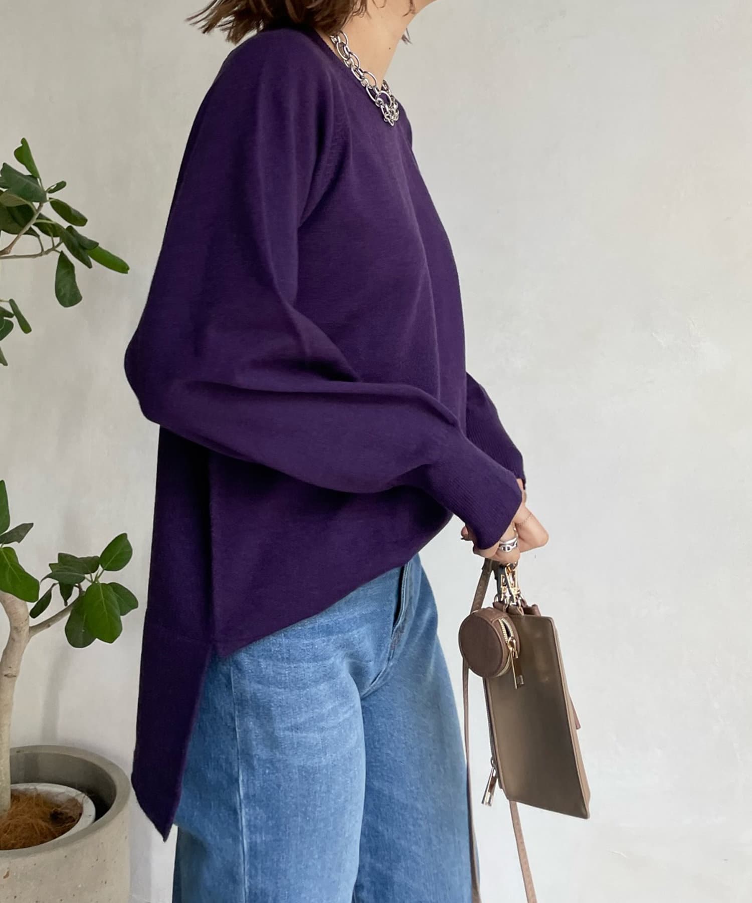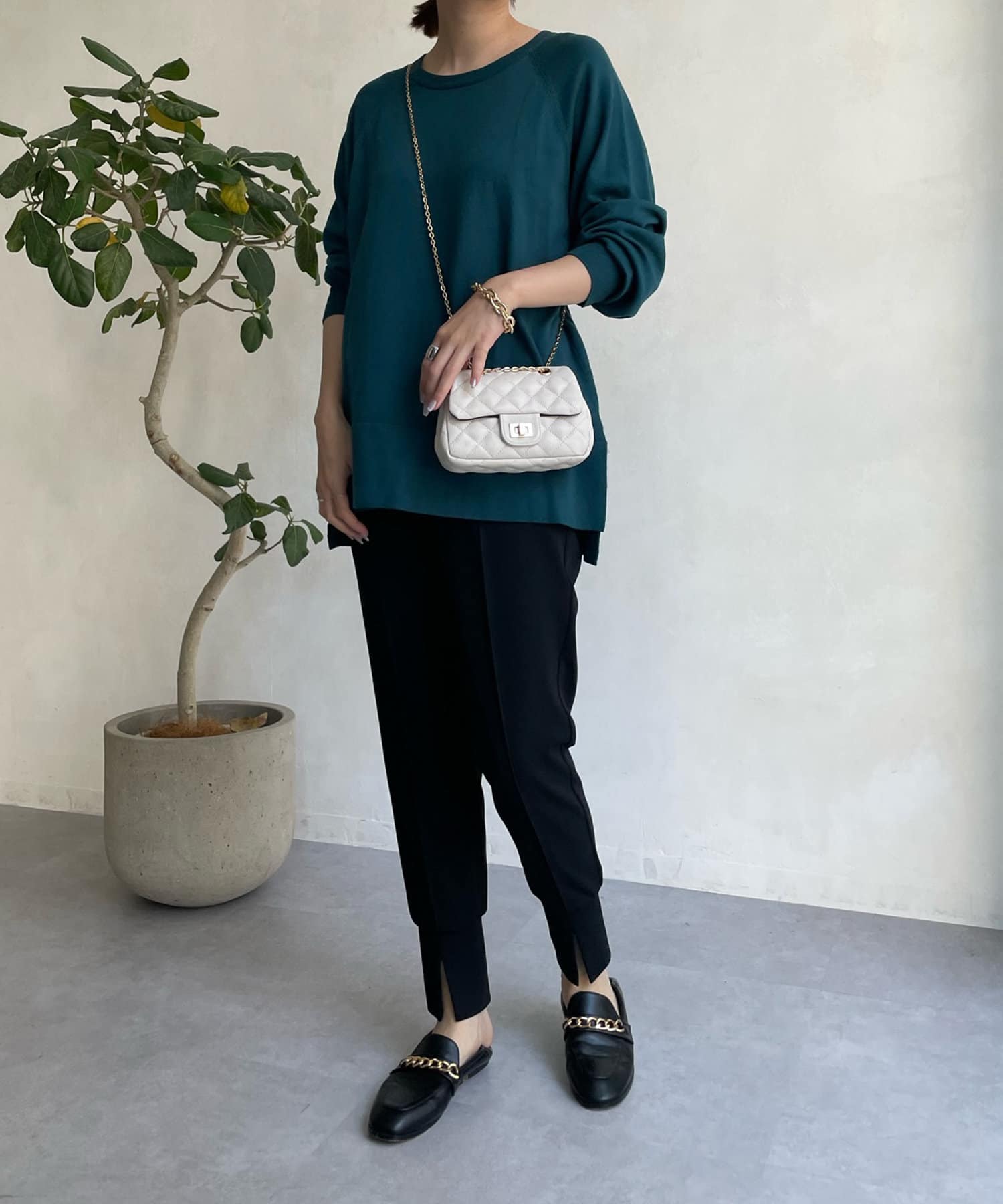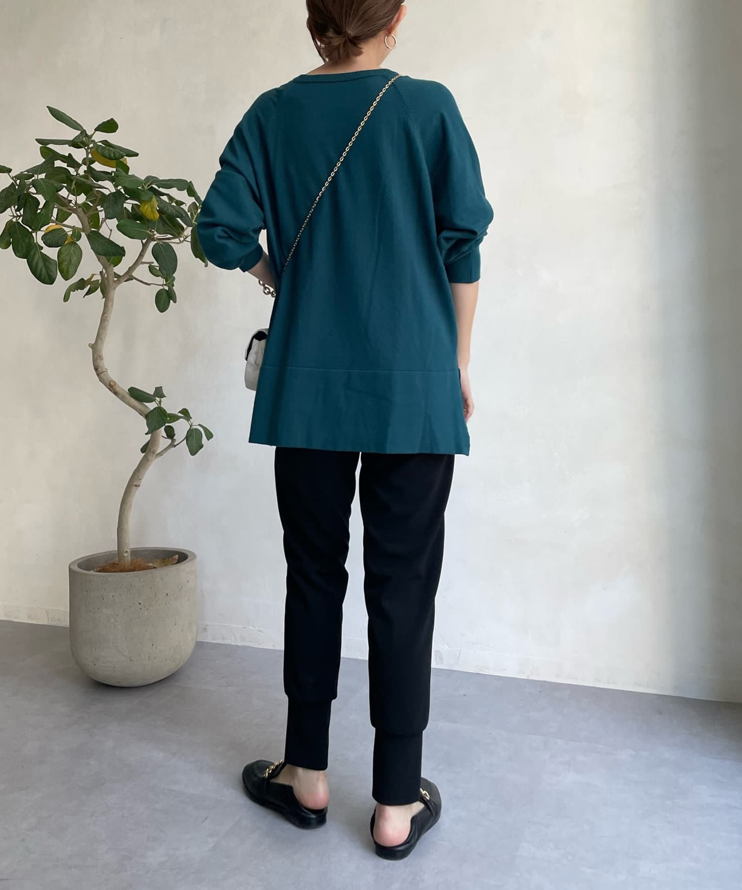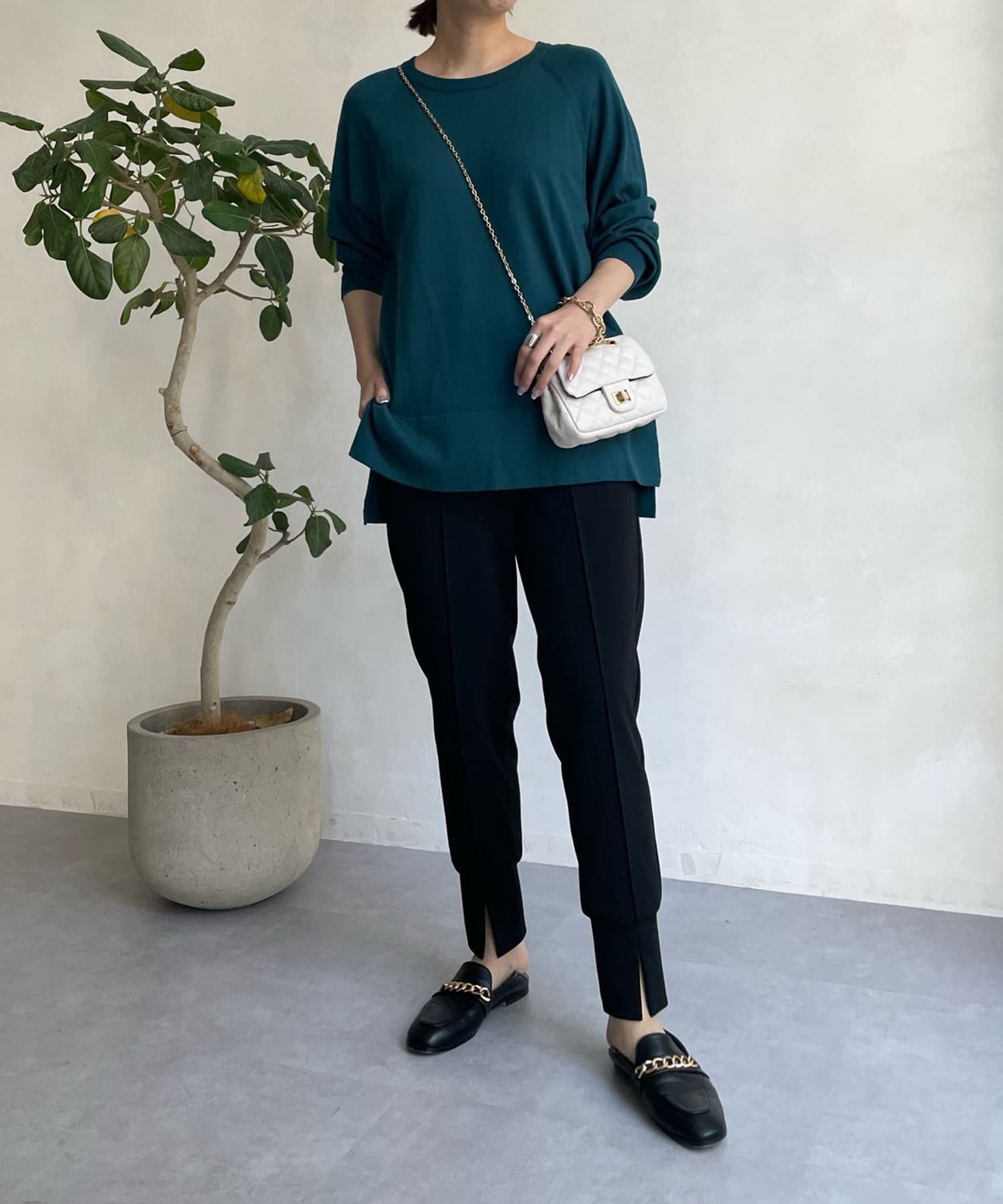 トップスは後ろの丈が長くお尻が隠れる安心丈、さらっとした生地感が着心地の良さも◎サイドスリットが入っている為フロントインした着こなしもしやすいですよ!