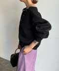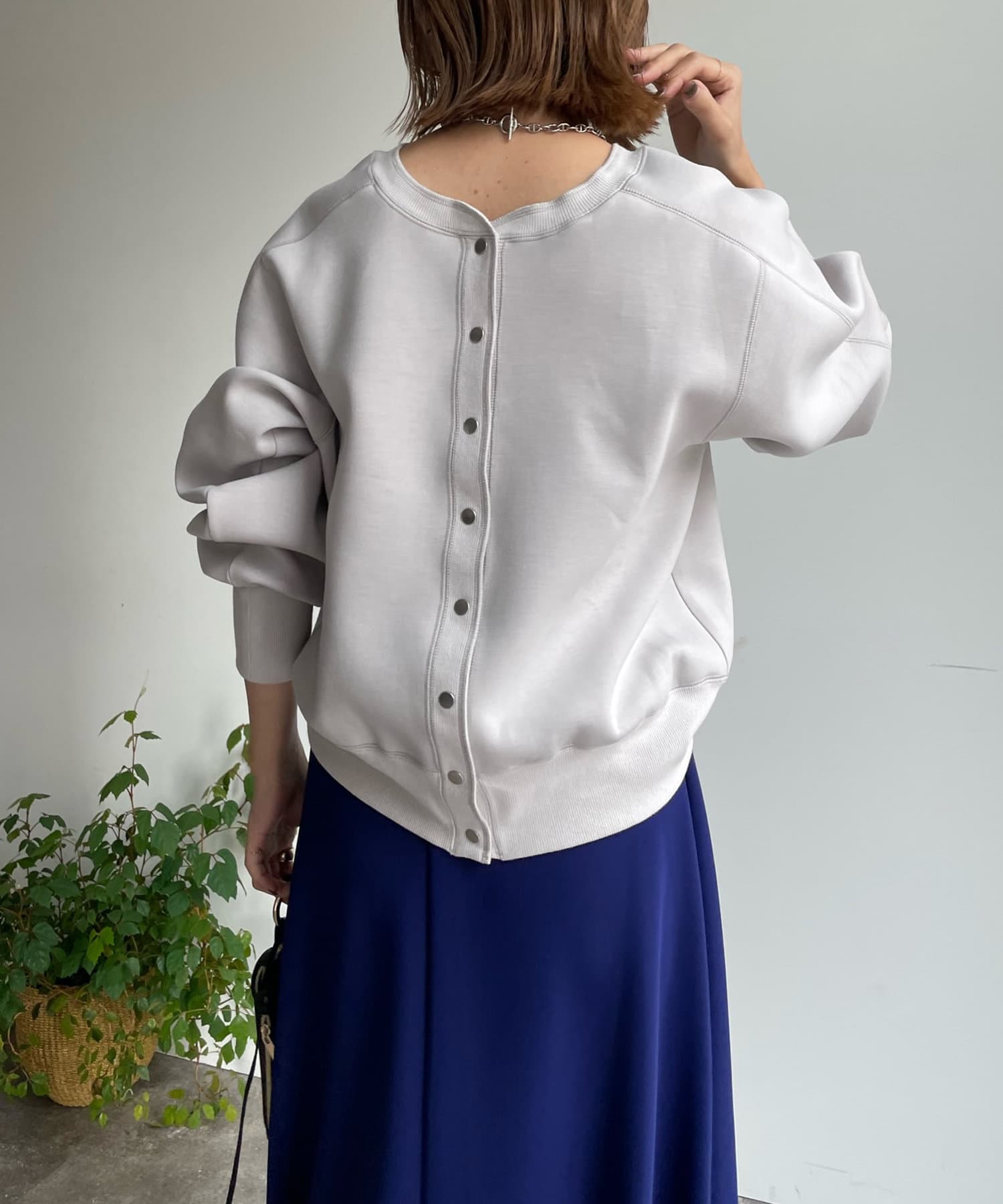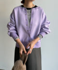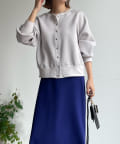 フロントボタンを開けてカーディガンとしても、閉じてプルオーバーとしても可愛い、着こなしの幅を広げてくれるアイテムですよ。