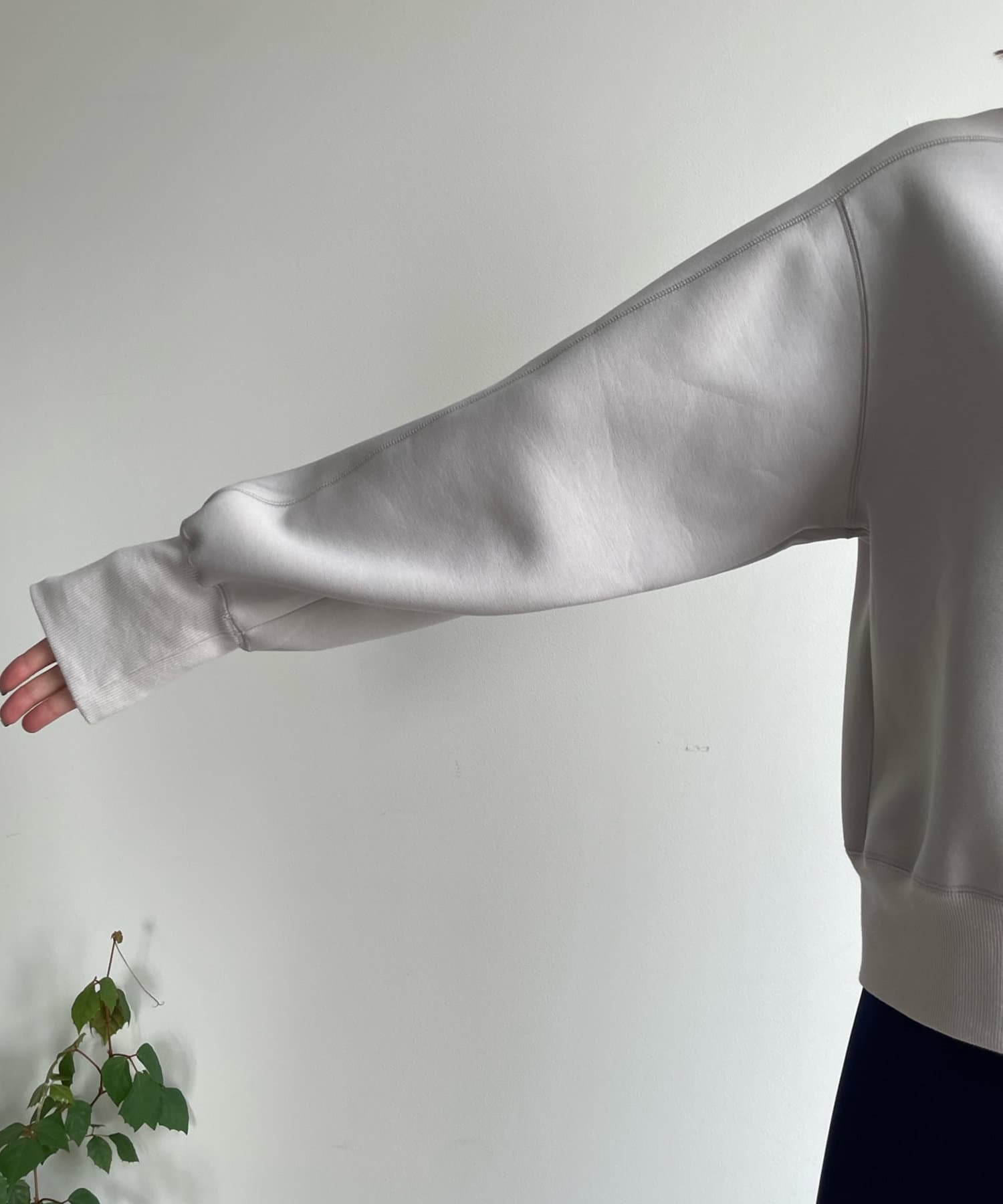 ゆったりとした腕回りや身幅のシルエットで 楽な着用感ながらも、コンパクトな着丈で裾をリブに切り替えているので、ボトムスとのバランスがとりやすく、羽織るだけでスタイルアップ間違いなし。