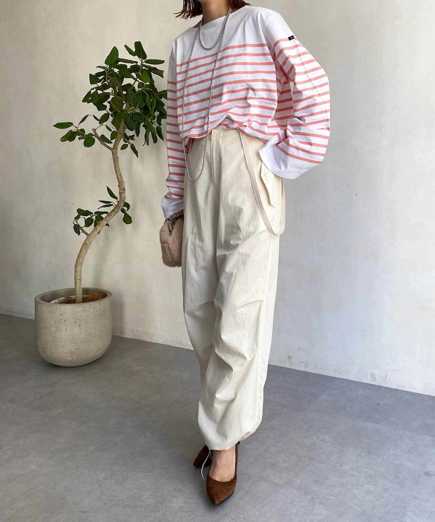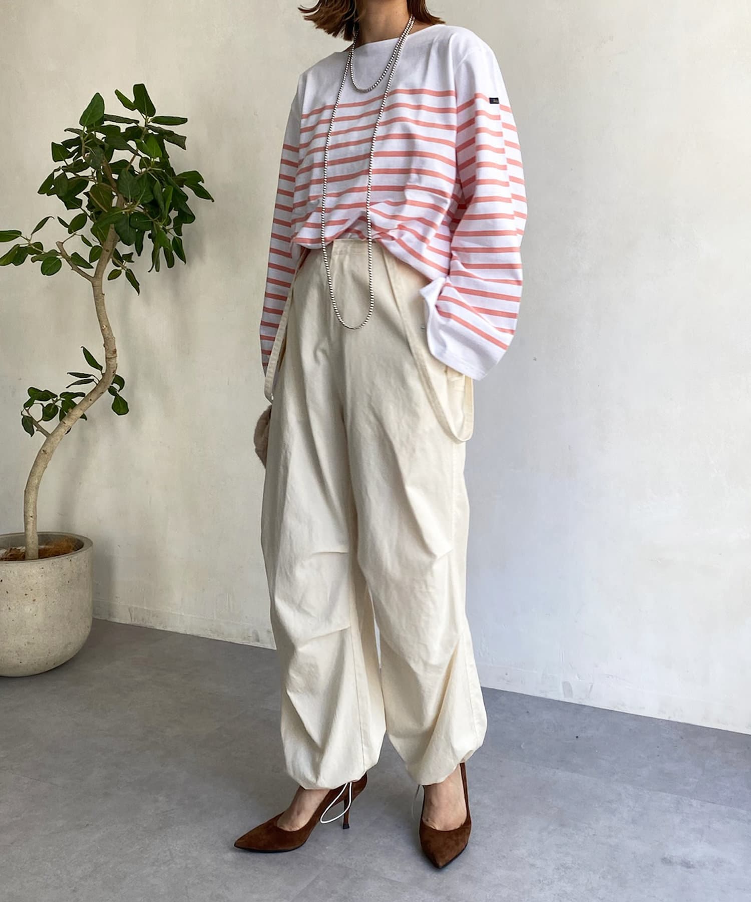 程よいハリ感があり、シーズンを通して着用しやすく、袖をロールアップしたりとサイズ感を活かしたスタイリングがおすすめです。