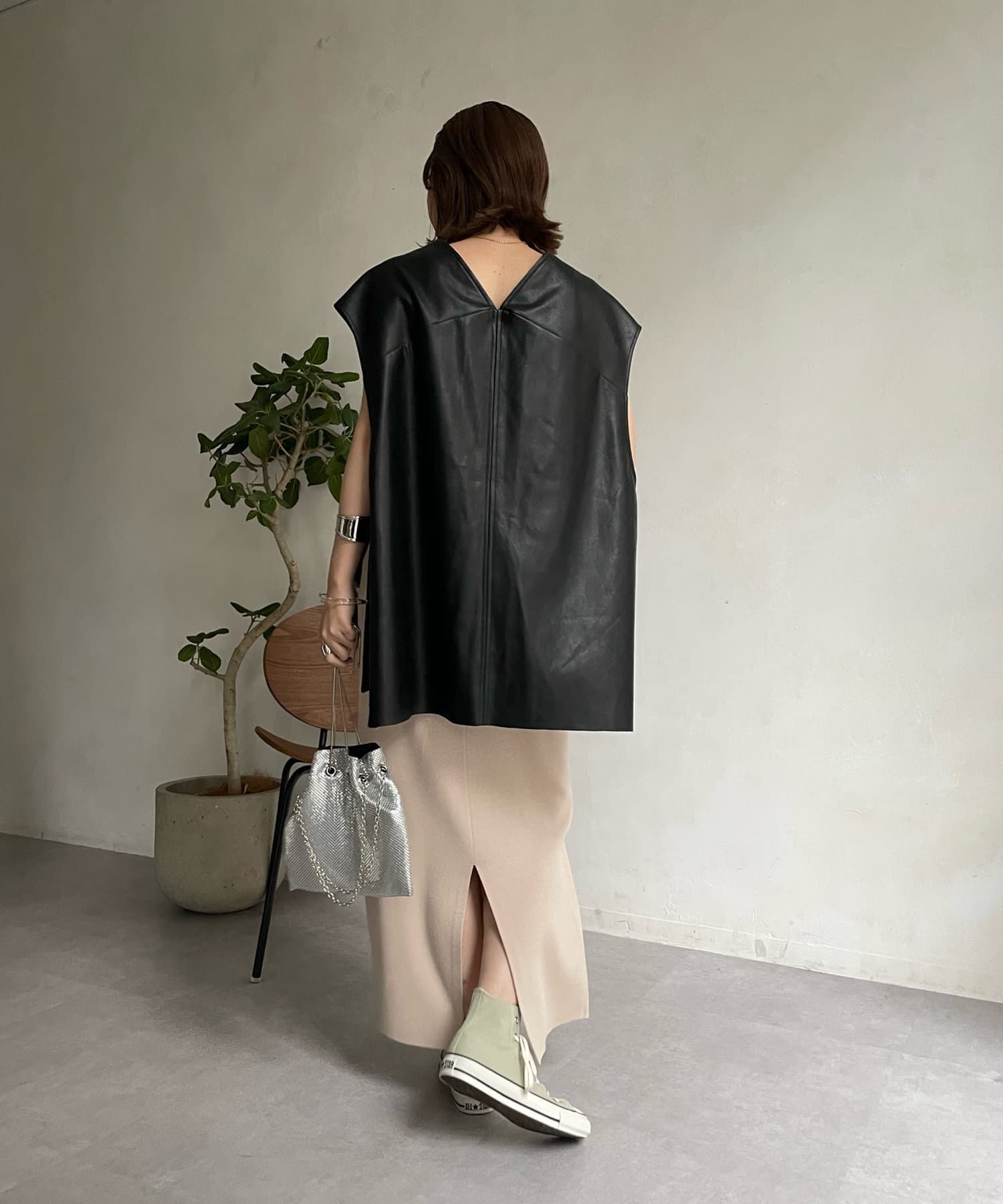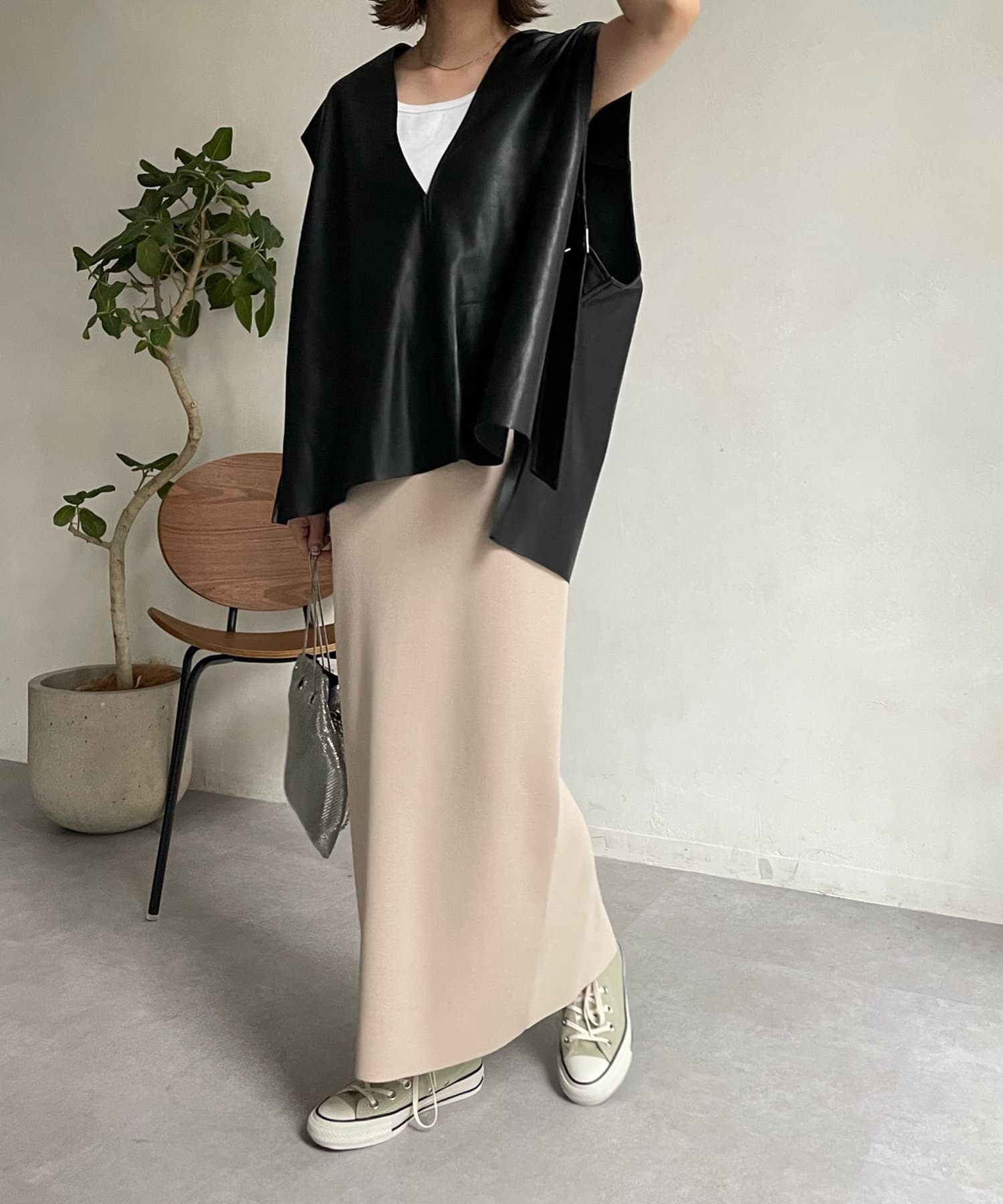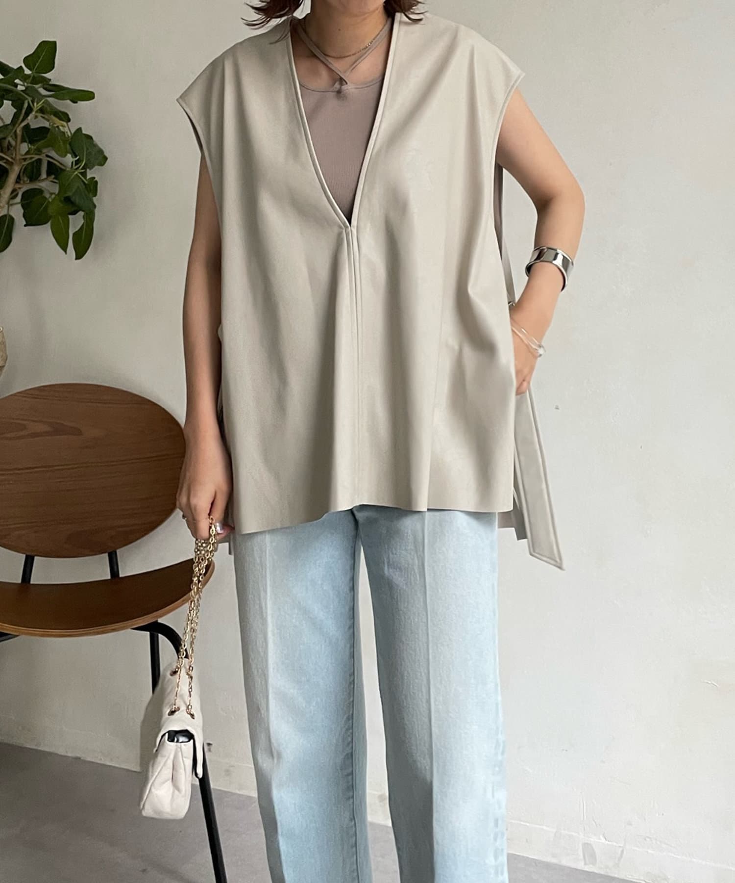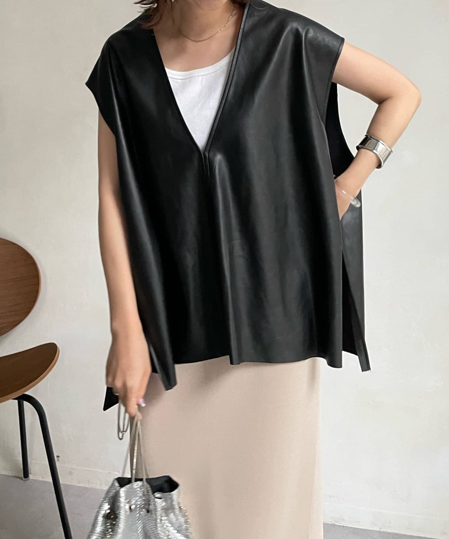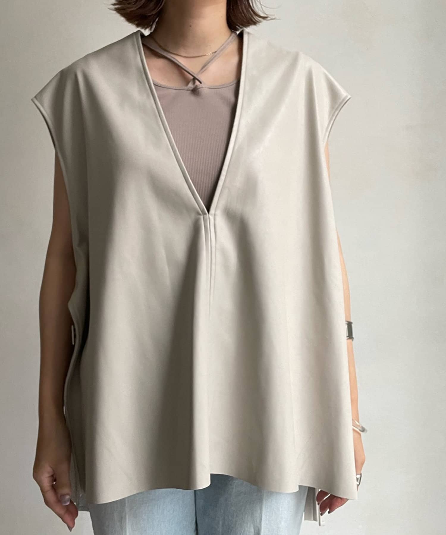 【WEB限定】Vネックエコレザーベスト