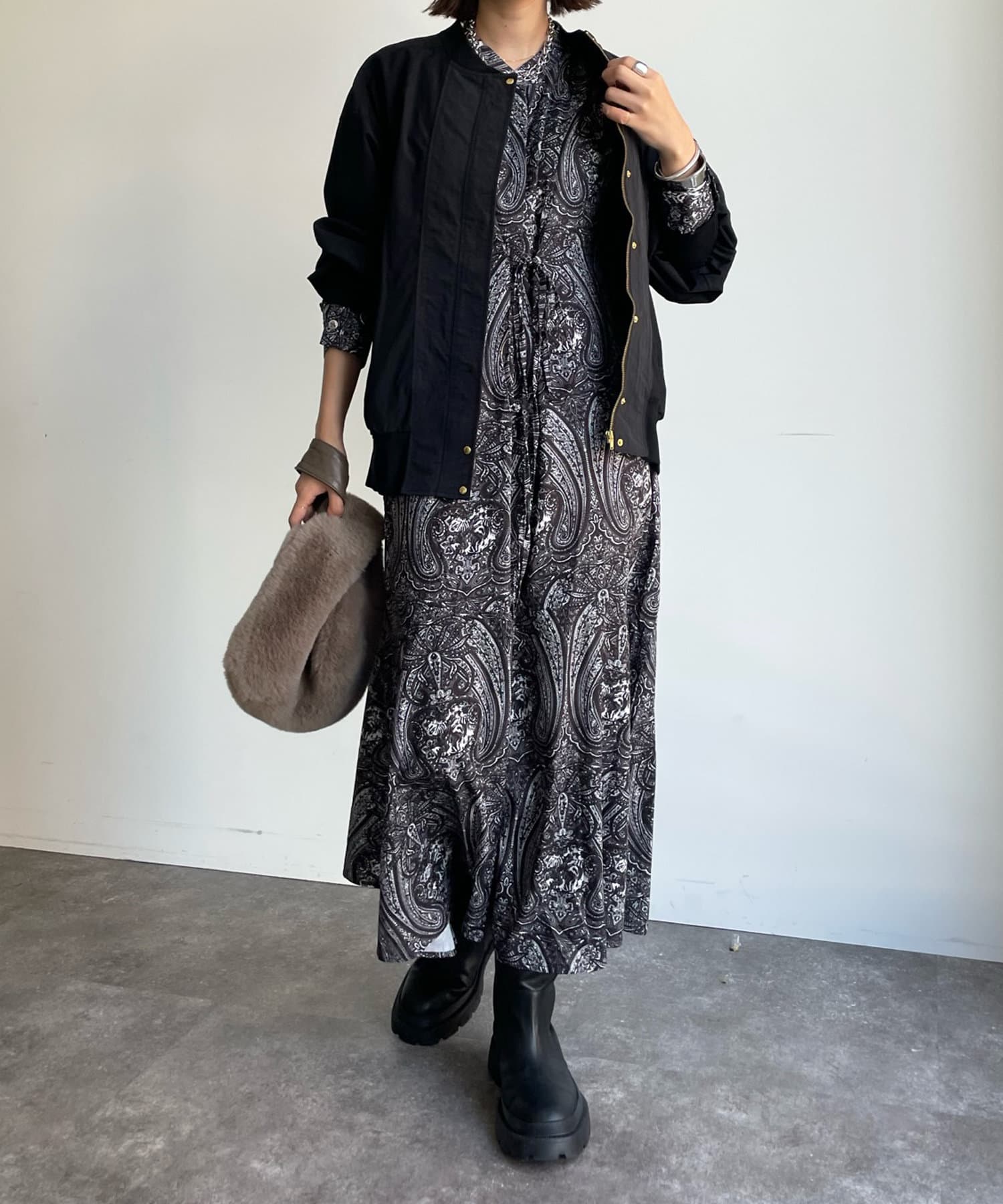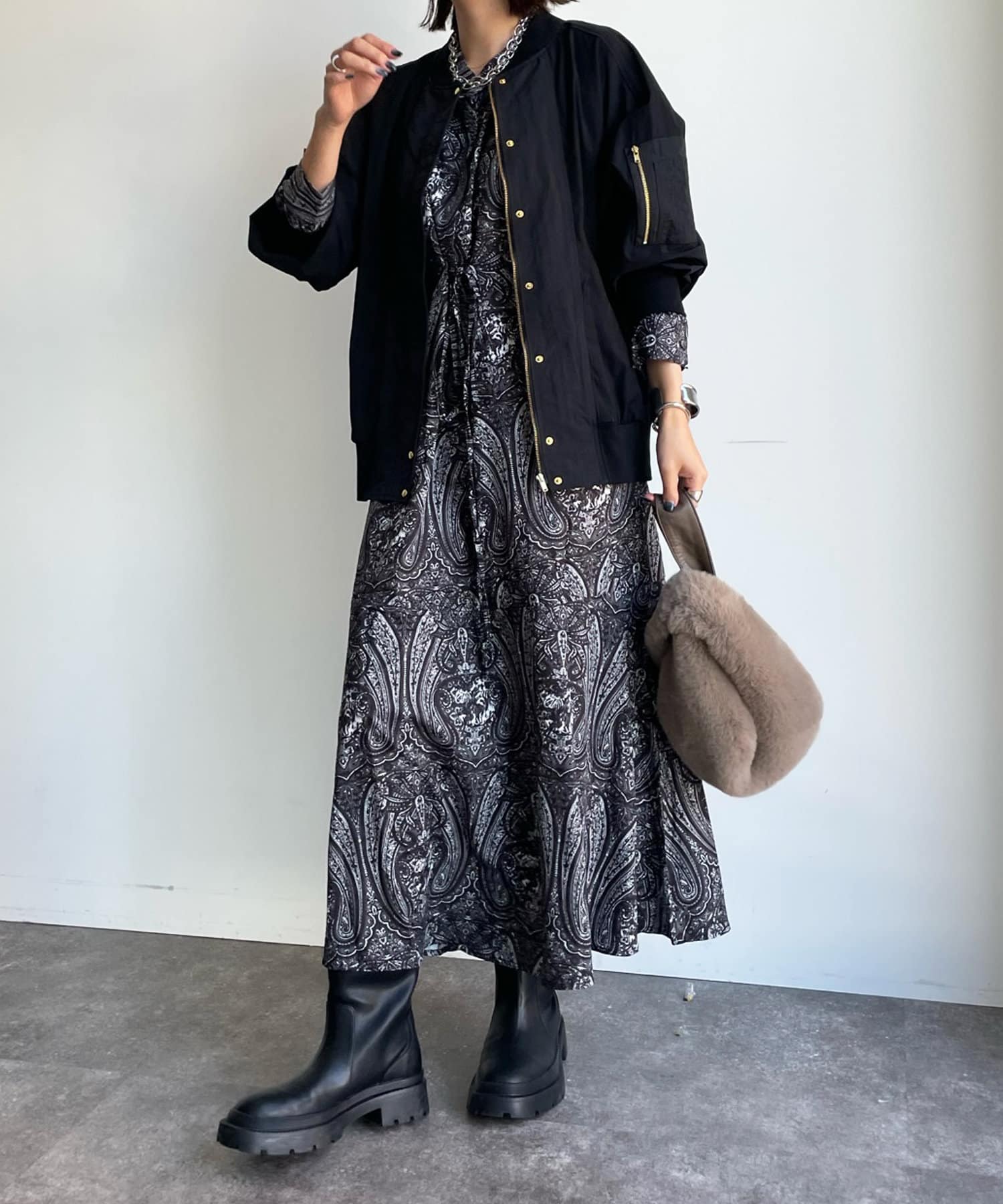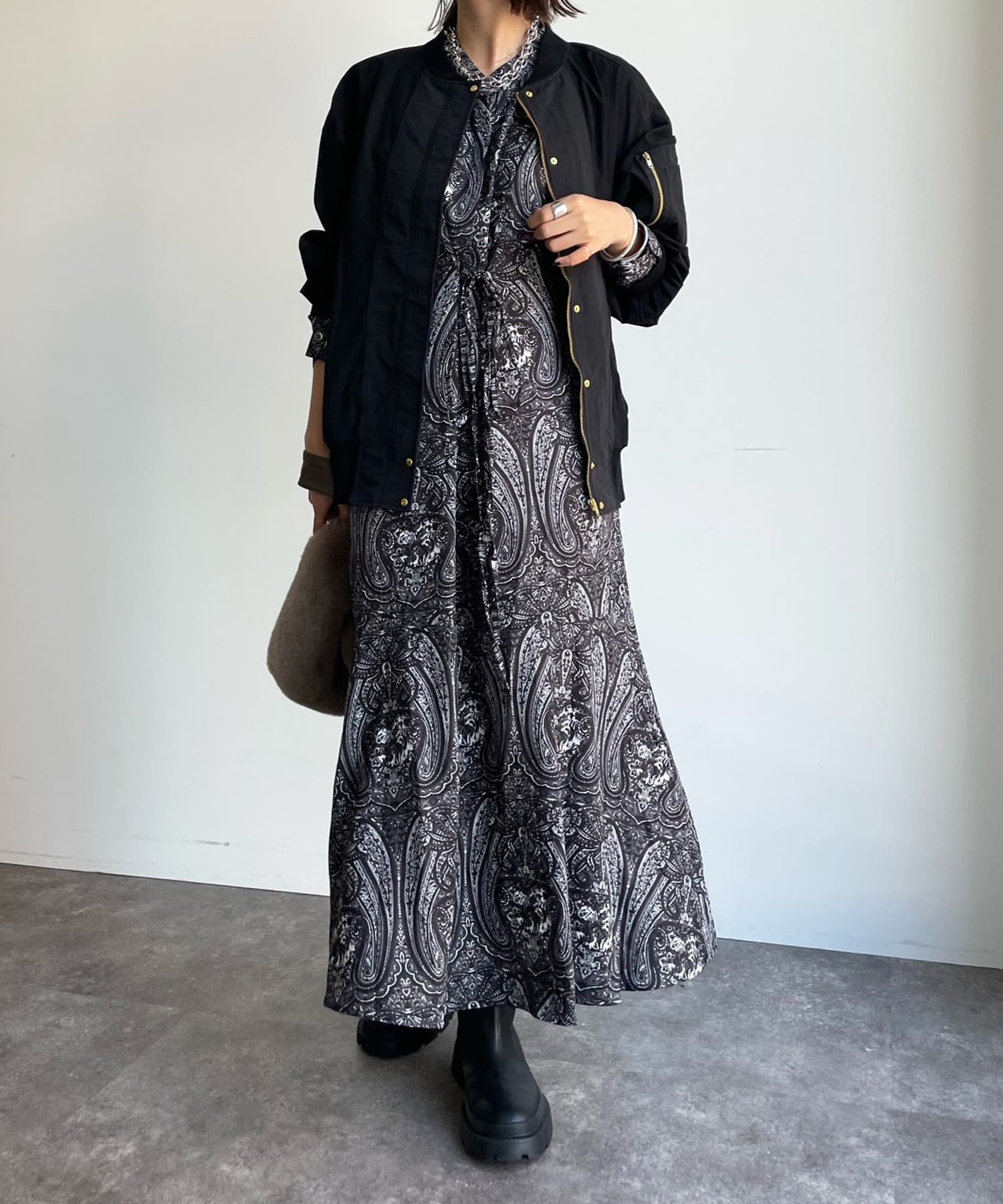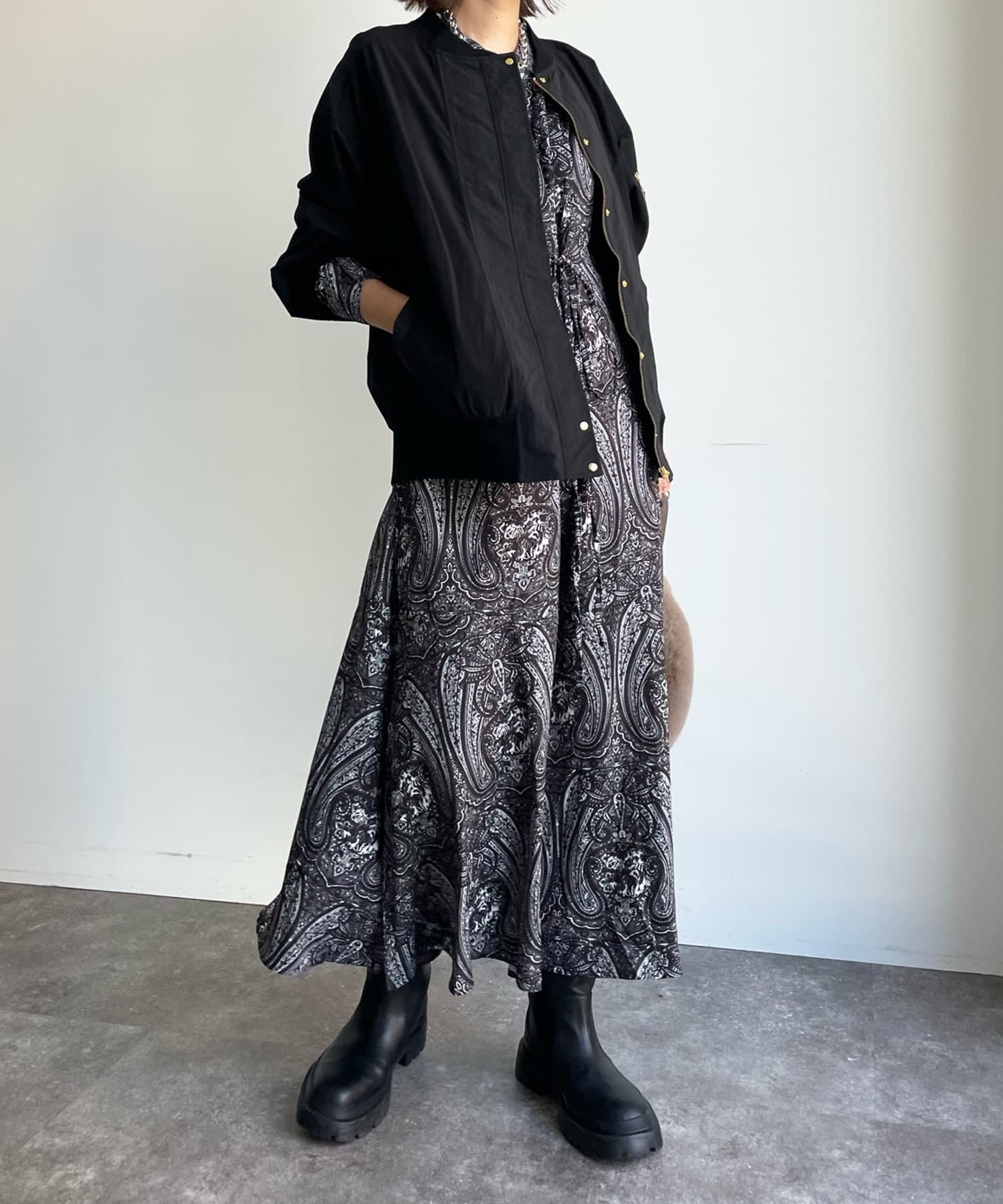 さりげなく異素材切替を施したMA-1ブルゾン。