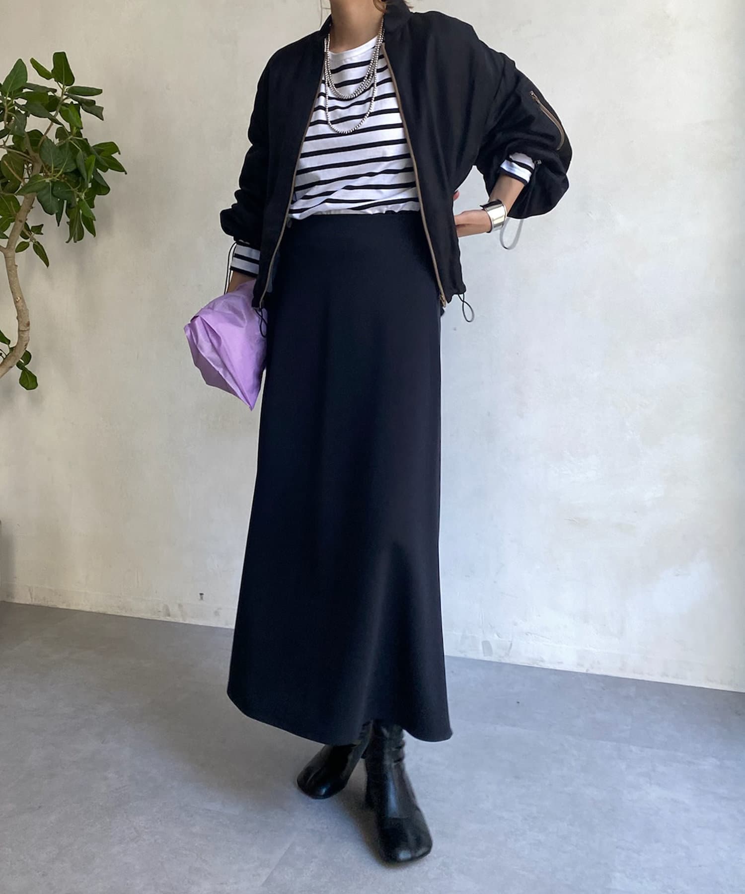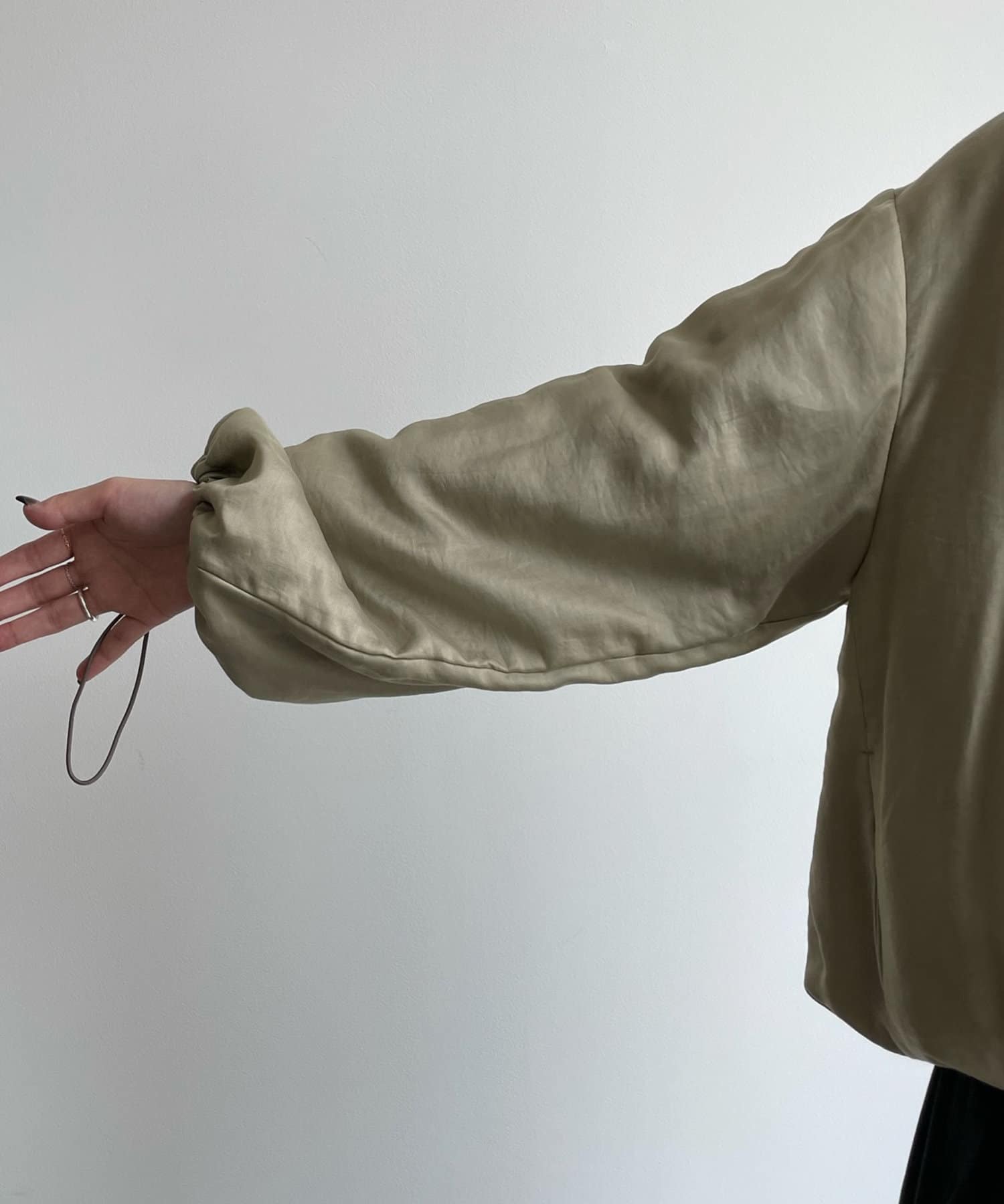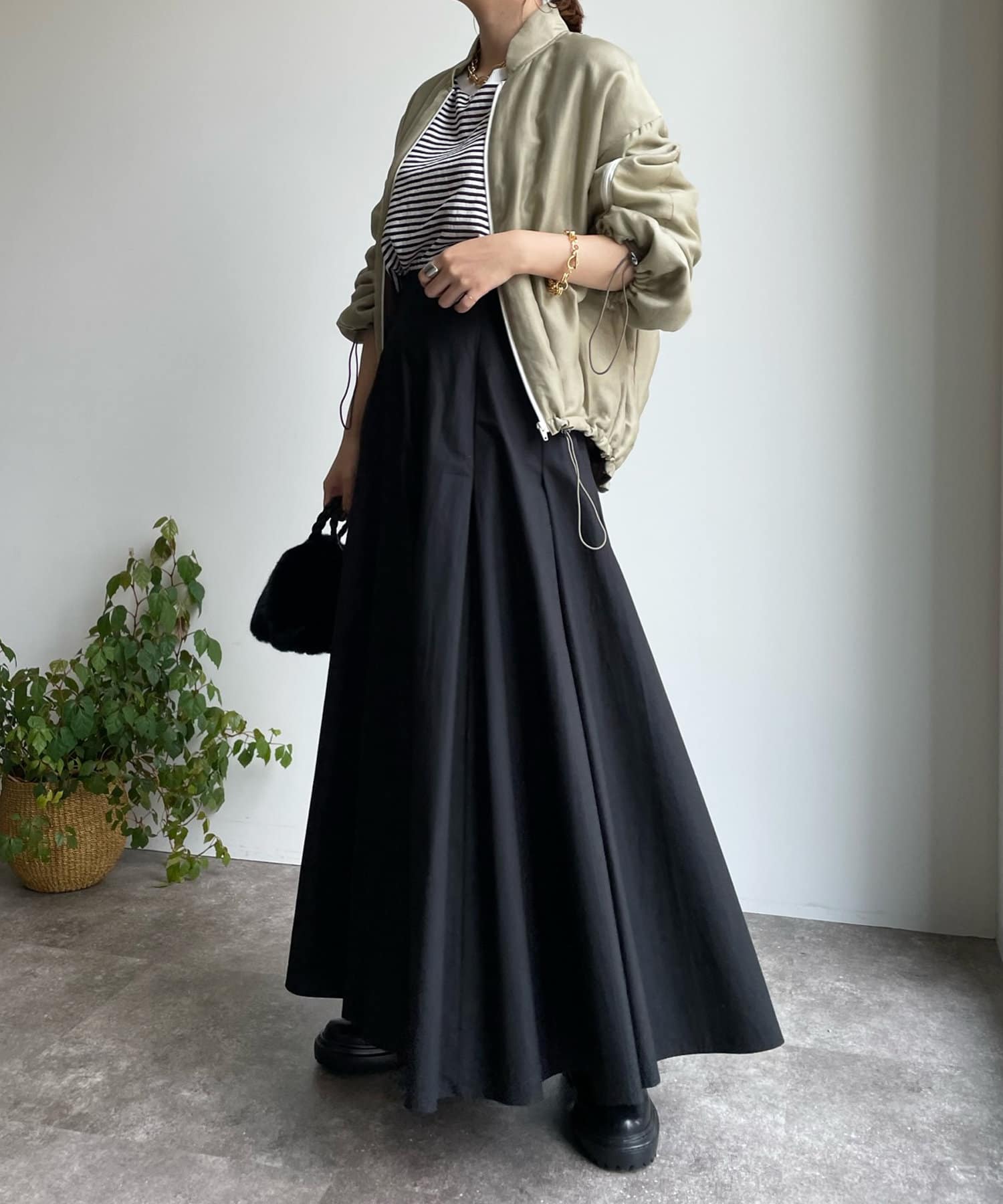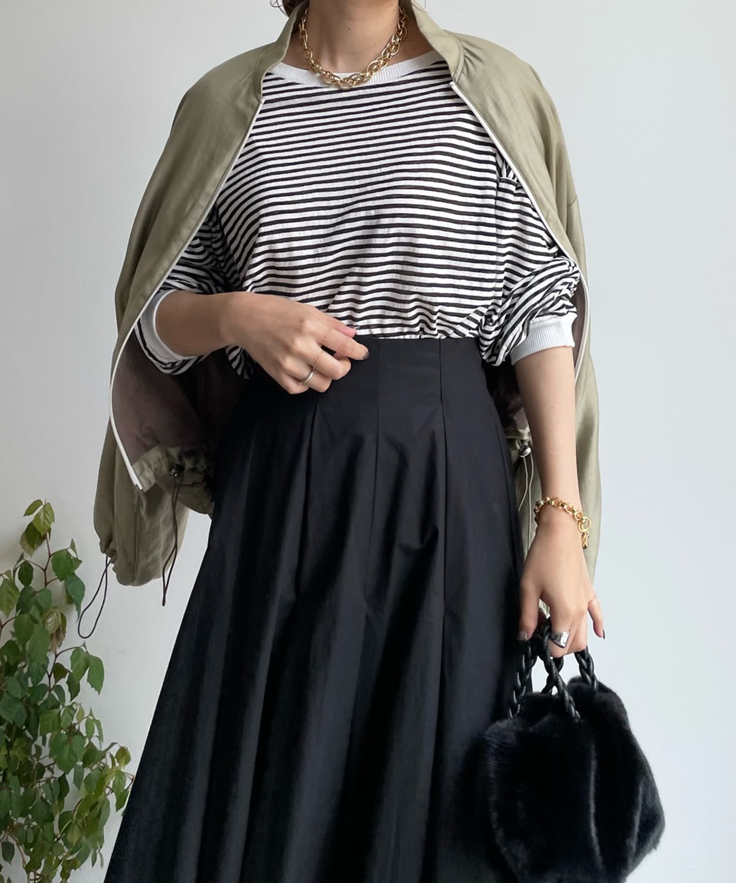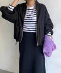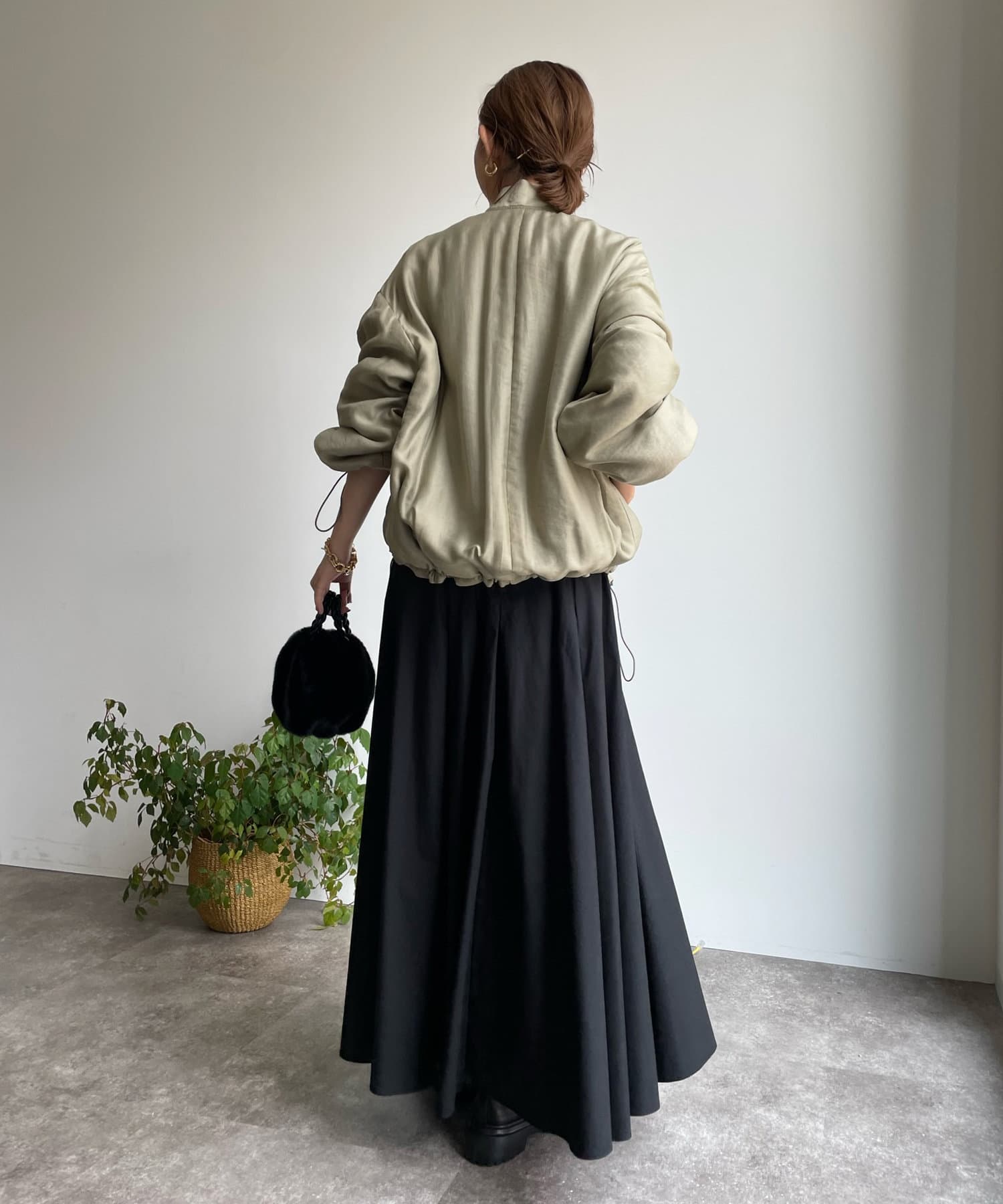 トレンドのMA-1のディティールをベースに、袖口&裾ドロストのデザインを加えることで、丸みを帯びたシルエットにアレンジが可能。女性らしさをプラスできるポイントですよ。