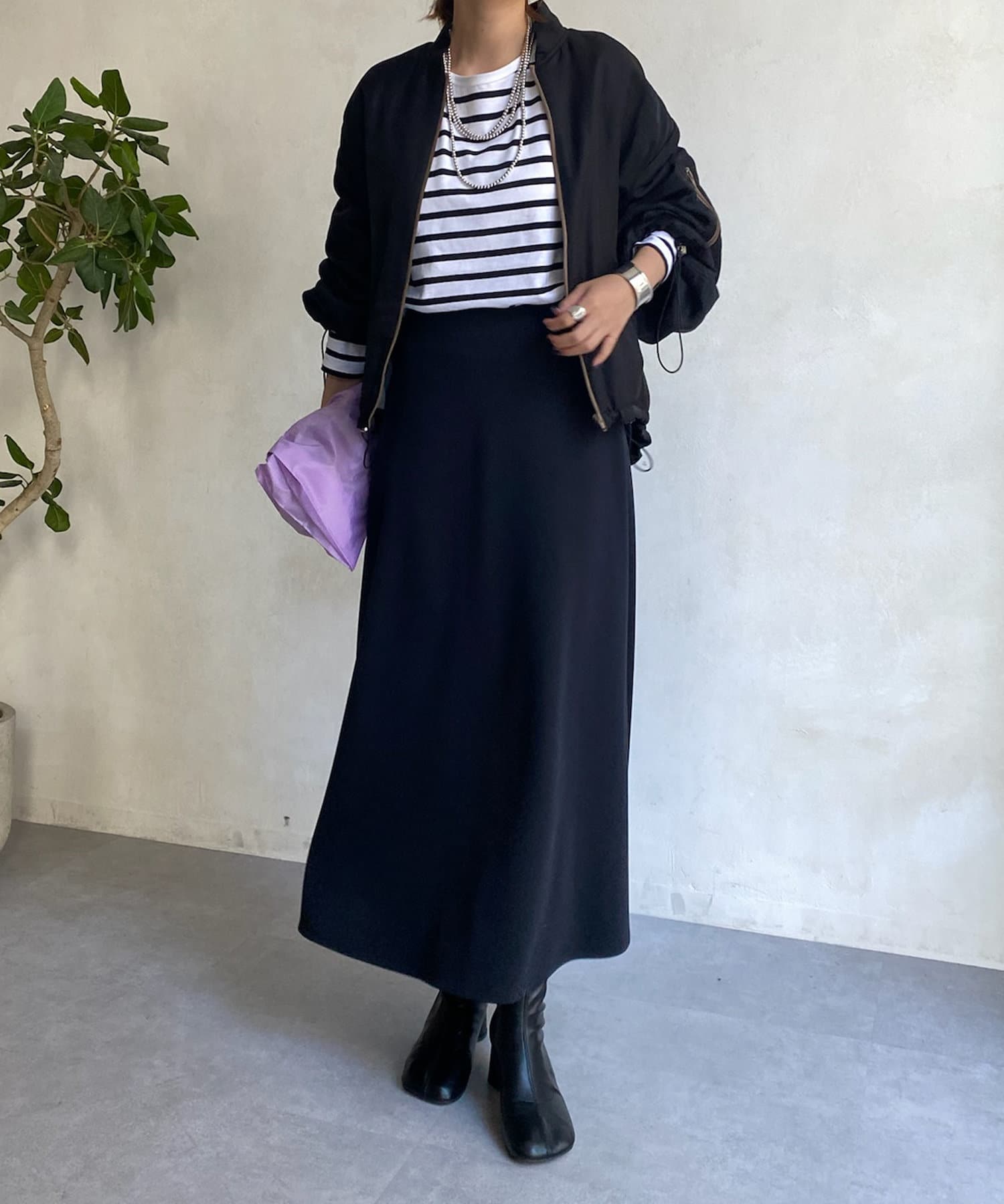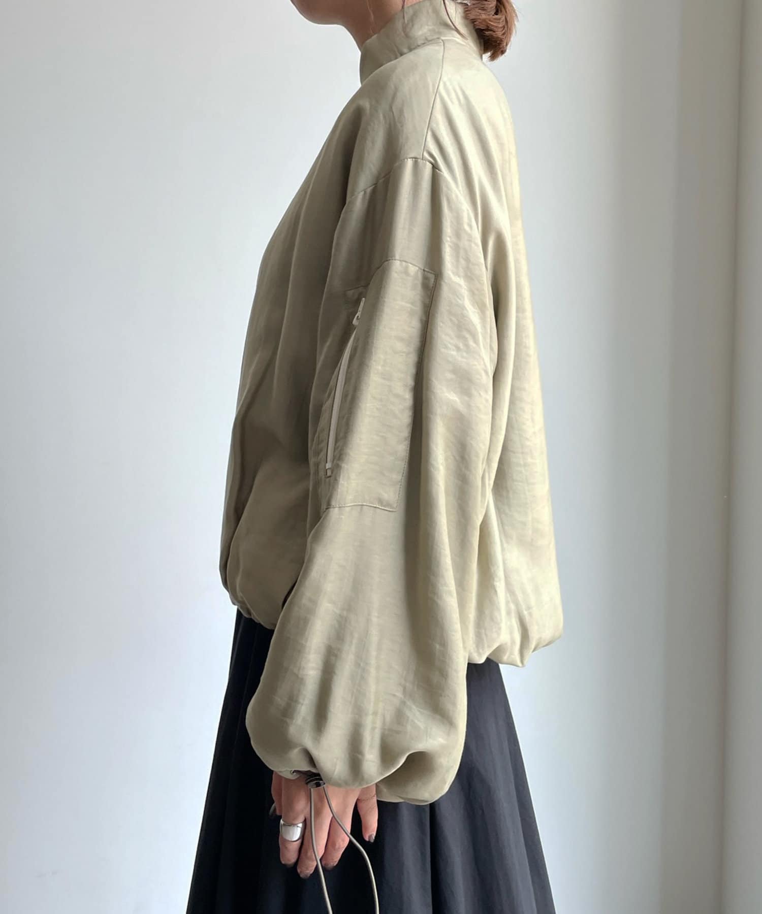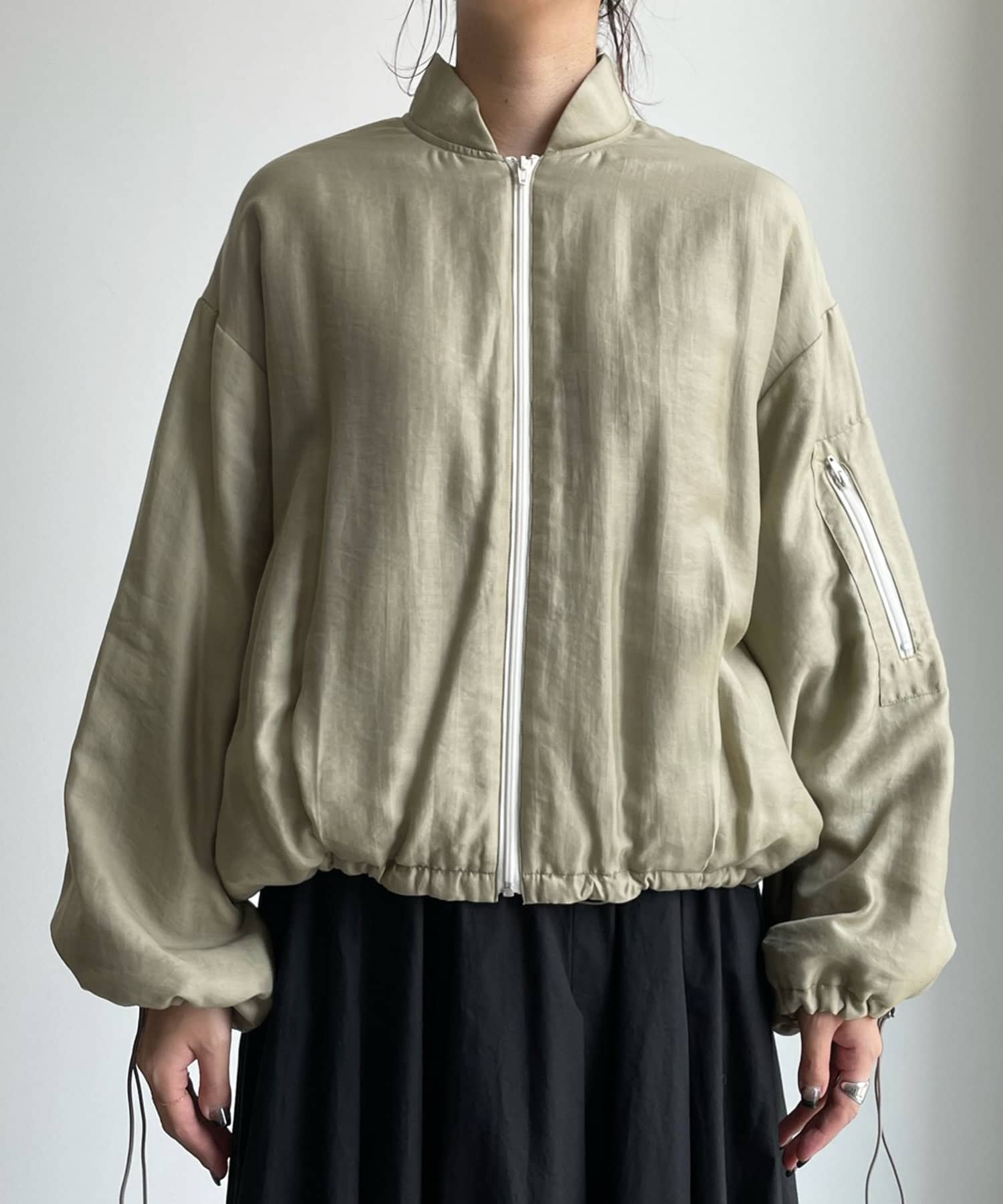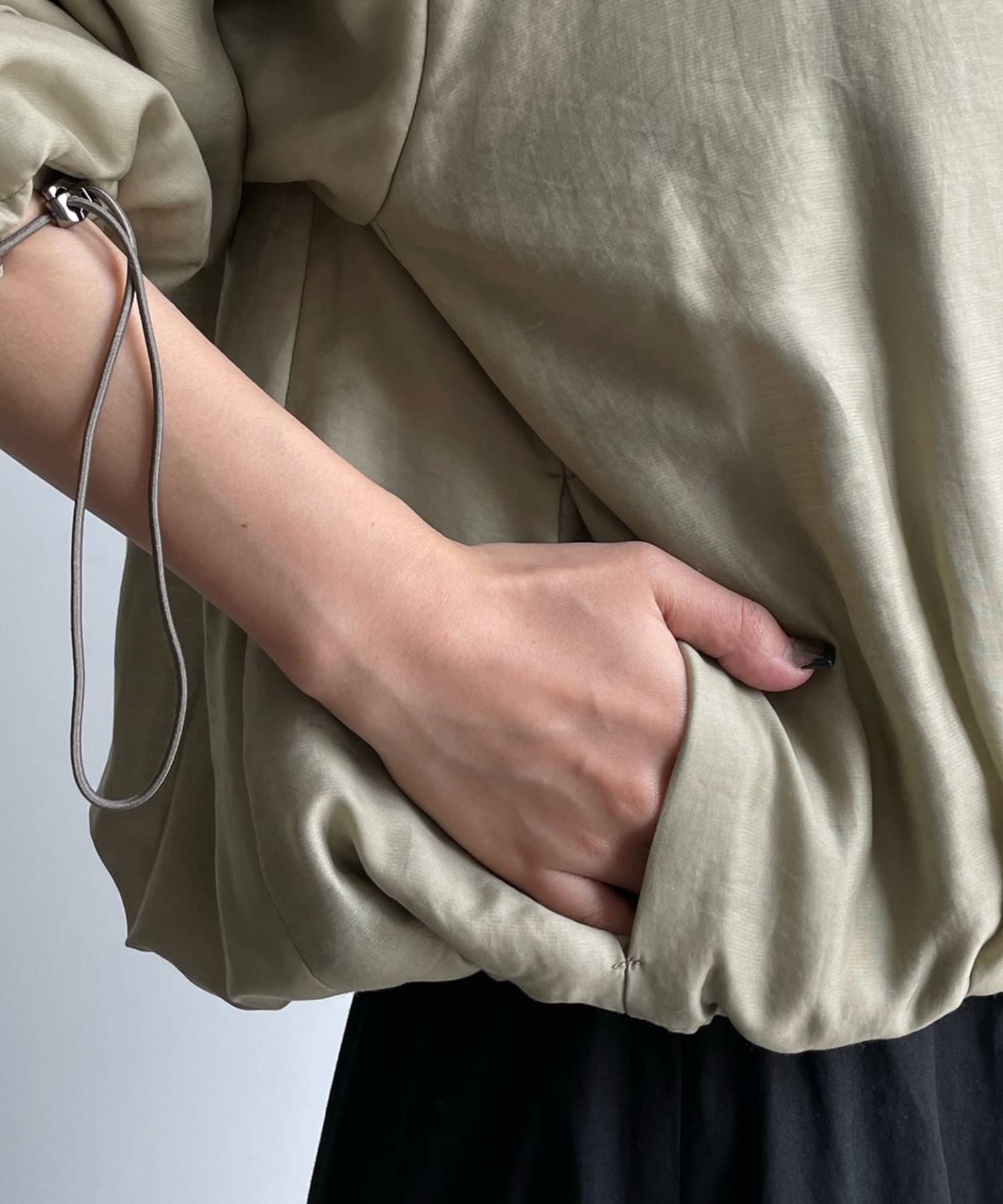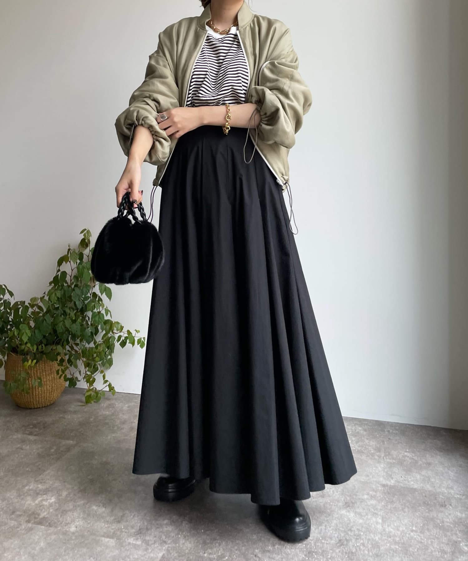 トレンドのMA-1のディティールをベースに、袖口&裾ドロストのデザインを加えることで、丸みを帯びたシルエットにアレンジが可能。女性らしさをプラスできるポイントですよ。