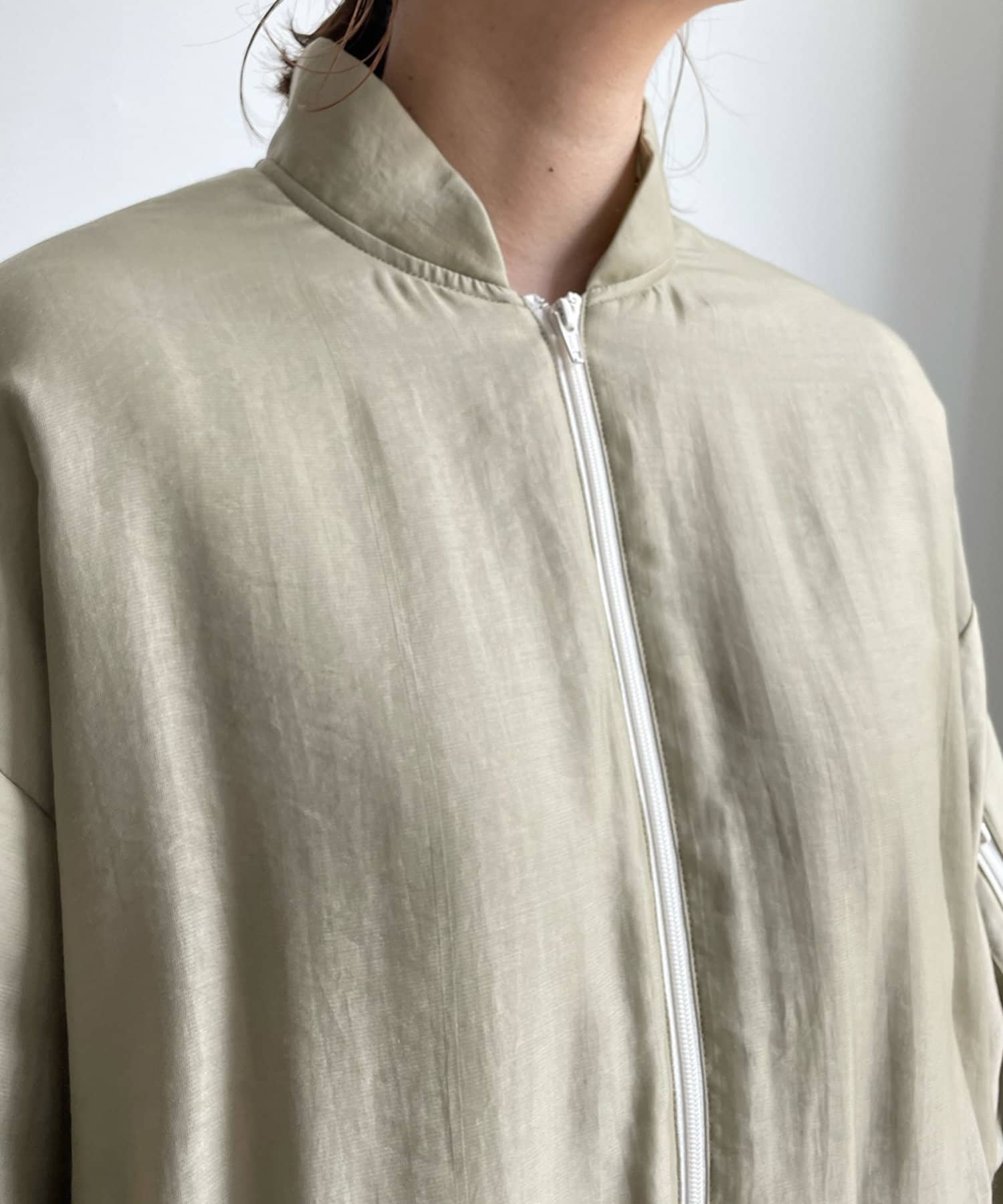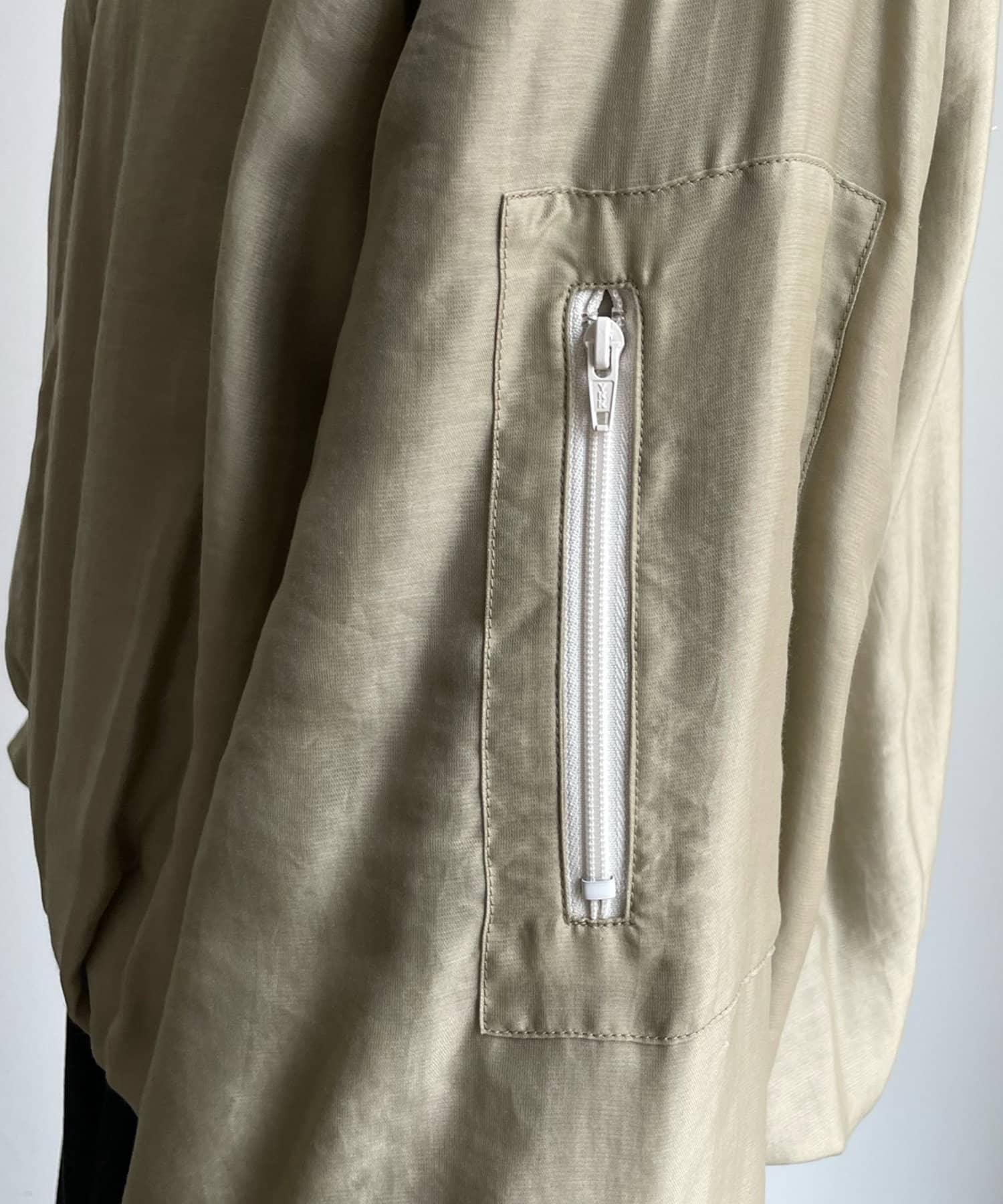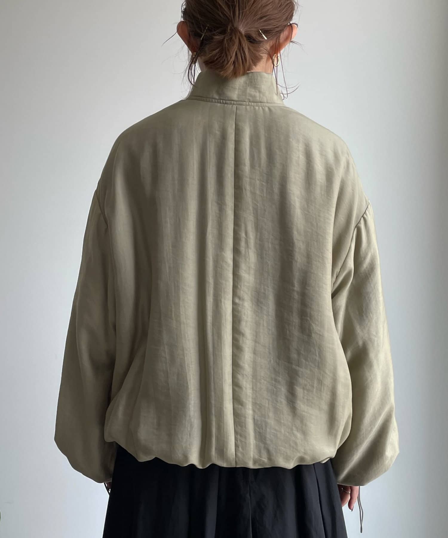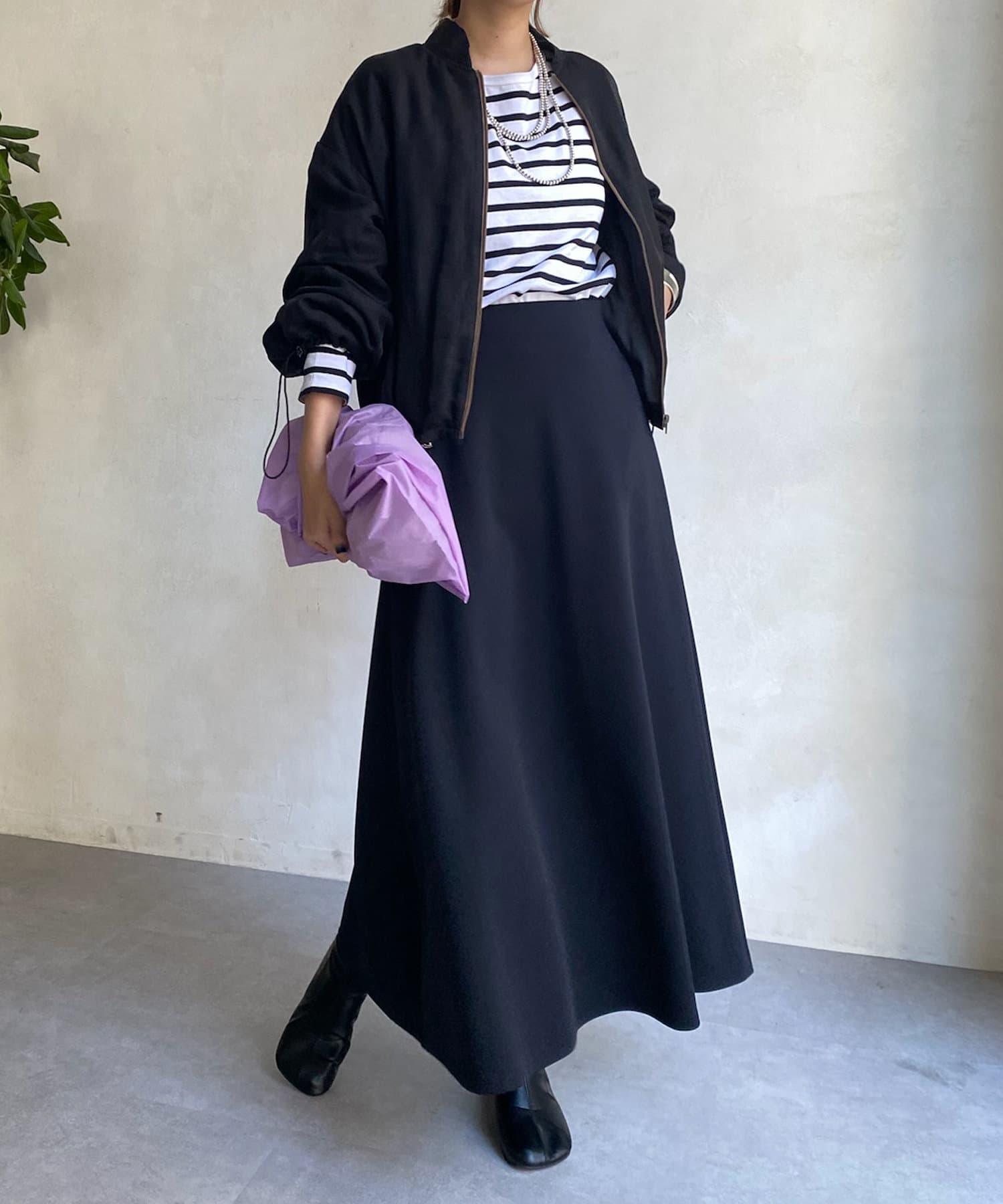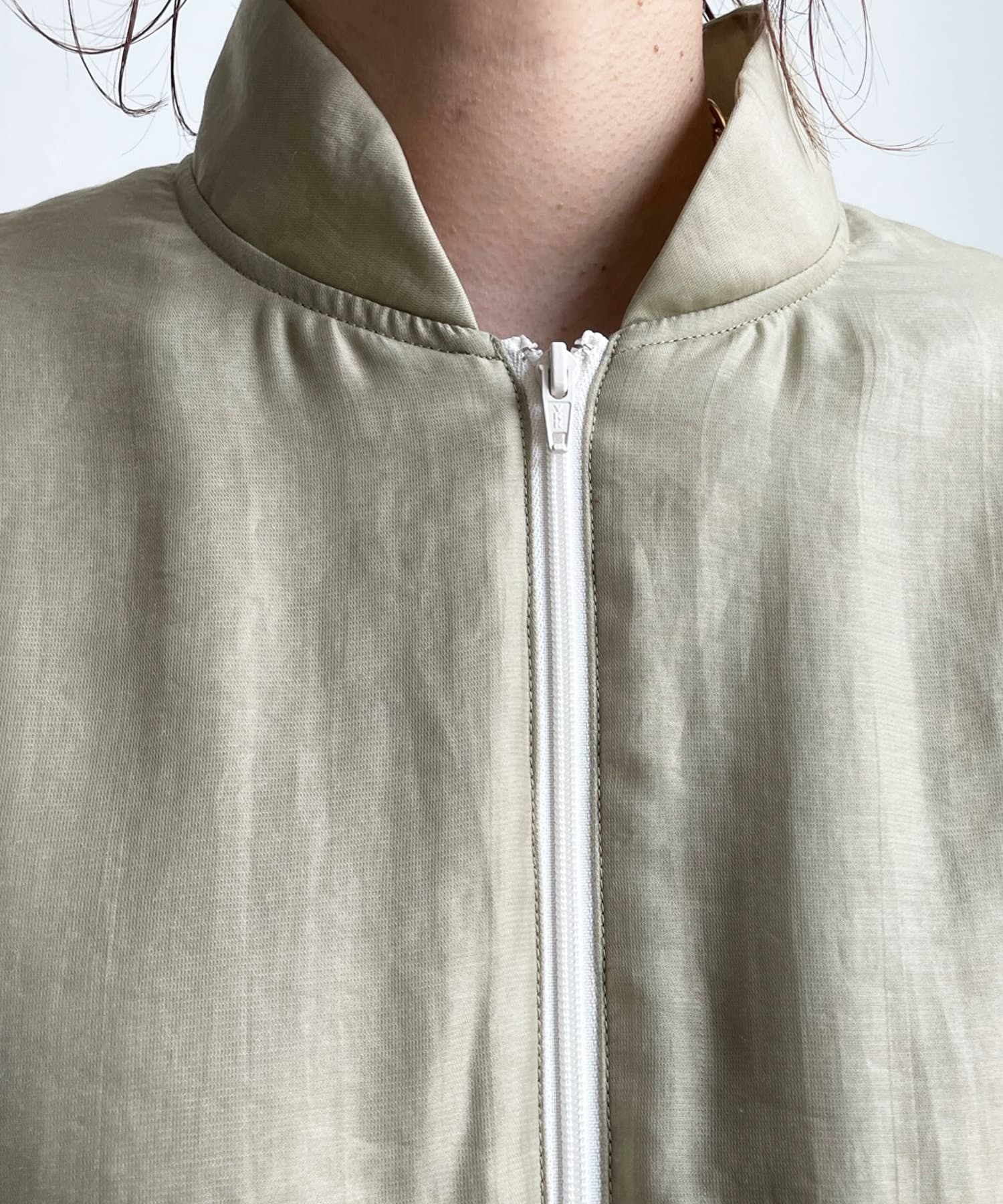 トレンドのMA-1のディティールをベースに、袖口&裾ドロストのデザインを加えることで、丸みを帯びたシルエットにアレンジが可能。女性らしさをプラスできるポイントですよ。