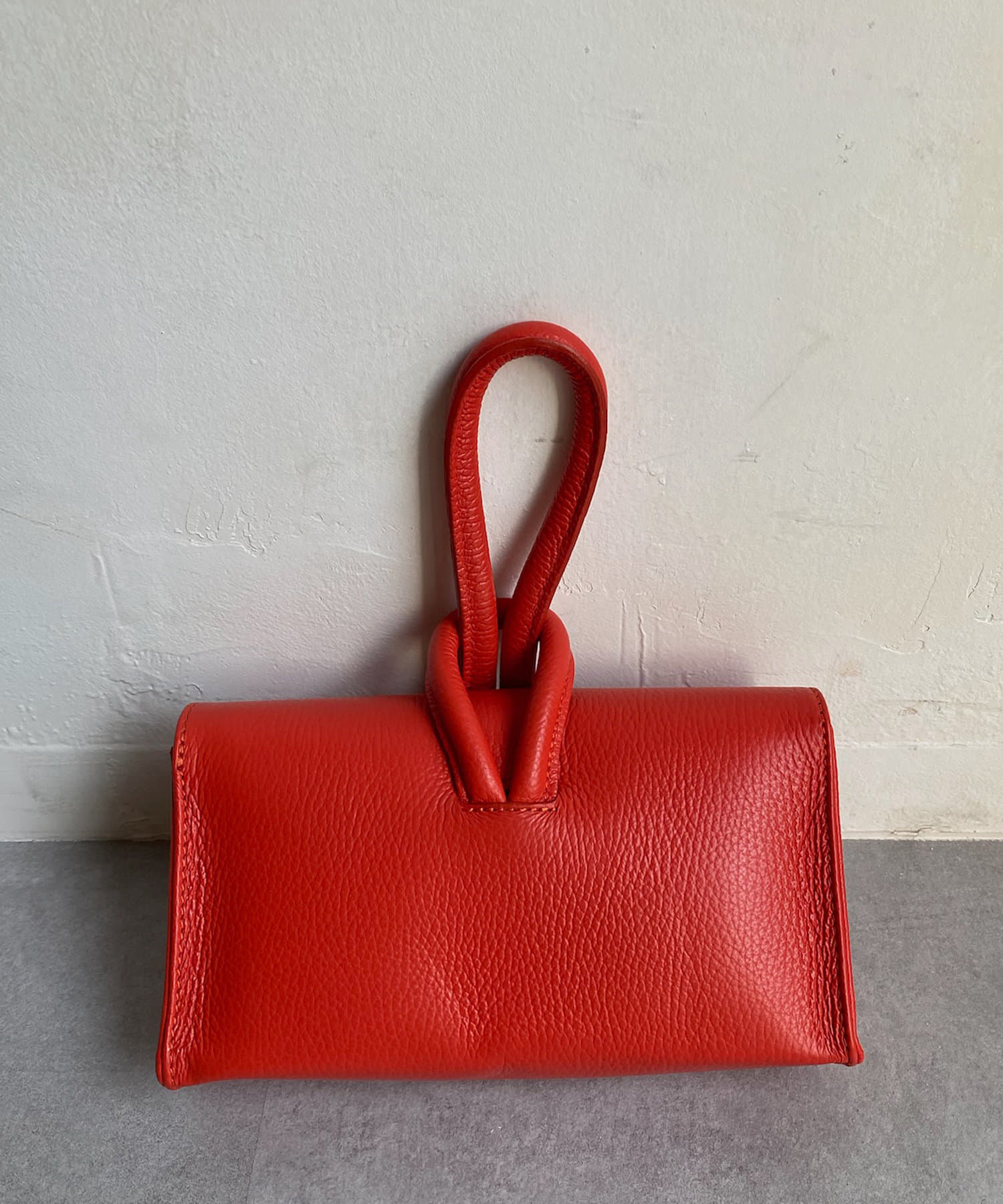 柔らかく傷が目立ちにくいシュリンクレザーが上品で、ループに手を通してクラッチバックのように持てば、コーディネートが一気に大人な雰囲気に仕上がります!