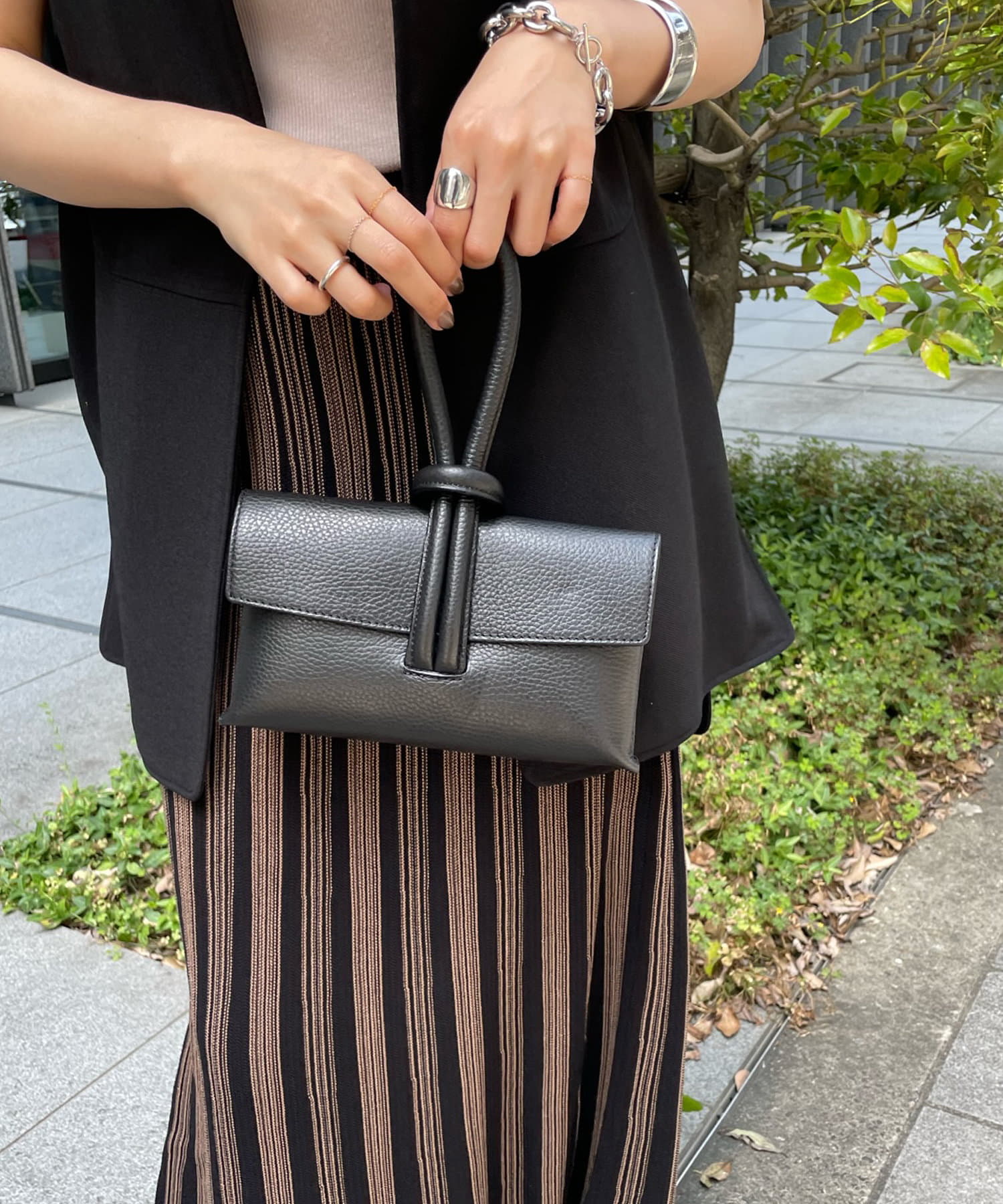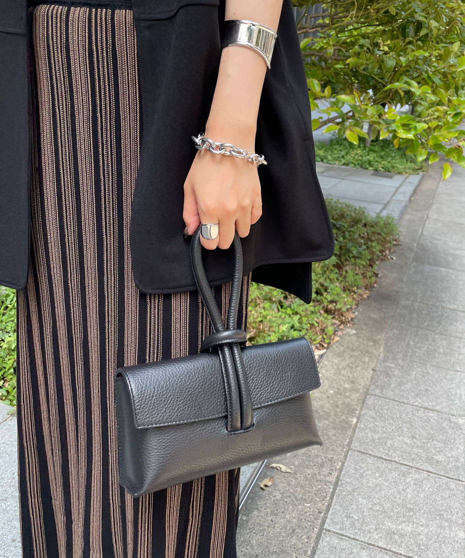 コーディネートを大人に仕上げるコンパクトバッグ