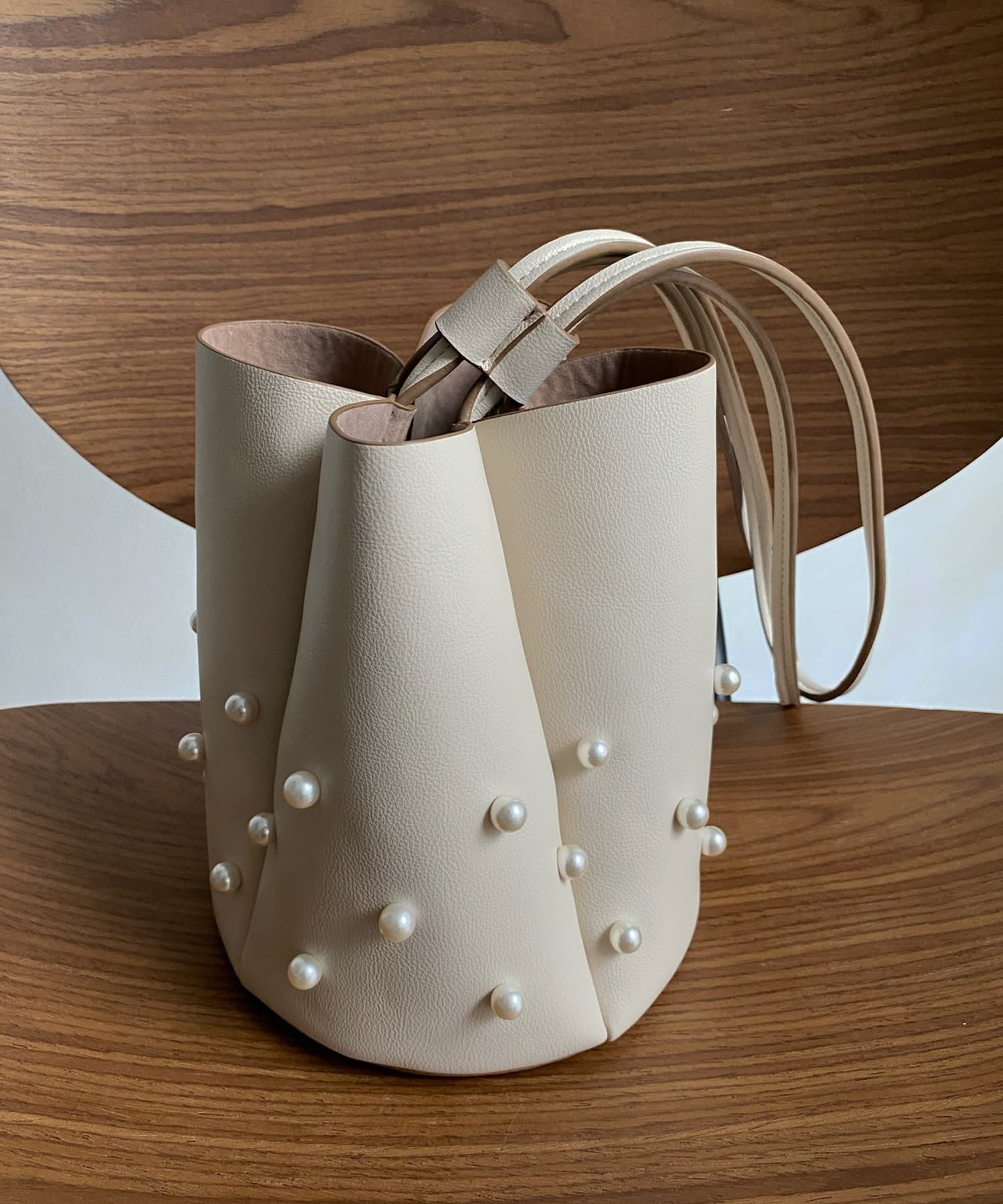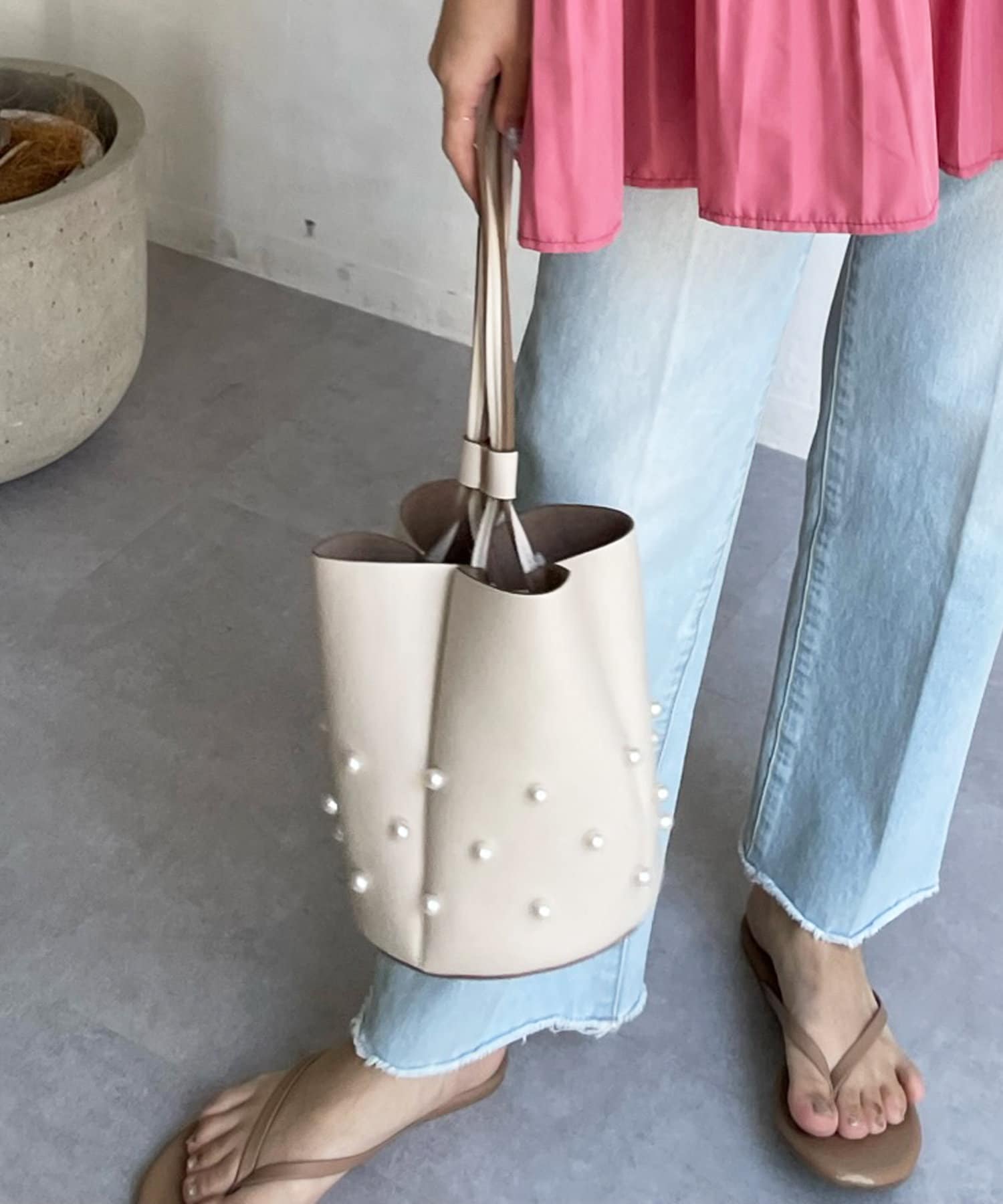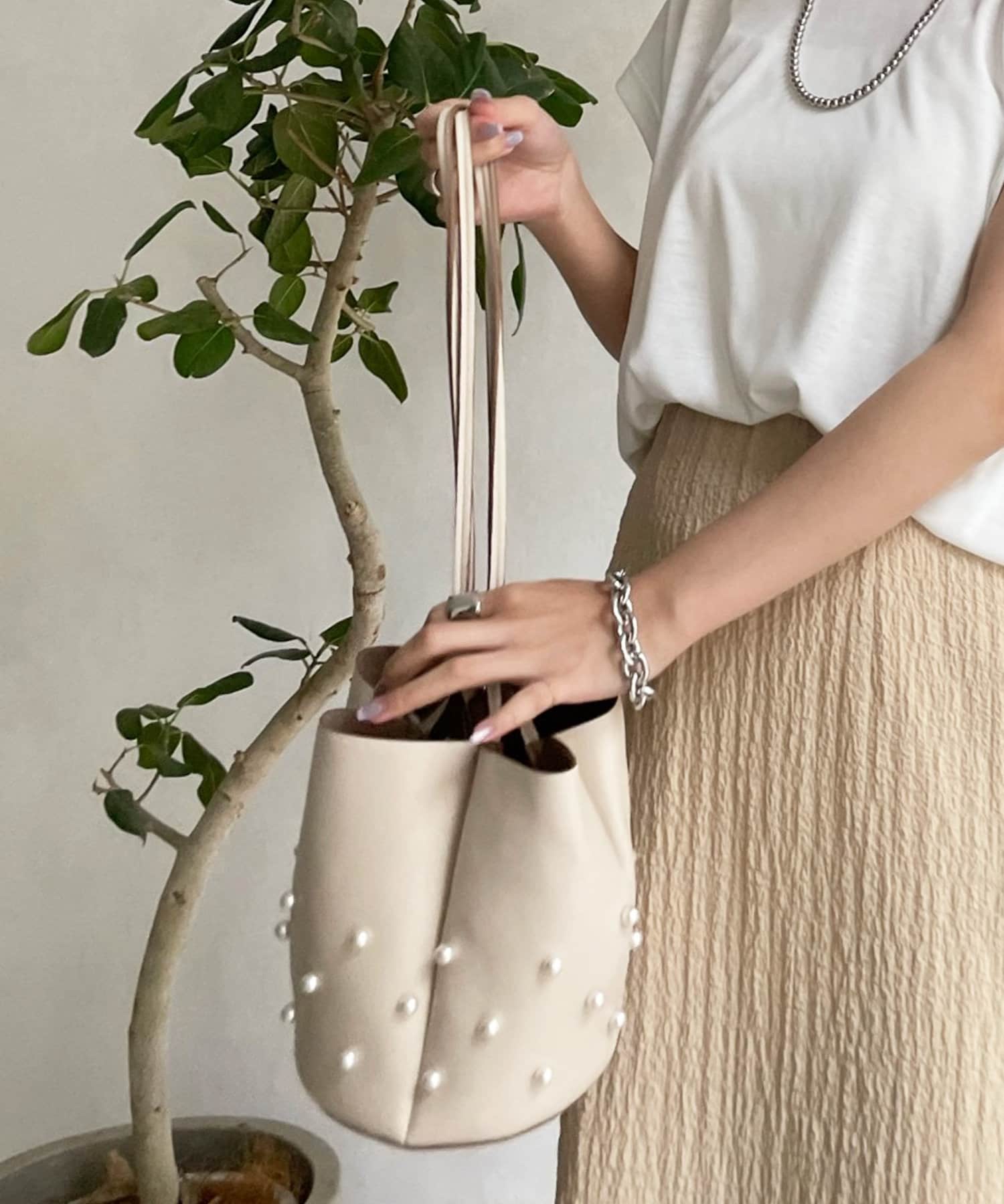 トレンドのパールパーツを散りばめたデザインがポイントのバッグ。