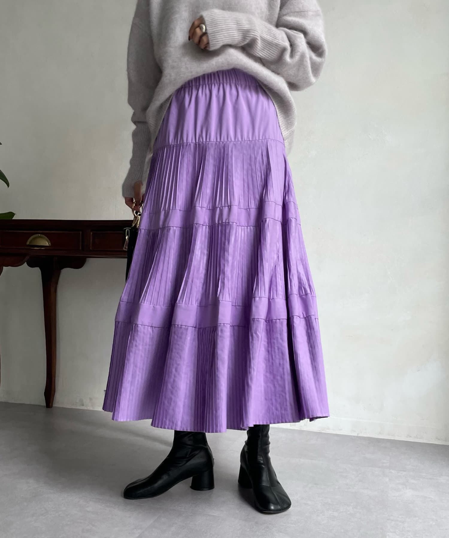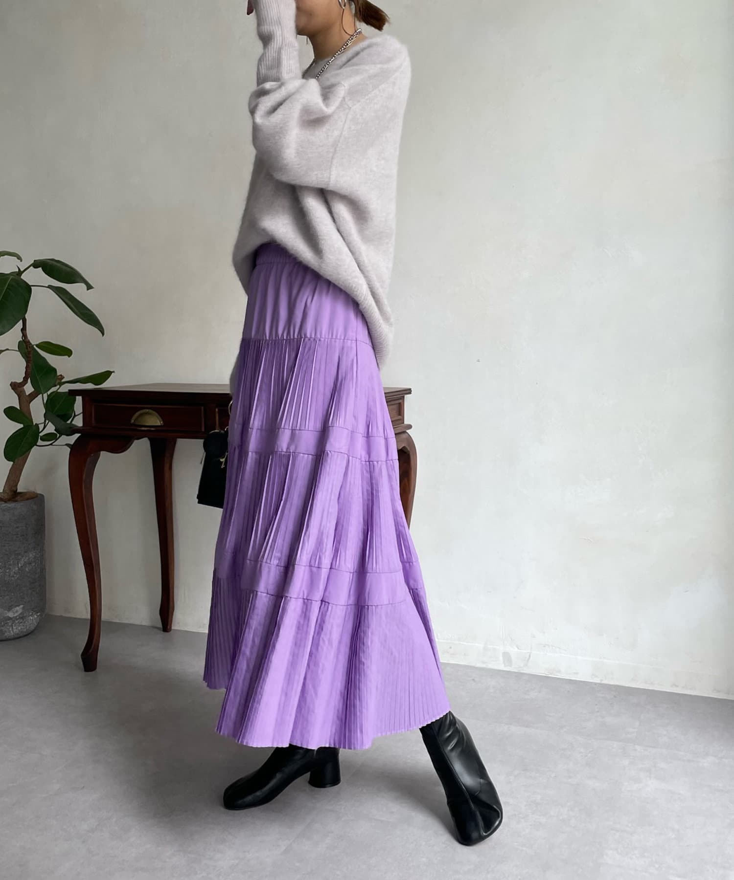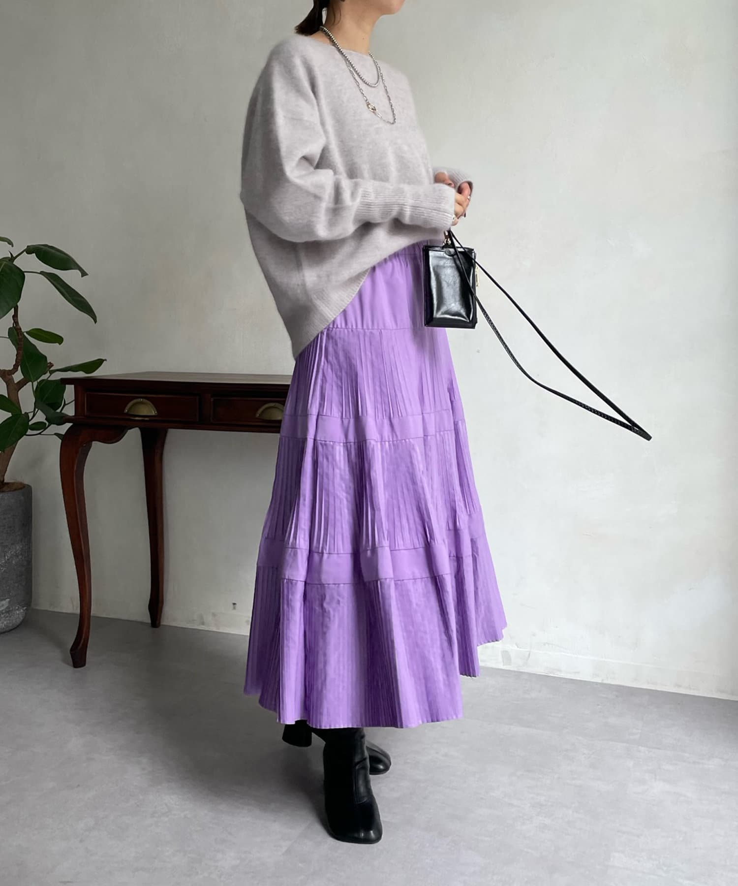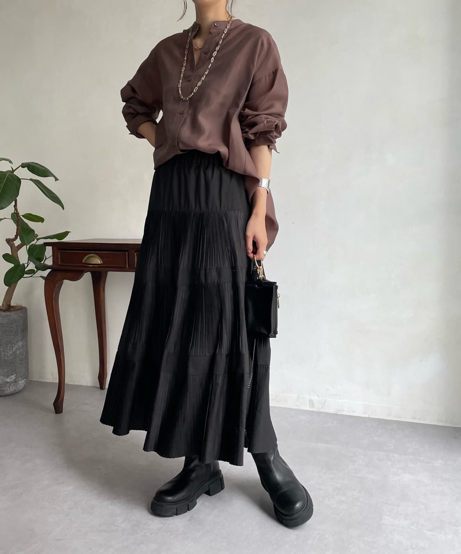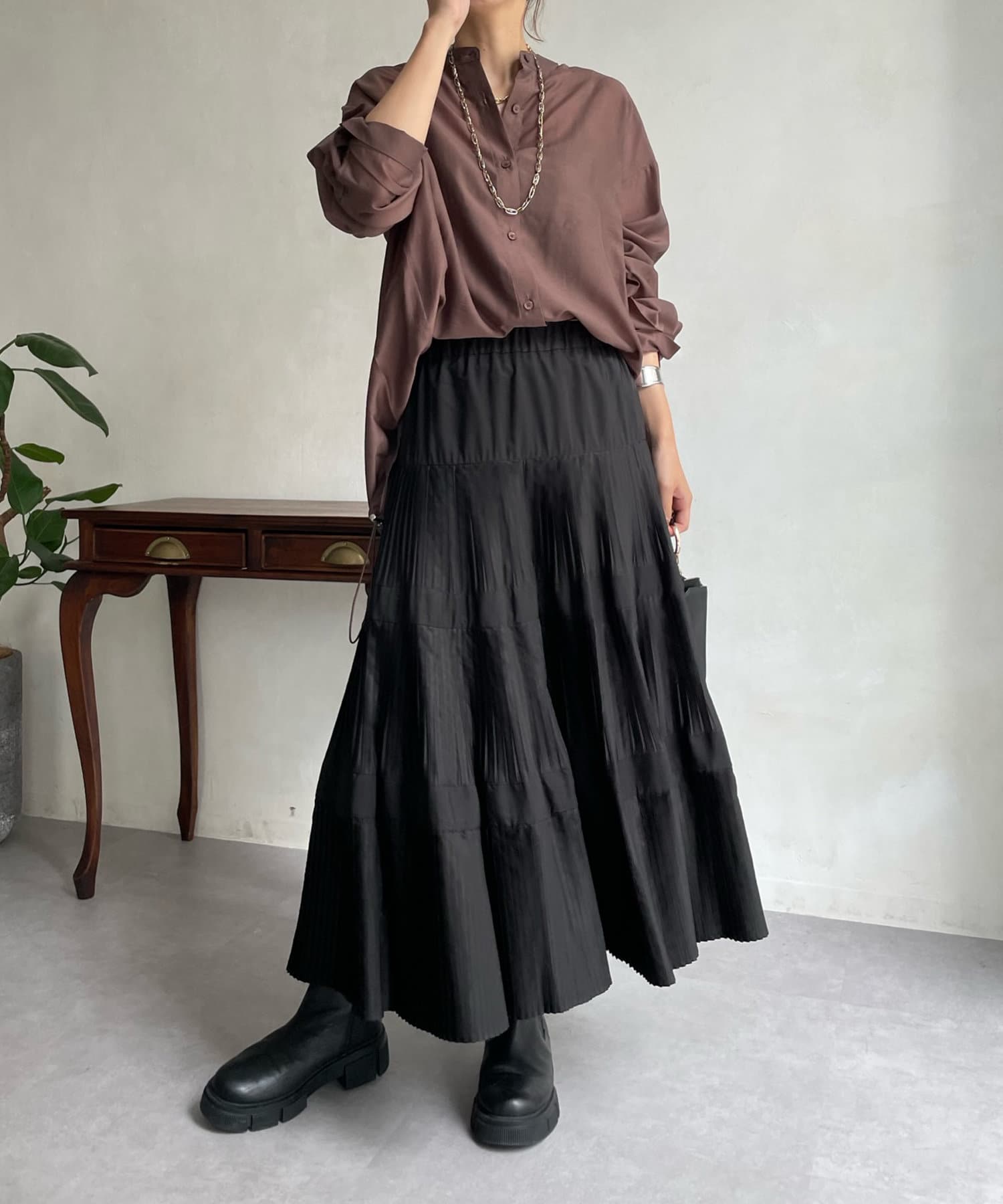 柔らかみのある生地と、3段プリーツが豊かな表情を演出します。