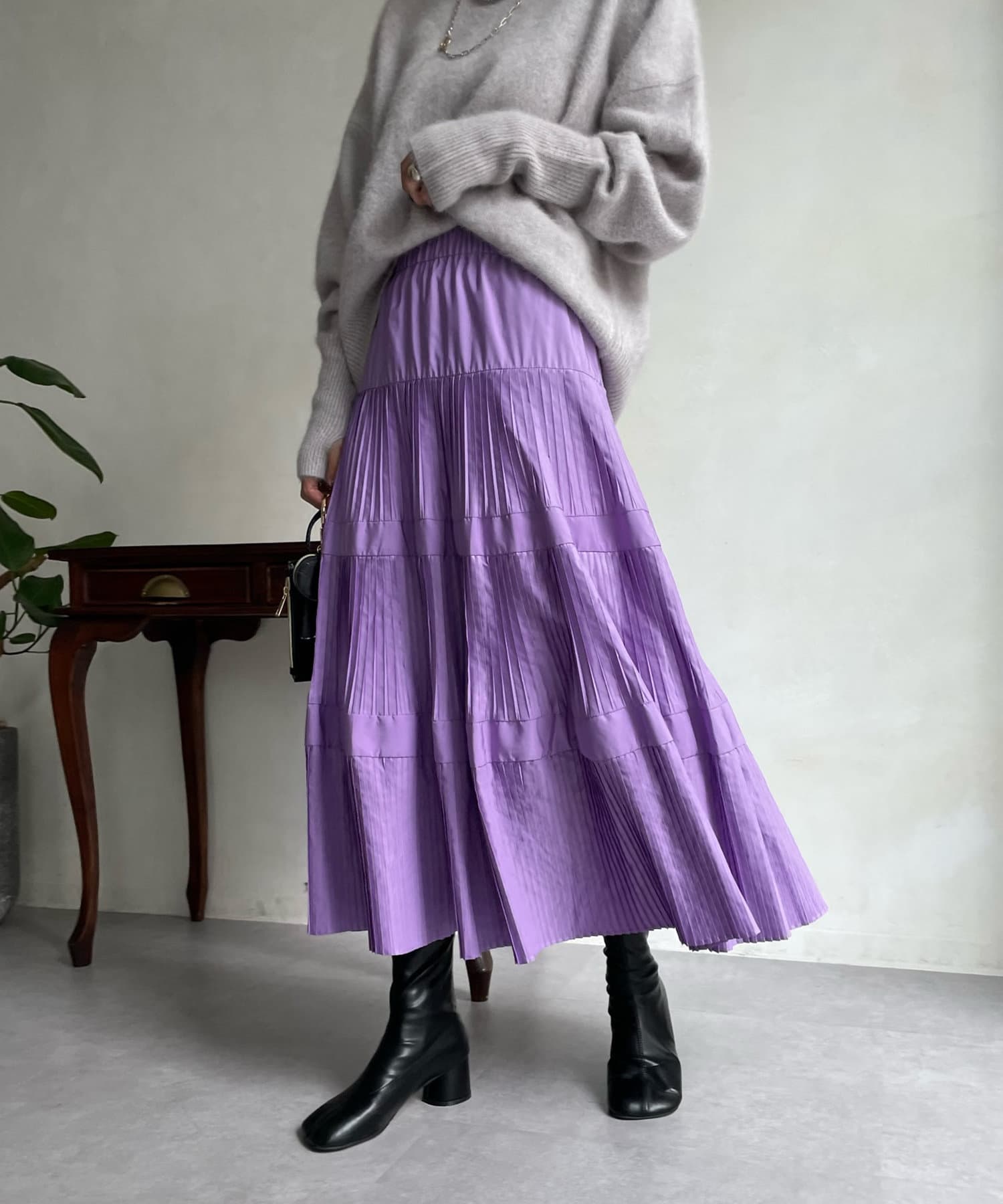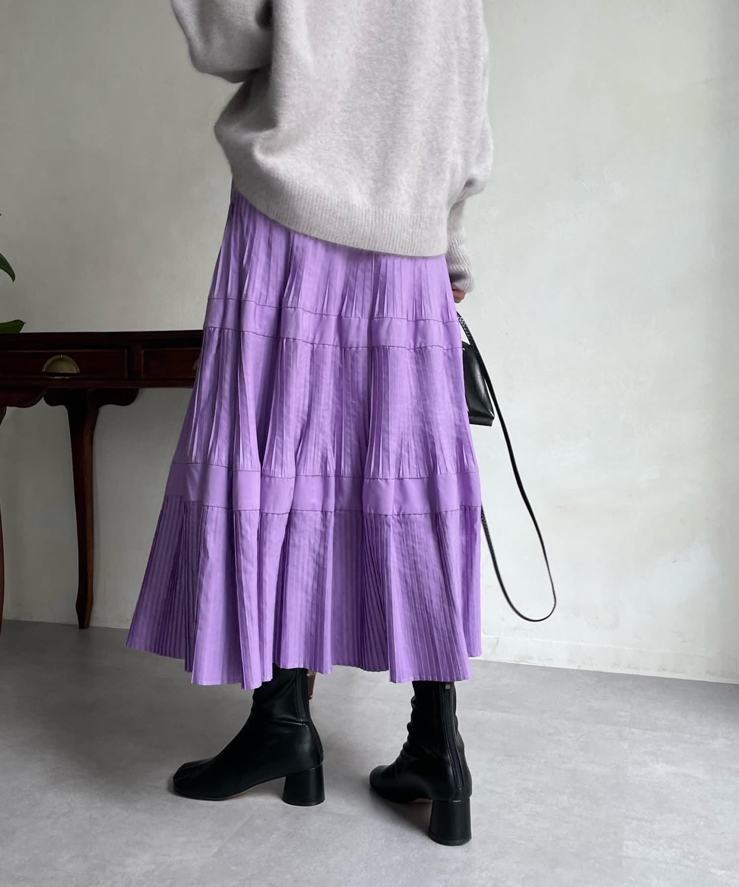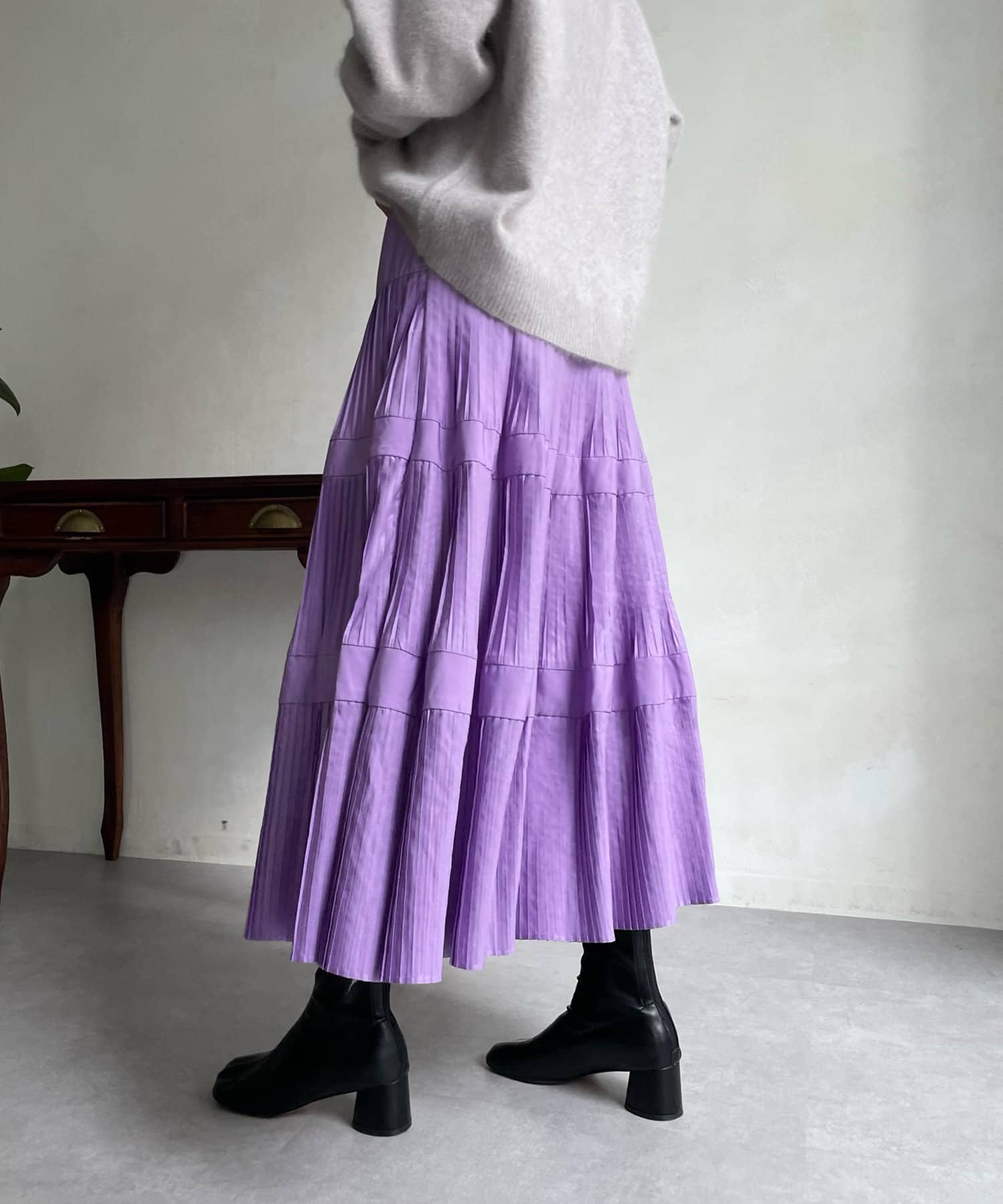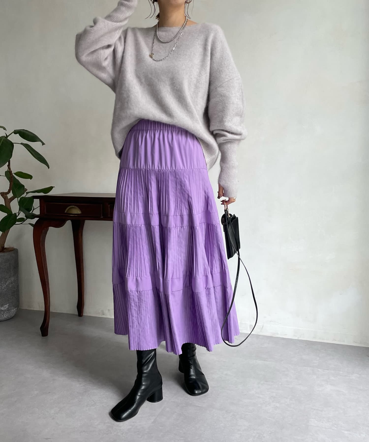 柔らかみのある生地と、3段プリーツが豊かな表情を演出します。